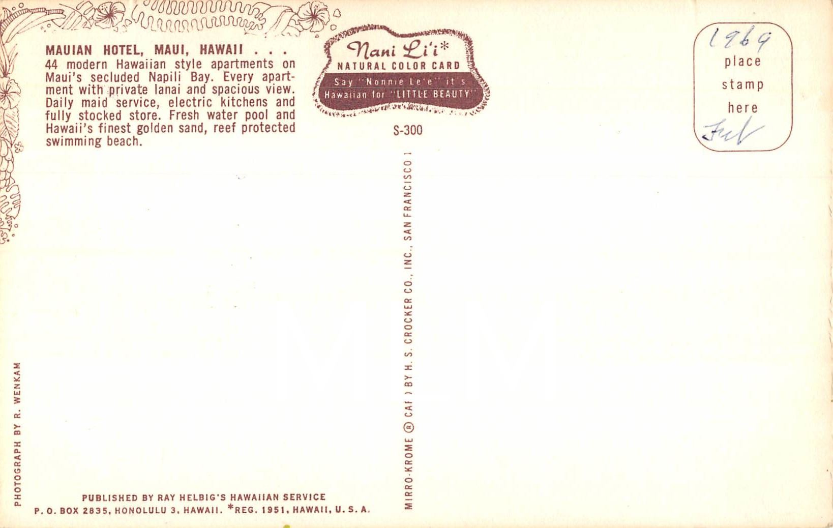Mauian Hotel, Maui, Hawaii Vintage Postcard