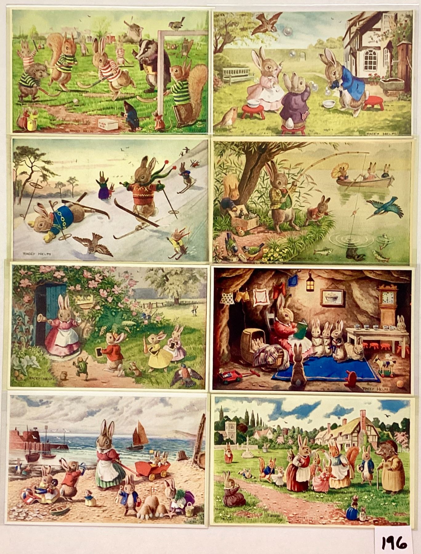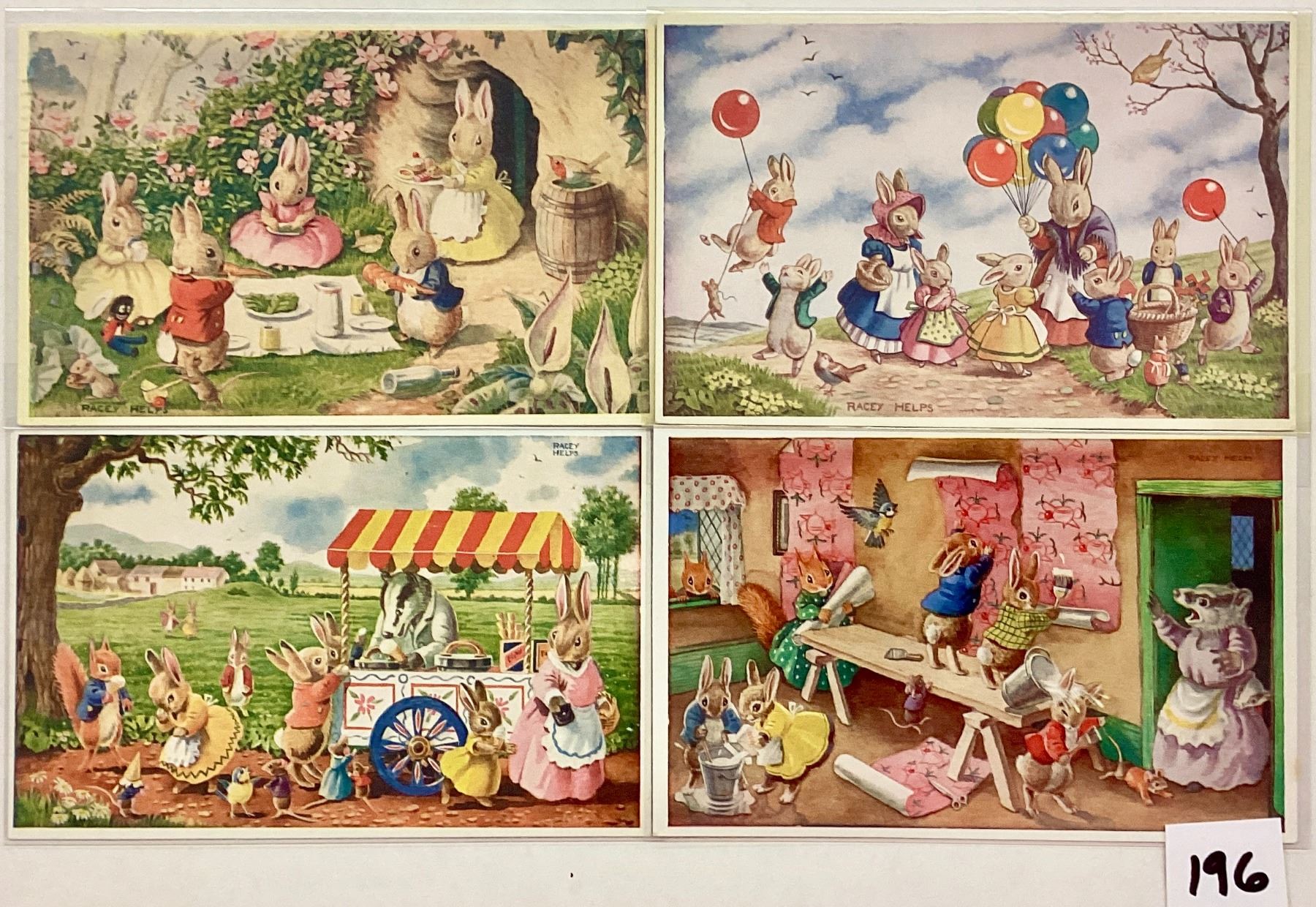 12 standard size Medici Society by Racey Helps postcards.