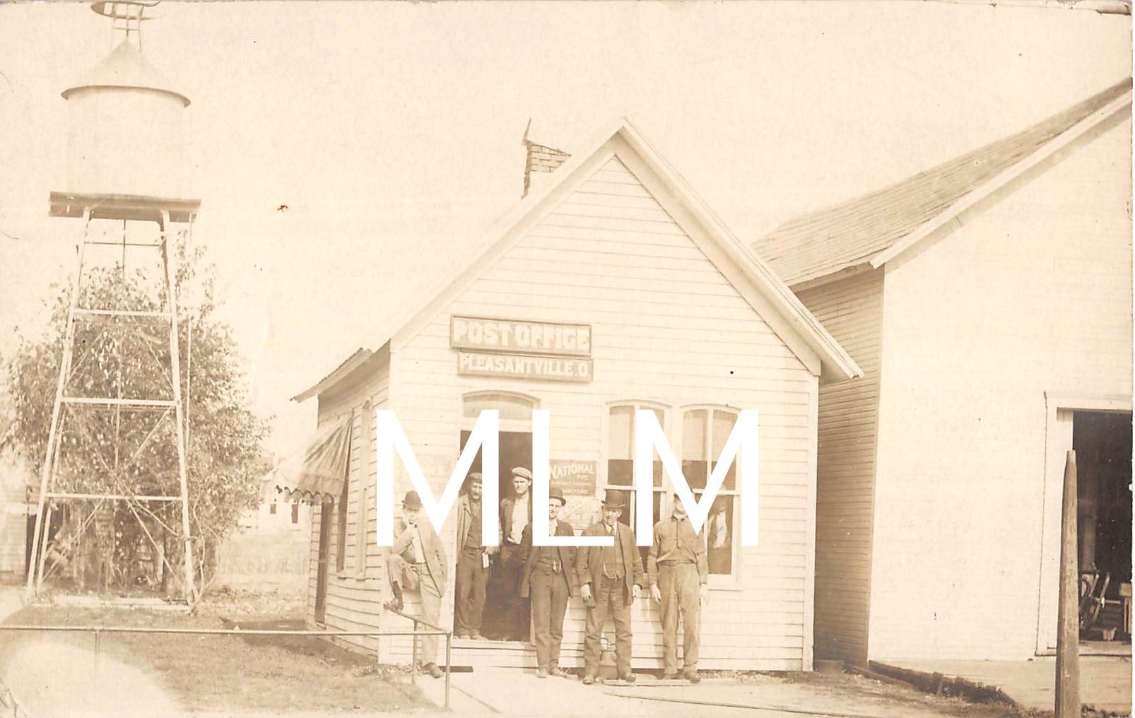 Men Gathered in Front of Post Office Pleasantville, Ohio Photo Postcard