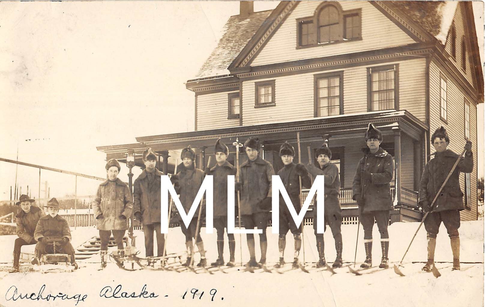 Men gathered on skis Anchorage, Alaska Photo Postcard