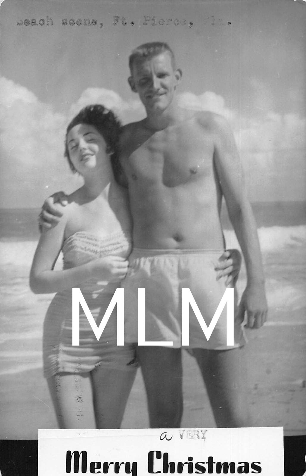 Merry Christmas Man & Woman on Beach Ft. Pierce, Florida Photo Postcard