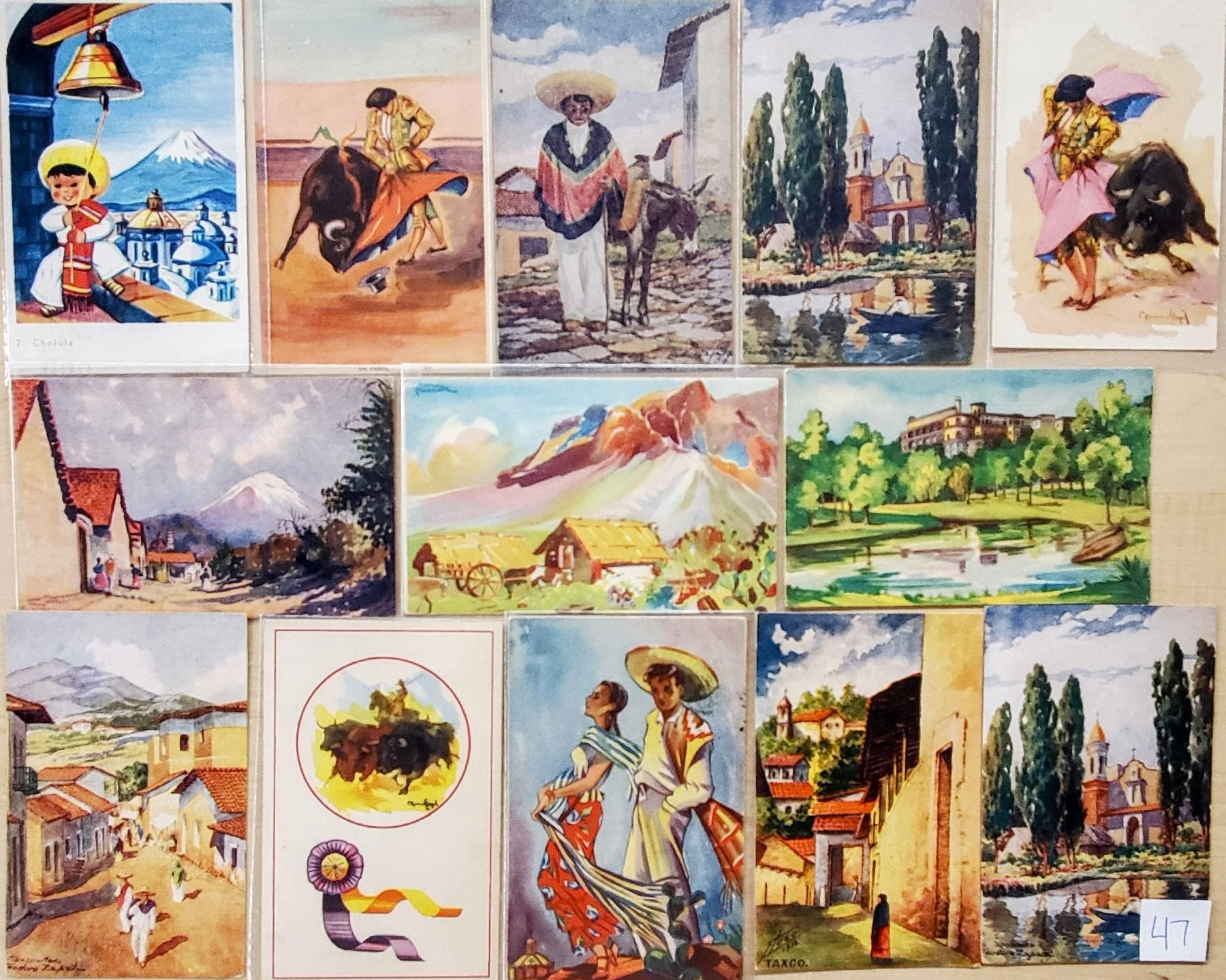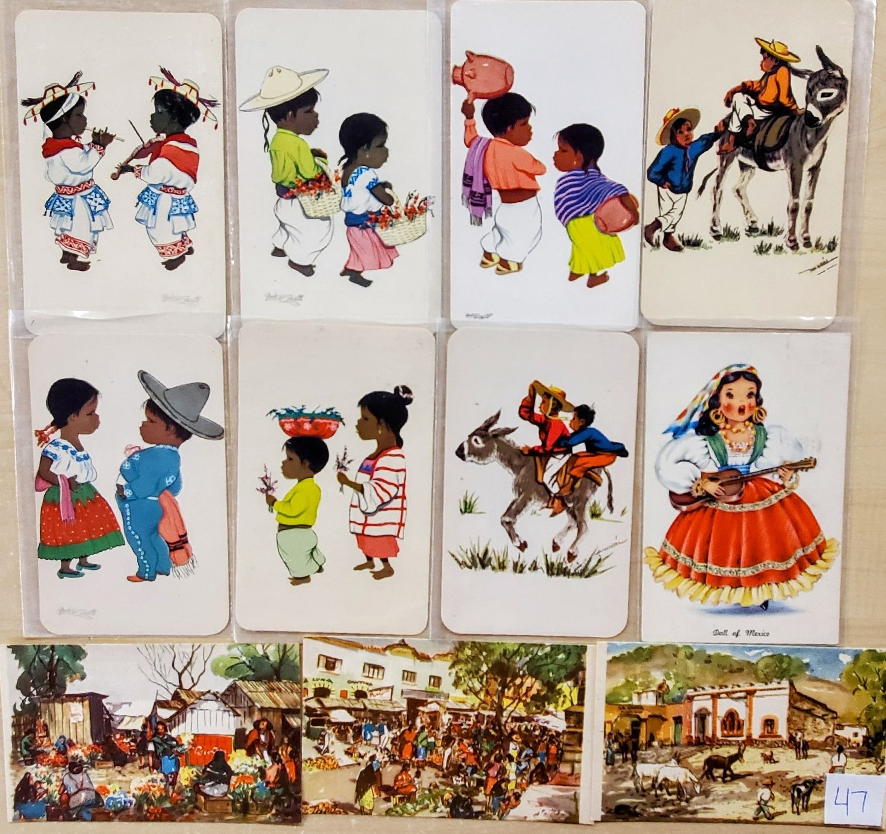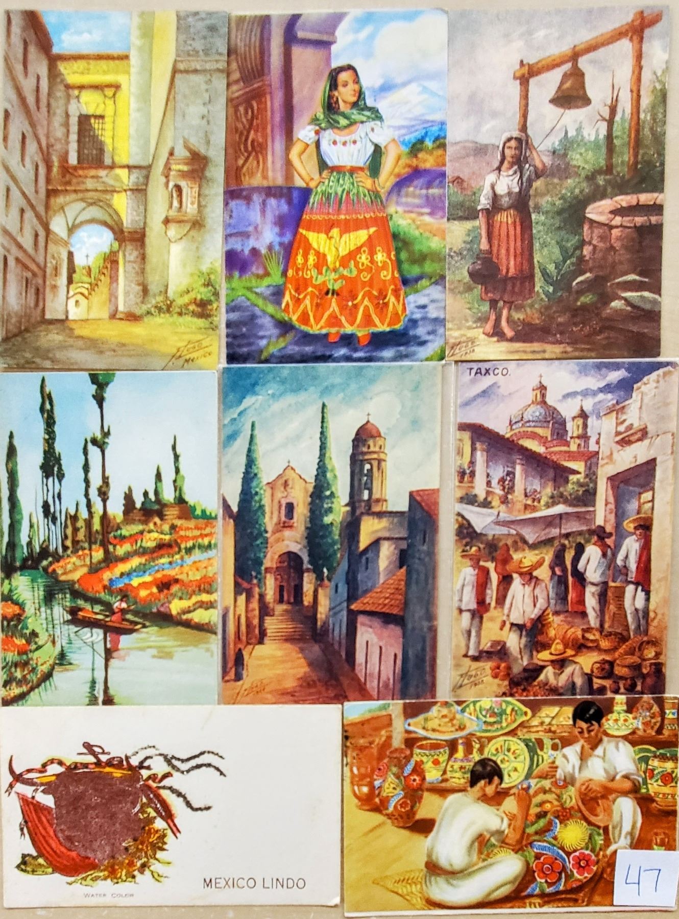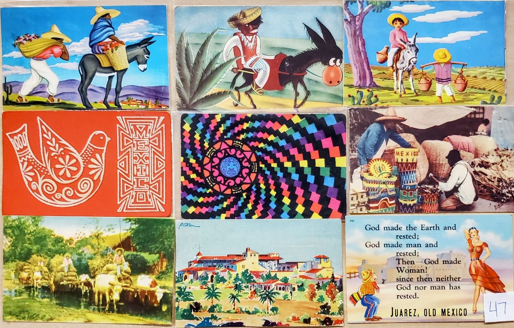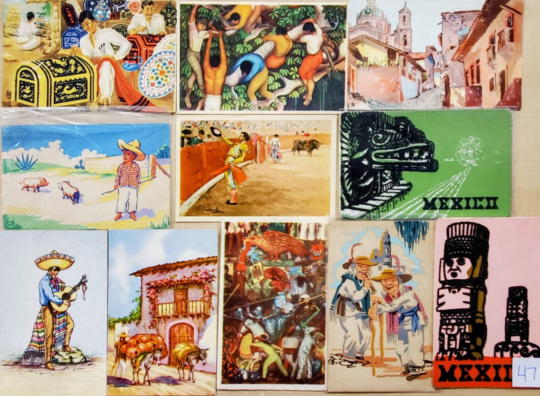 Over 120 Mexico postcards. Many art like and colorful. Early to standard size chrome.