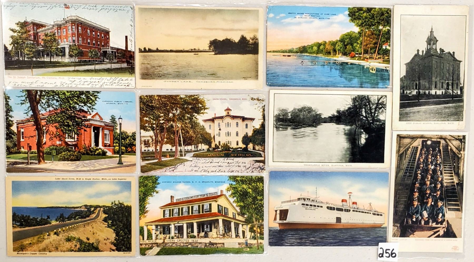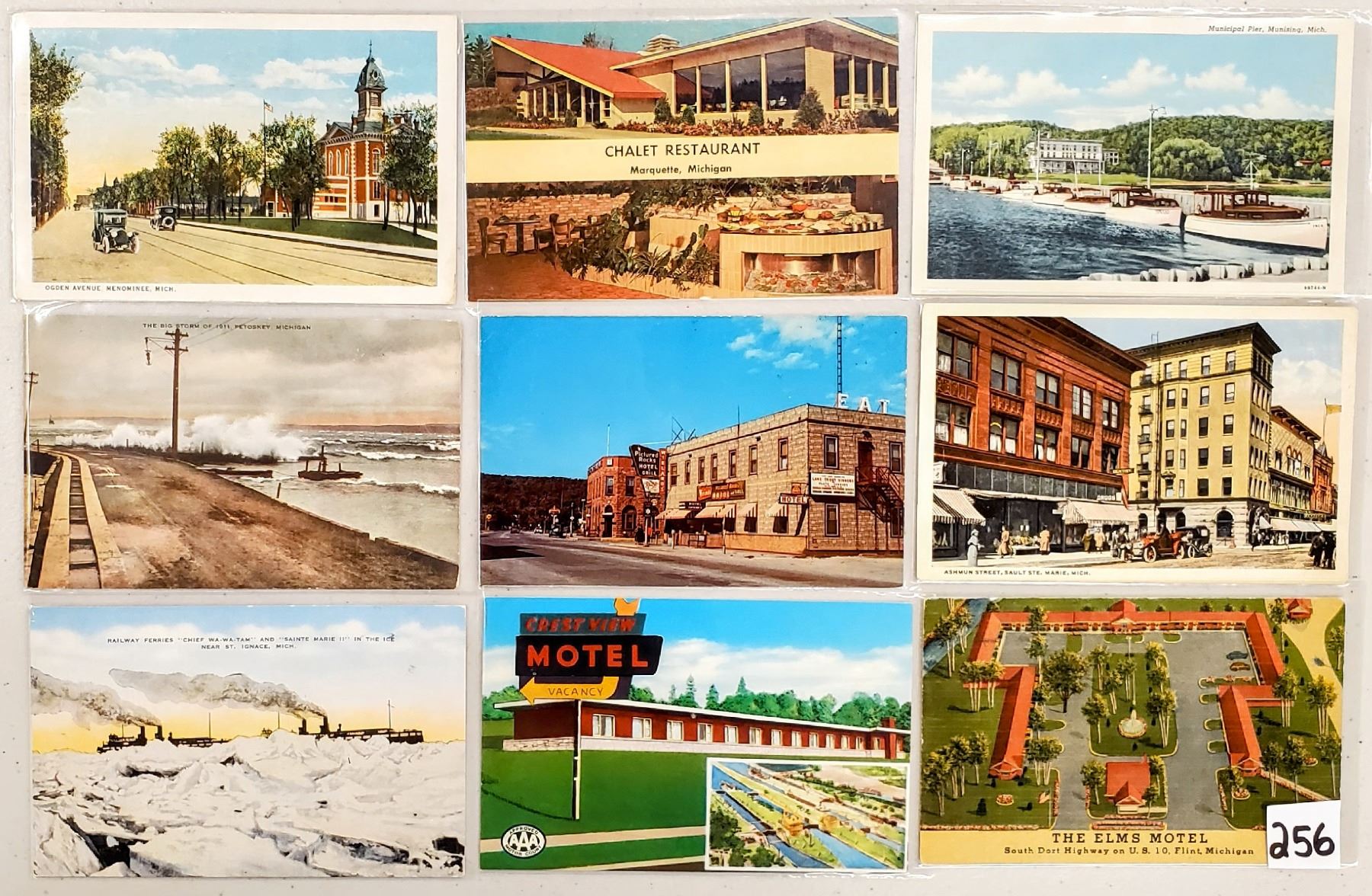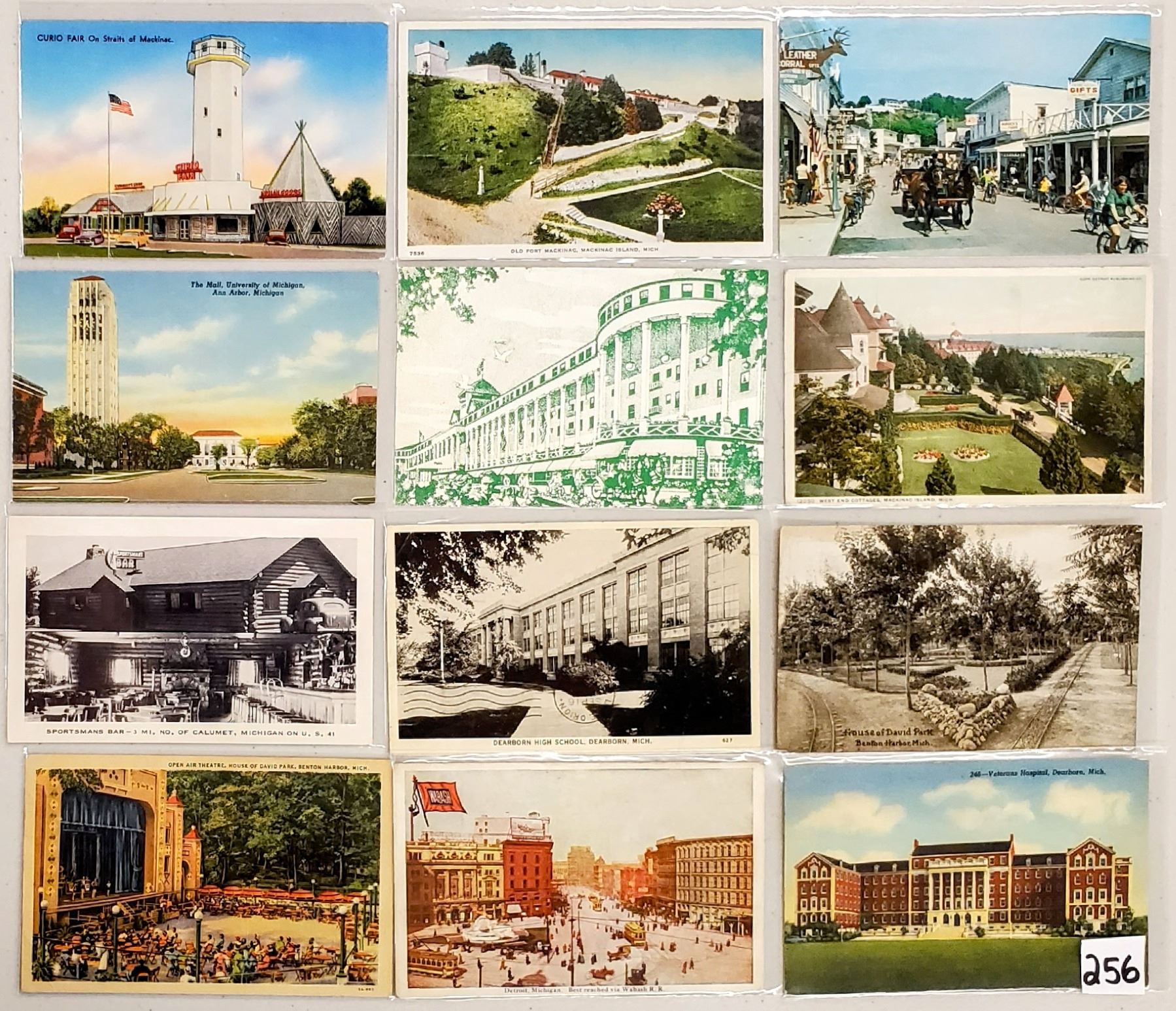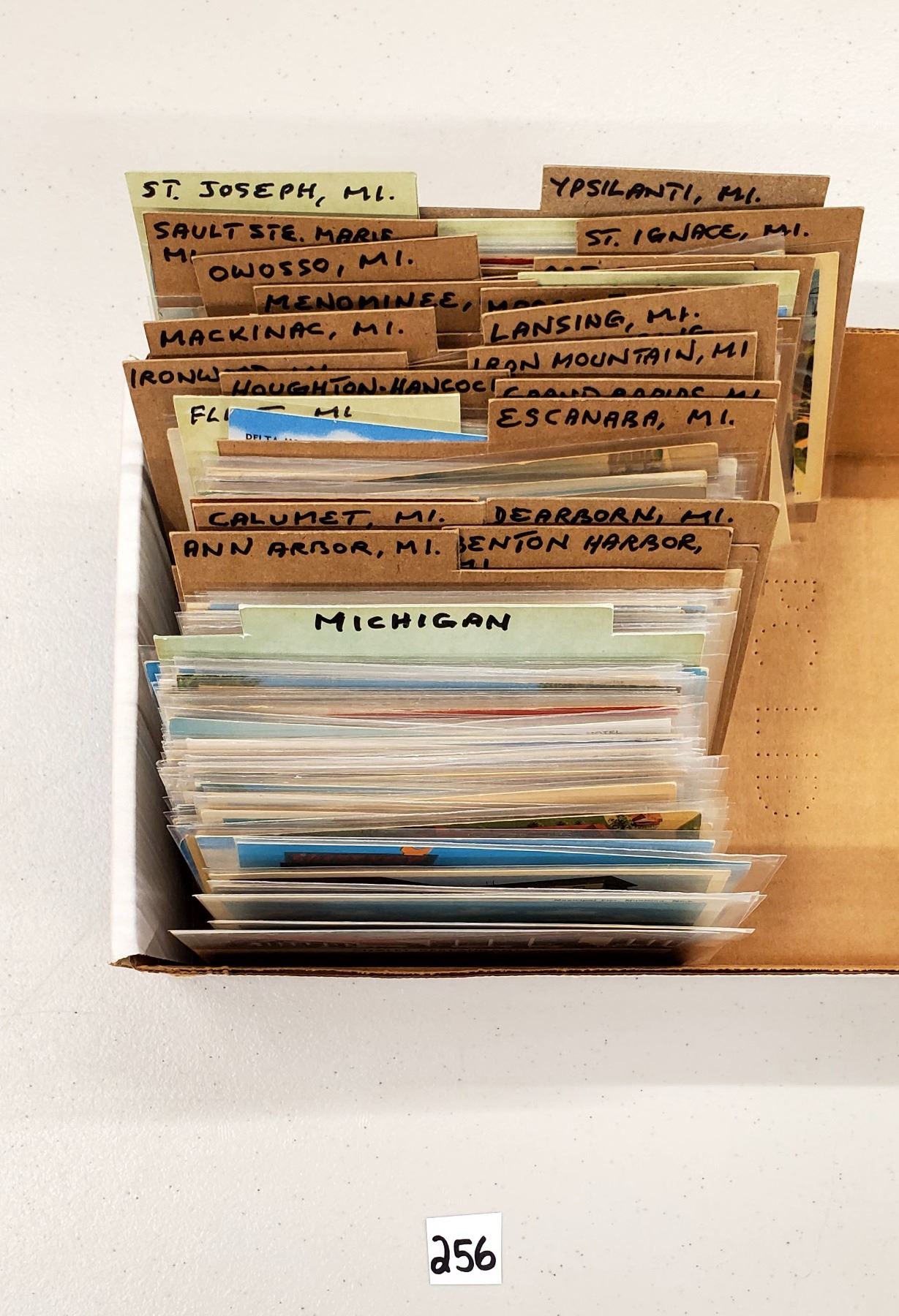 Over 210 Michigan postcards. Sorted into over 20 towns. Early to standard size chrome.