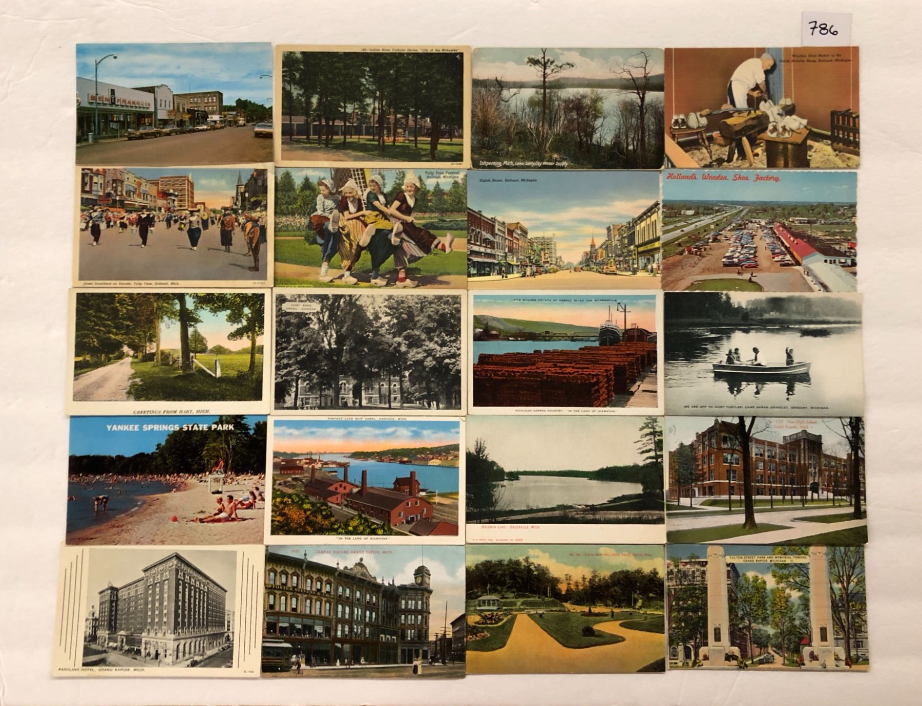 Approx. 380 Michigan postcards. I - G towns. Early to standard size chrome.