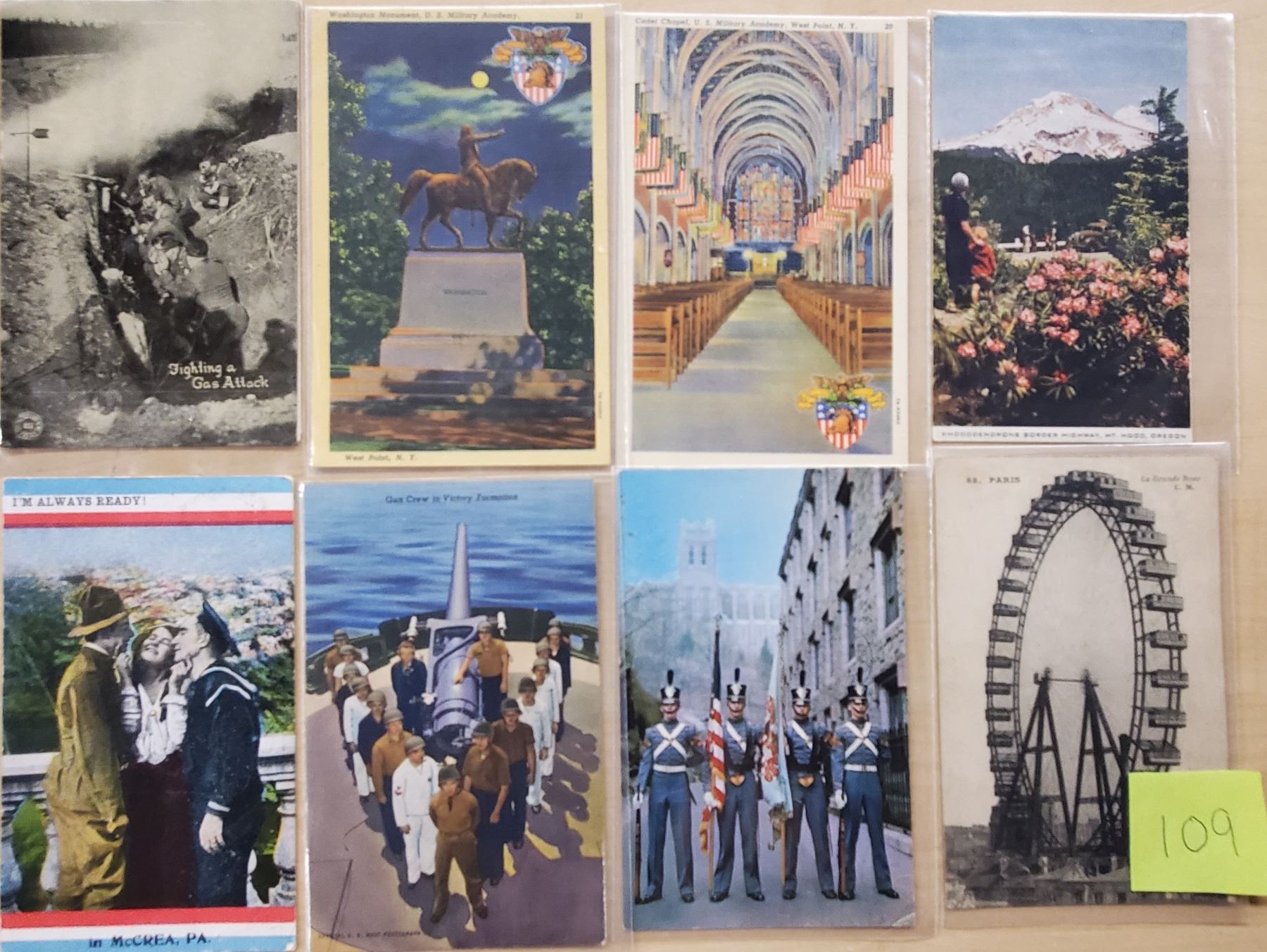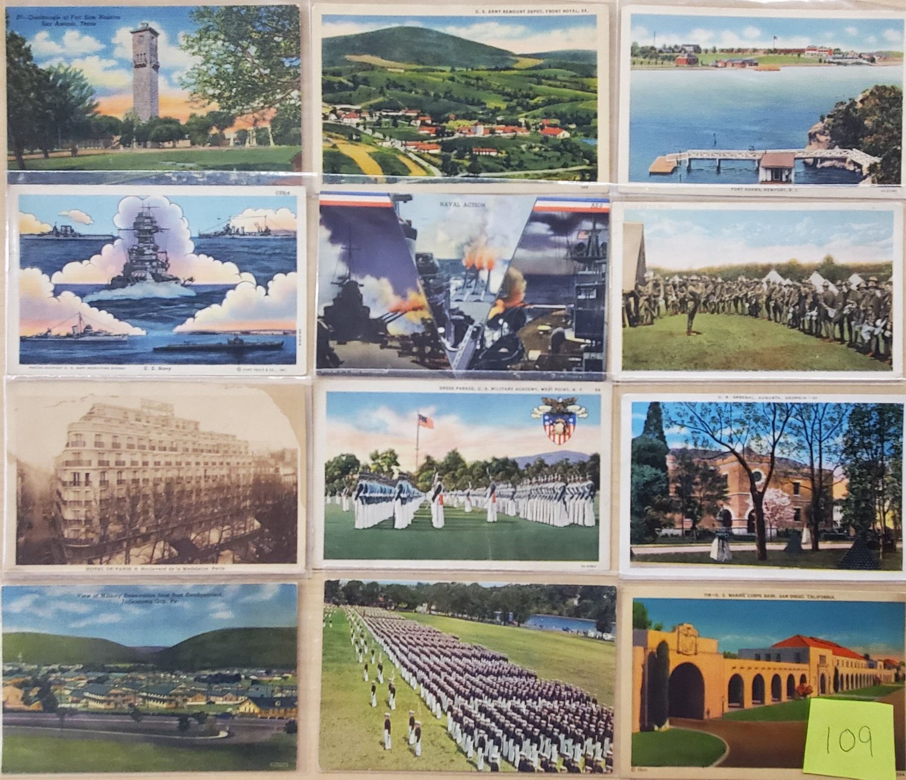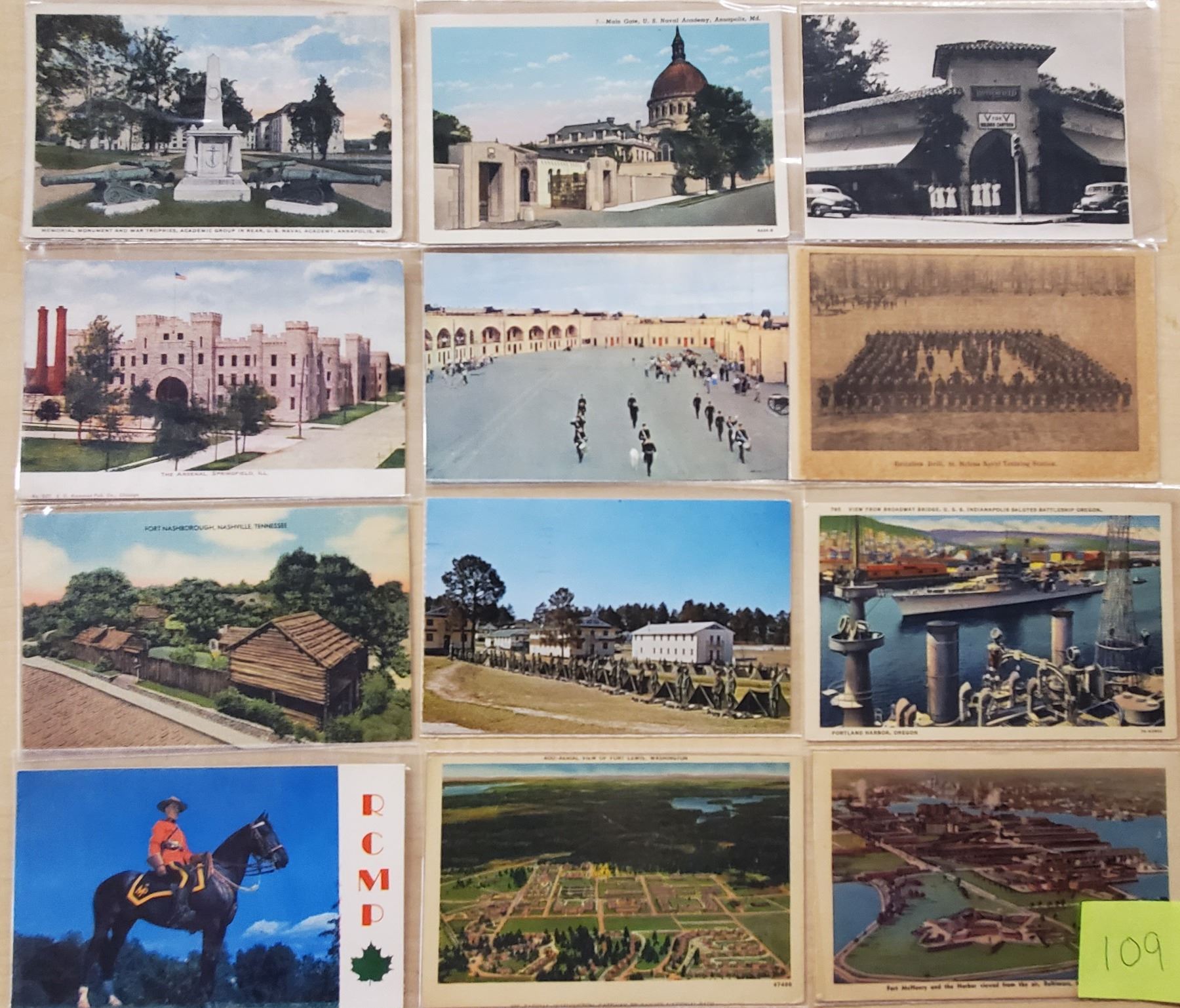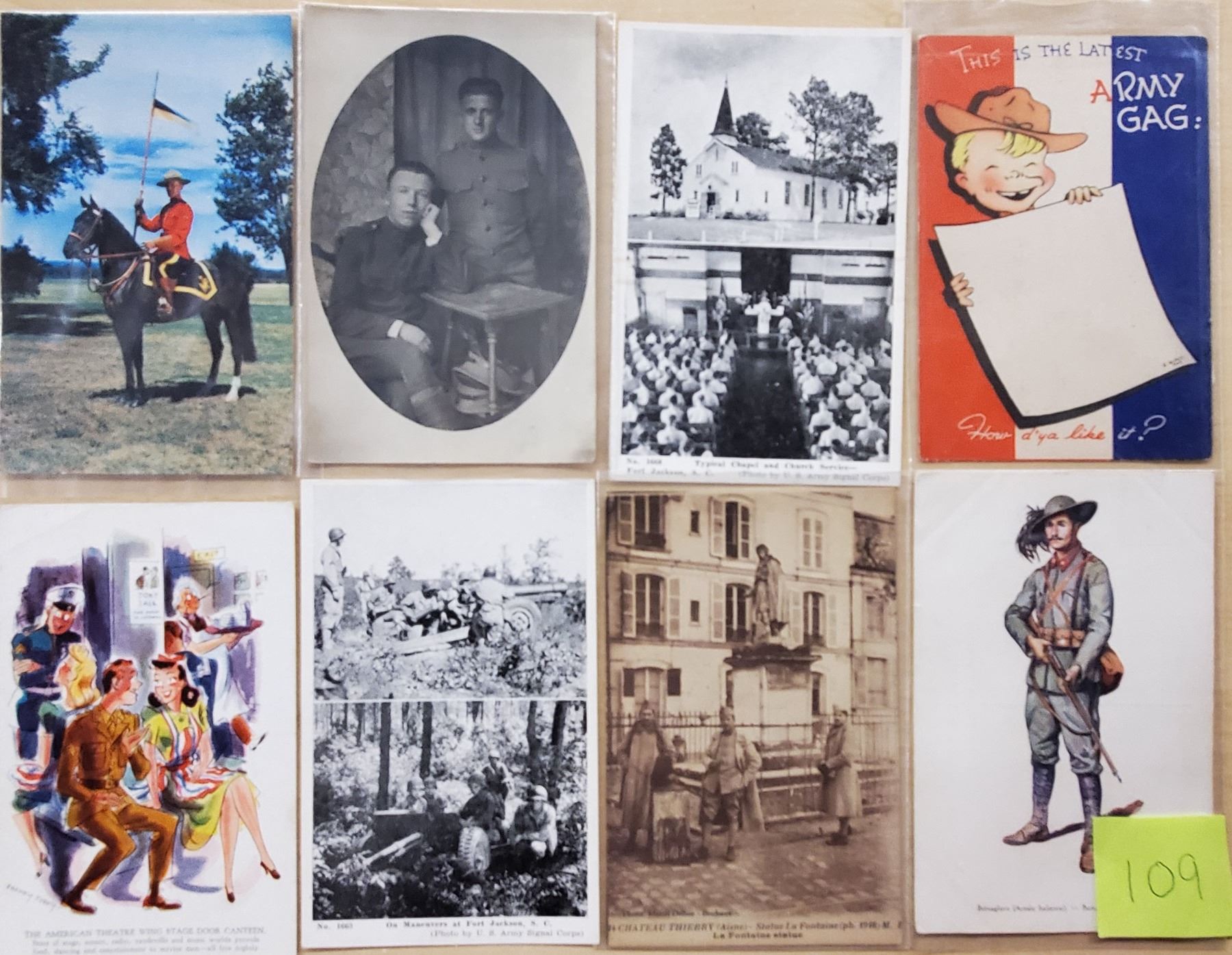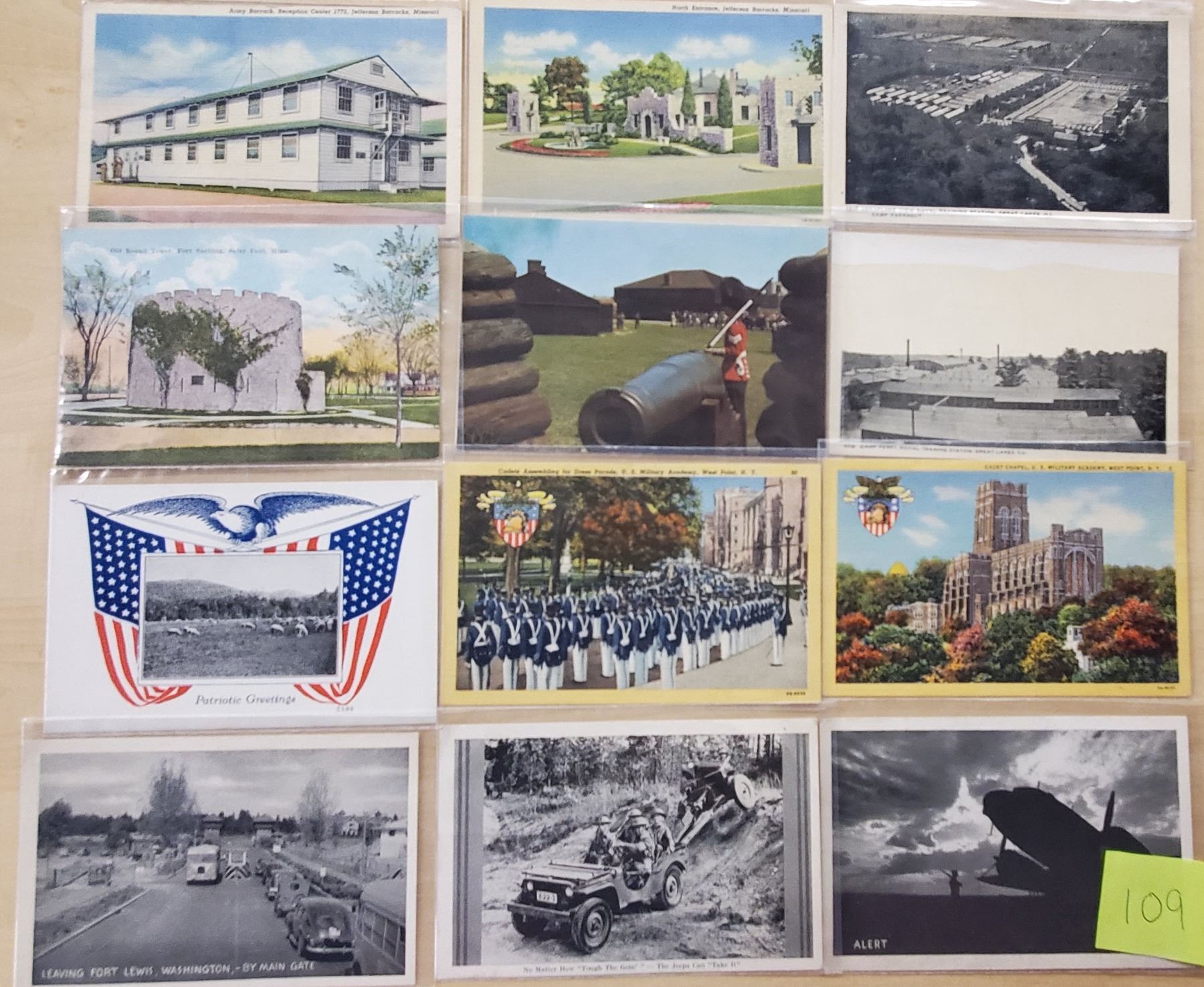 Over 300 military postcards. Early to standard size chrome. Soldiers, bases, some real photo, etc.
