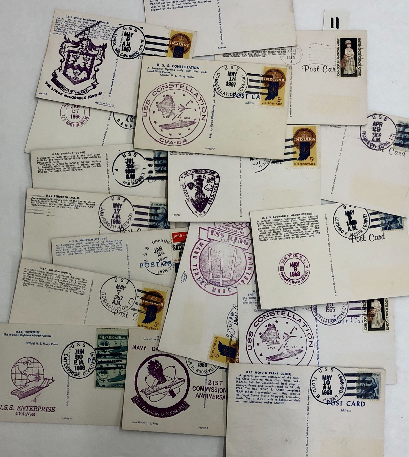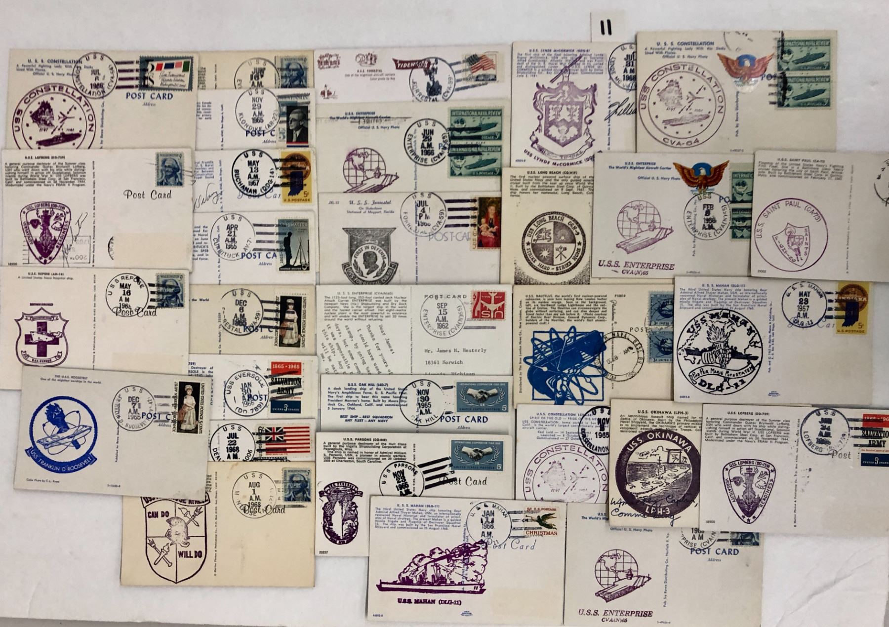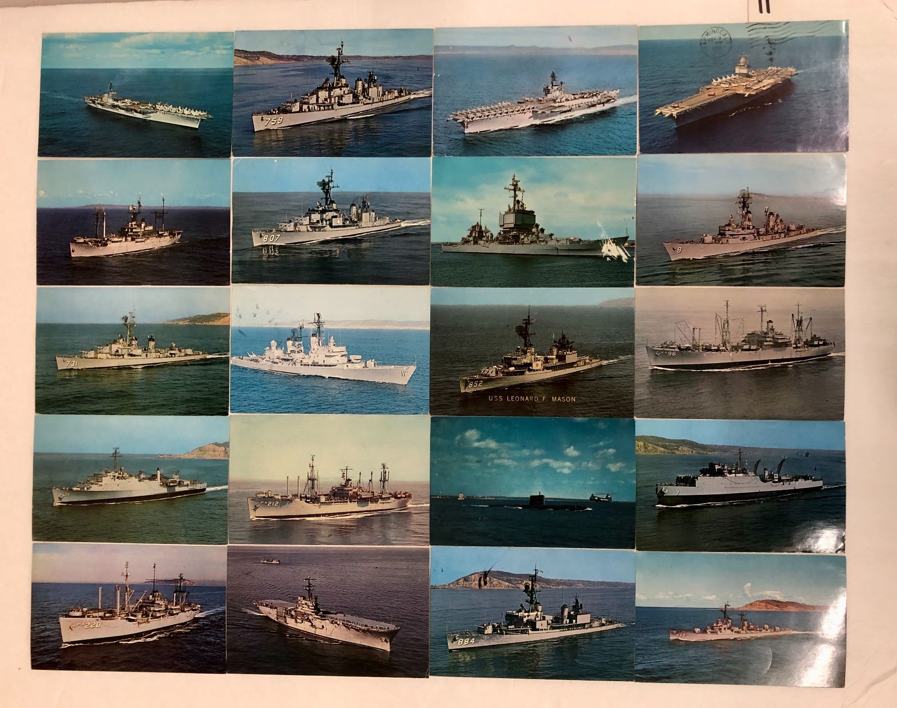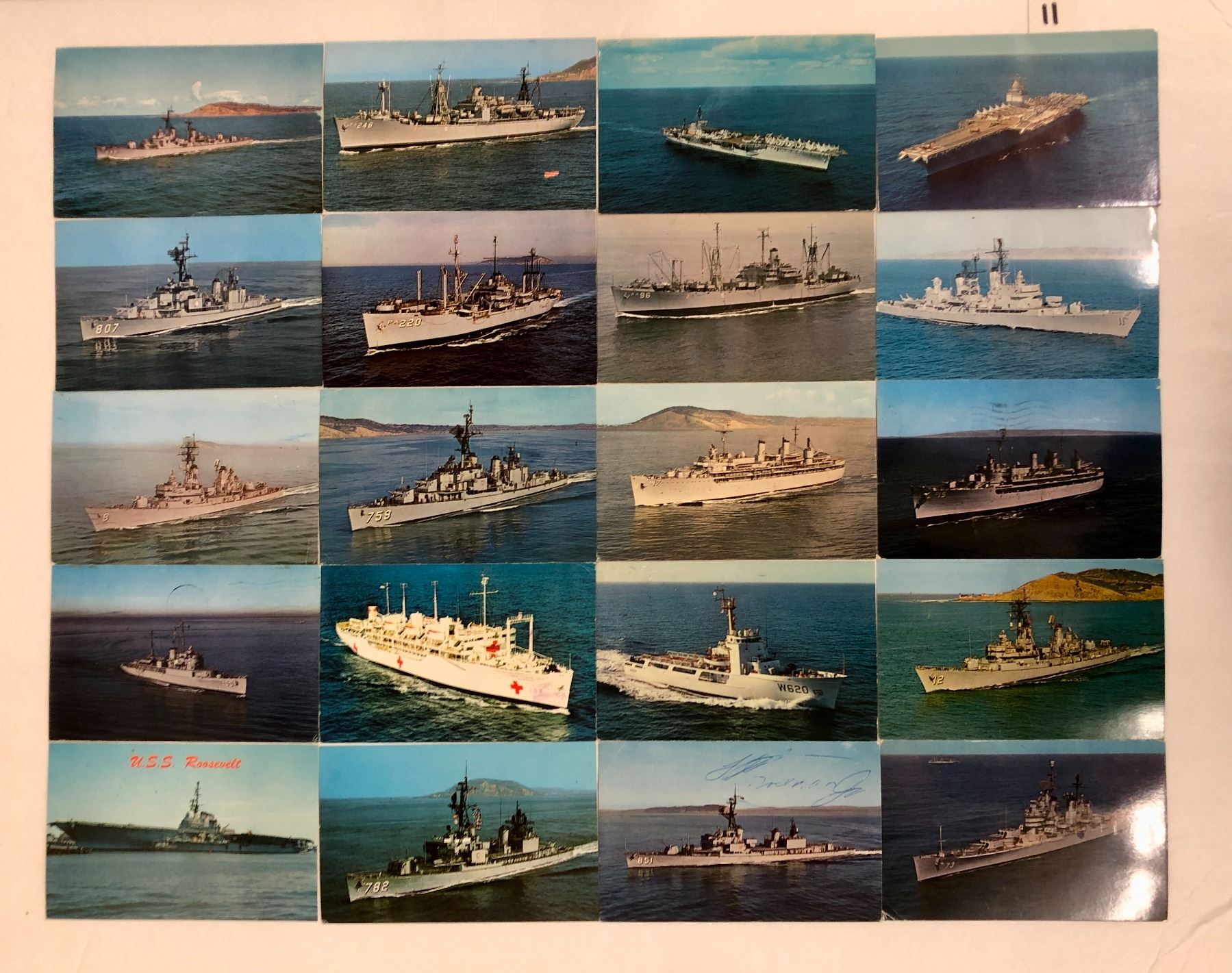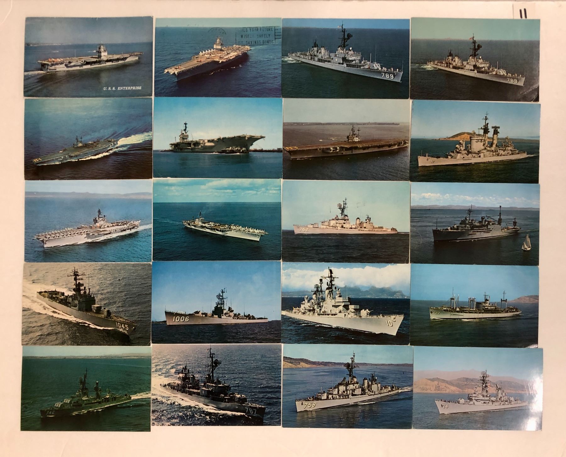 Approx. 70 Military Ship Postcards. Standard size chrome. Many with ship cancels.