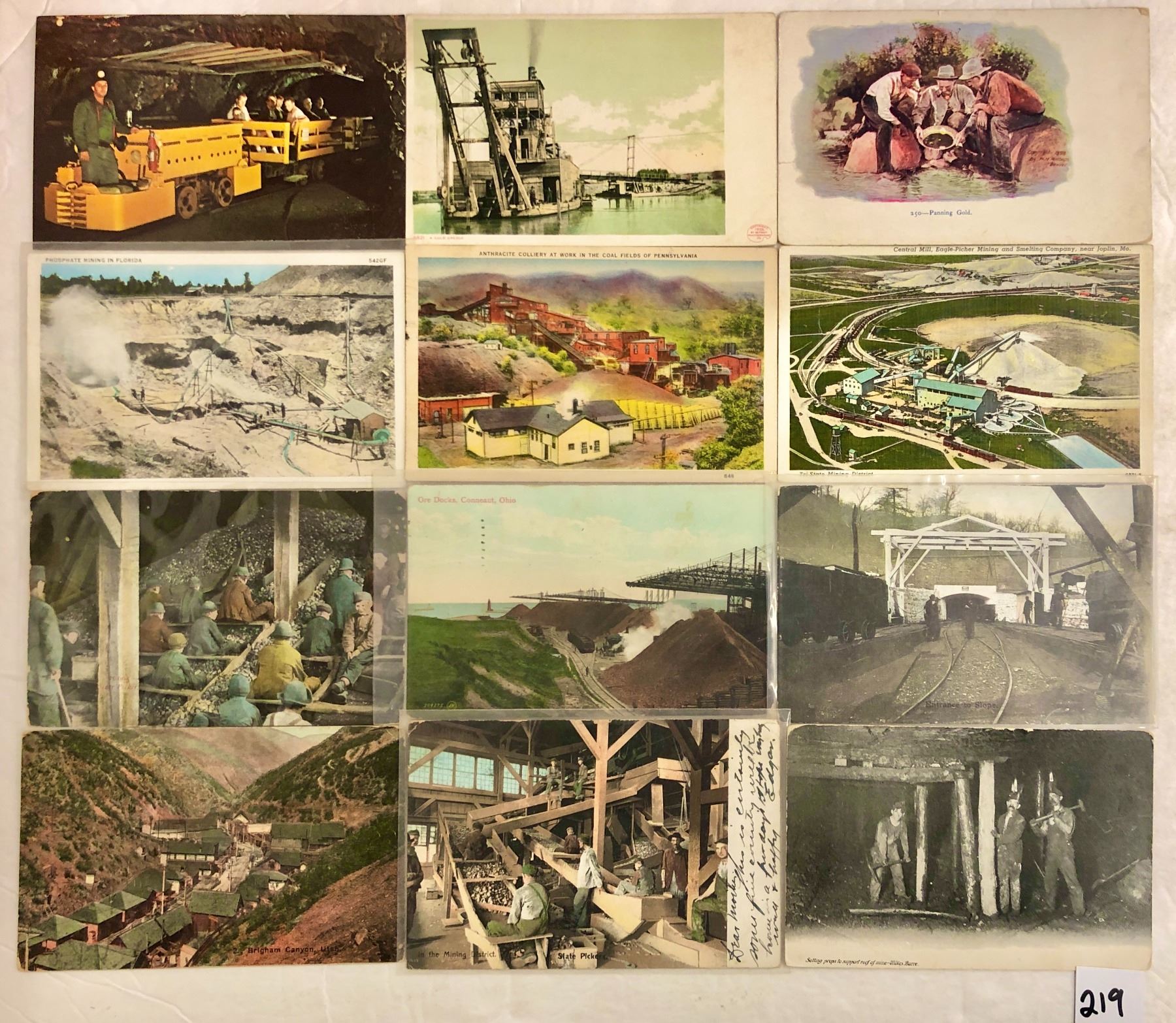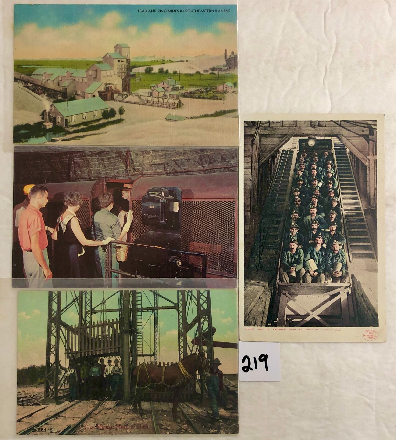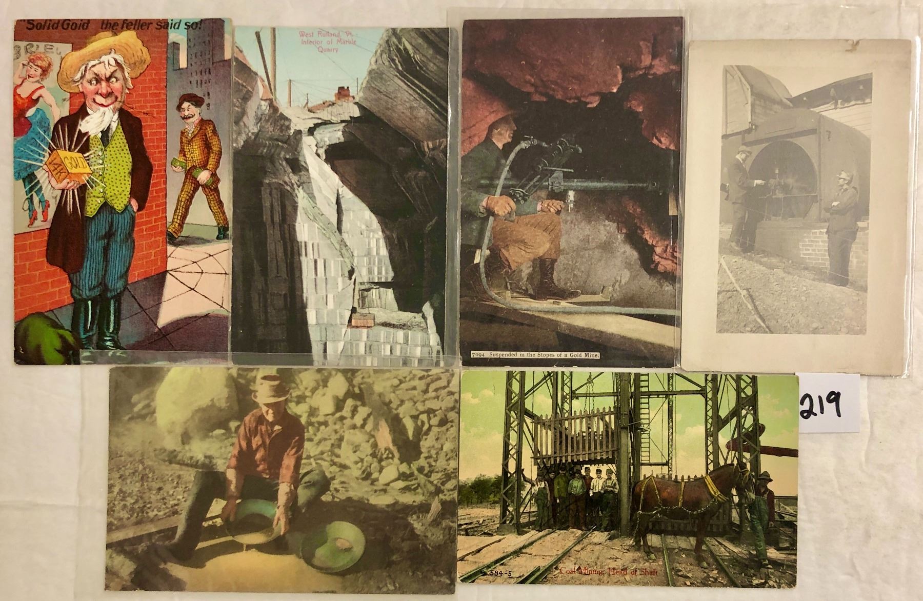 Over 45 mining postcards. Early to linen, a few standard size chrome.