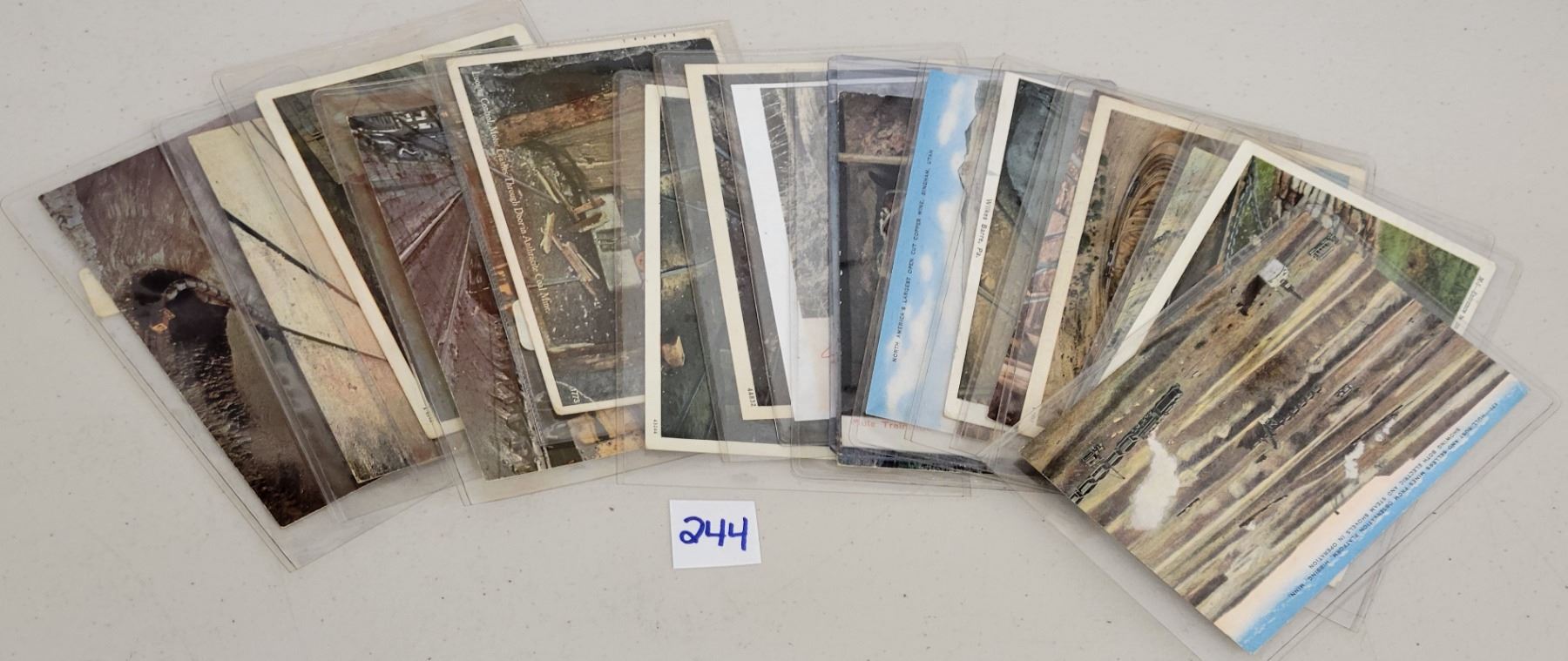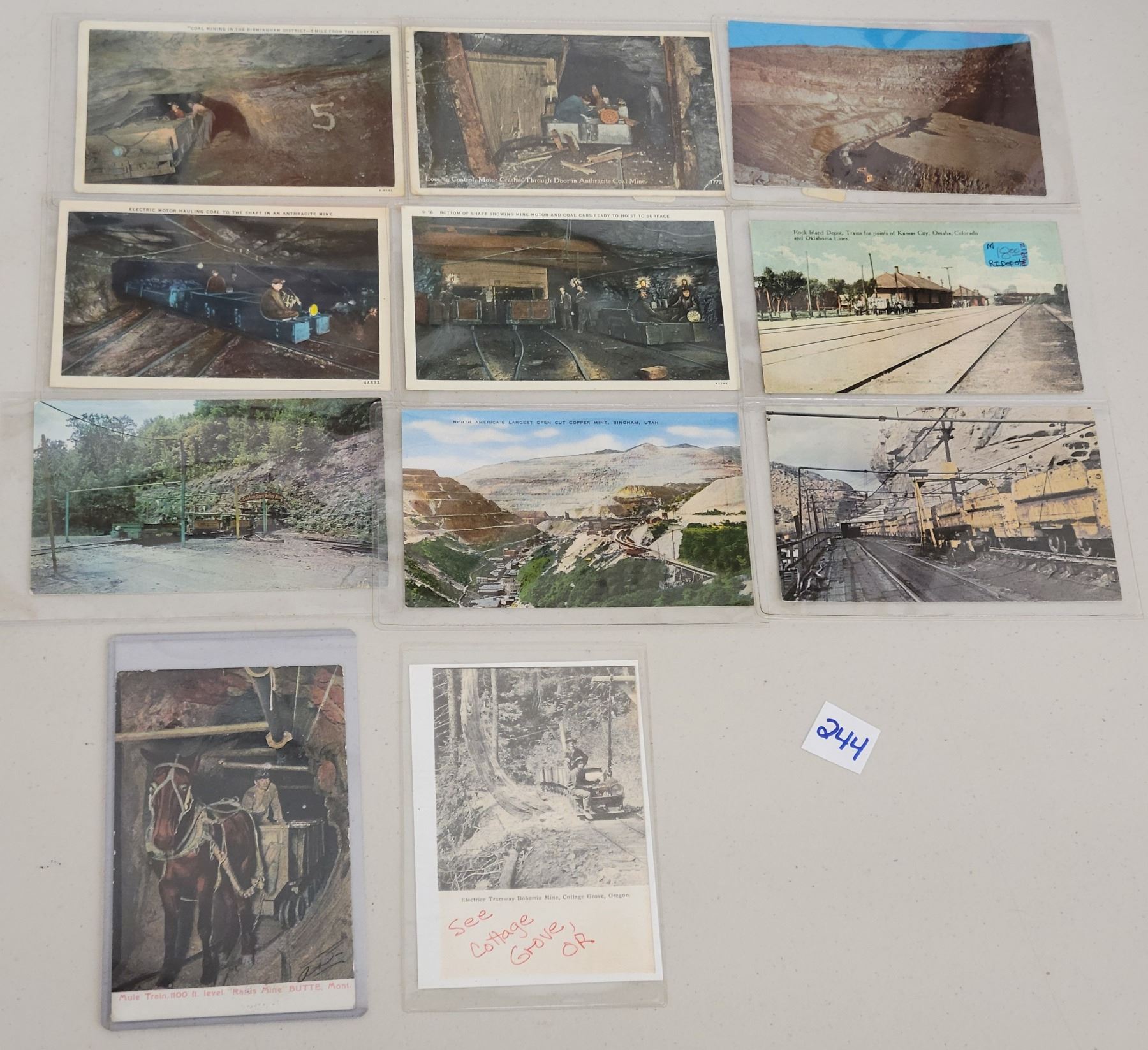 17 mining train postcards. Early to standard size chrome. Mostly pre chrome.