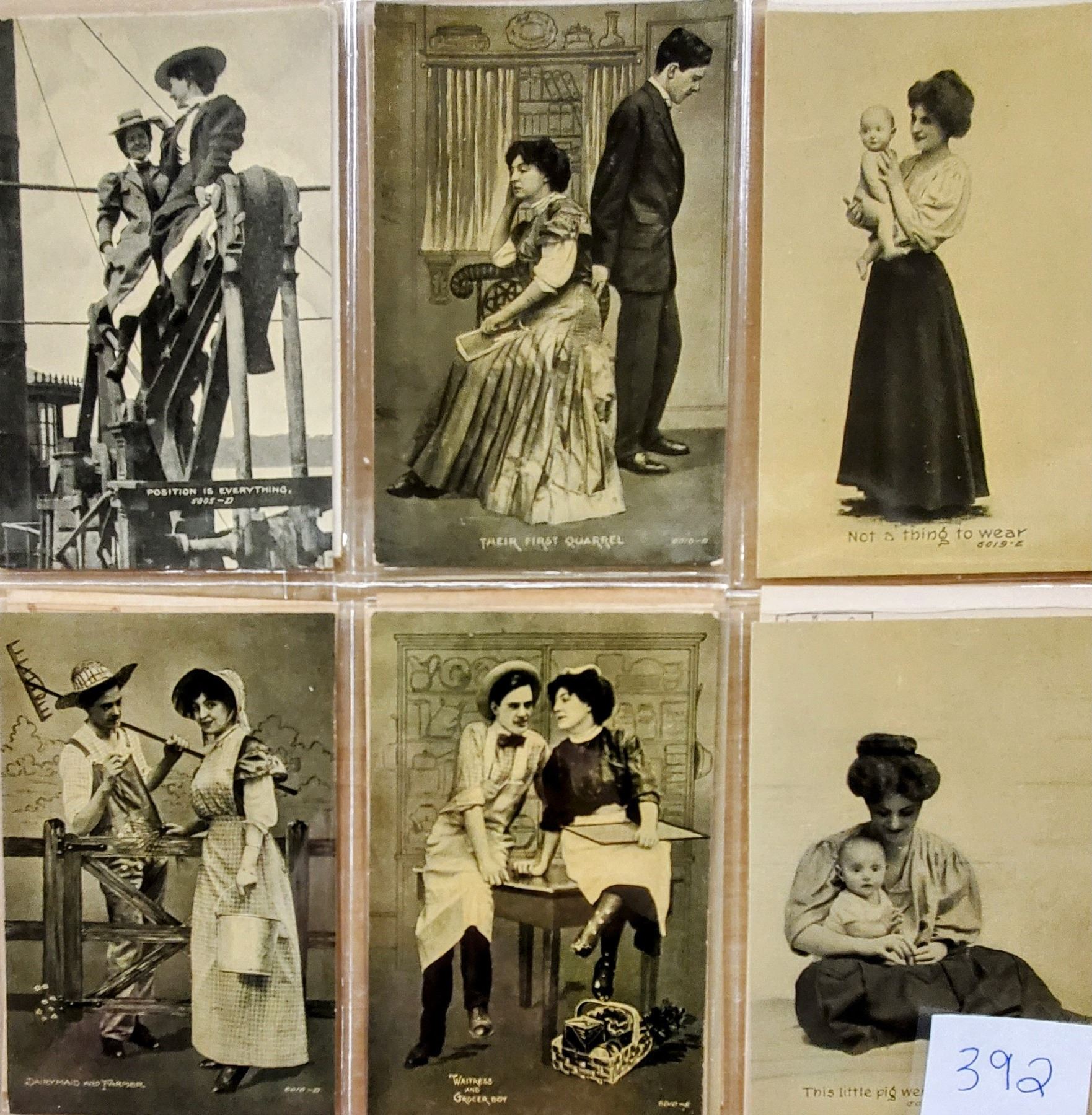 Over 150 cards. Ladies, Santa, animals, romance, shellborders, flower ladies, children, and more.