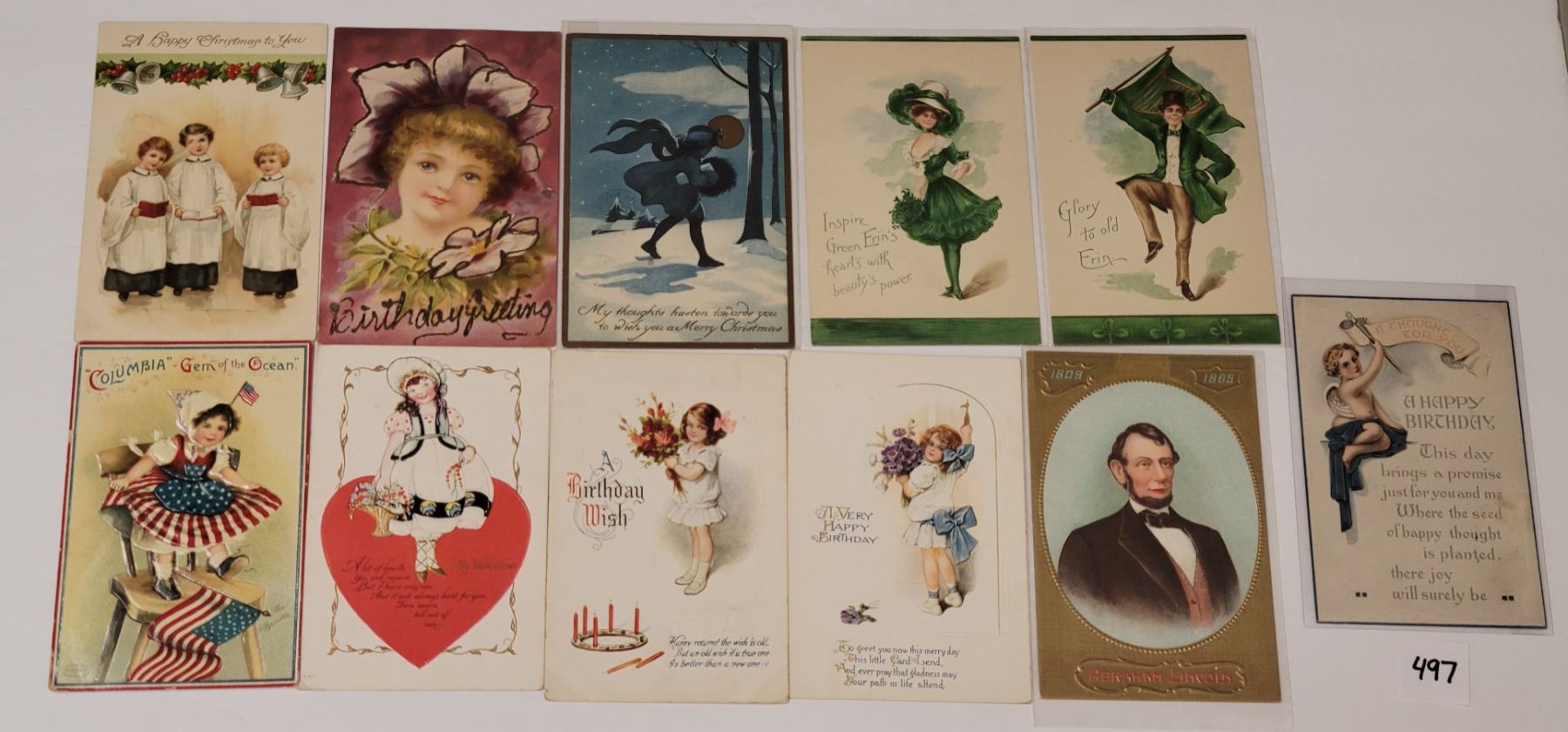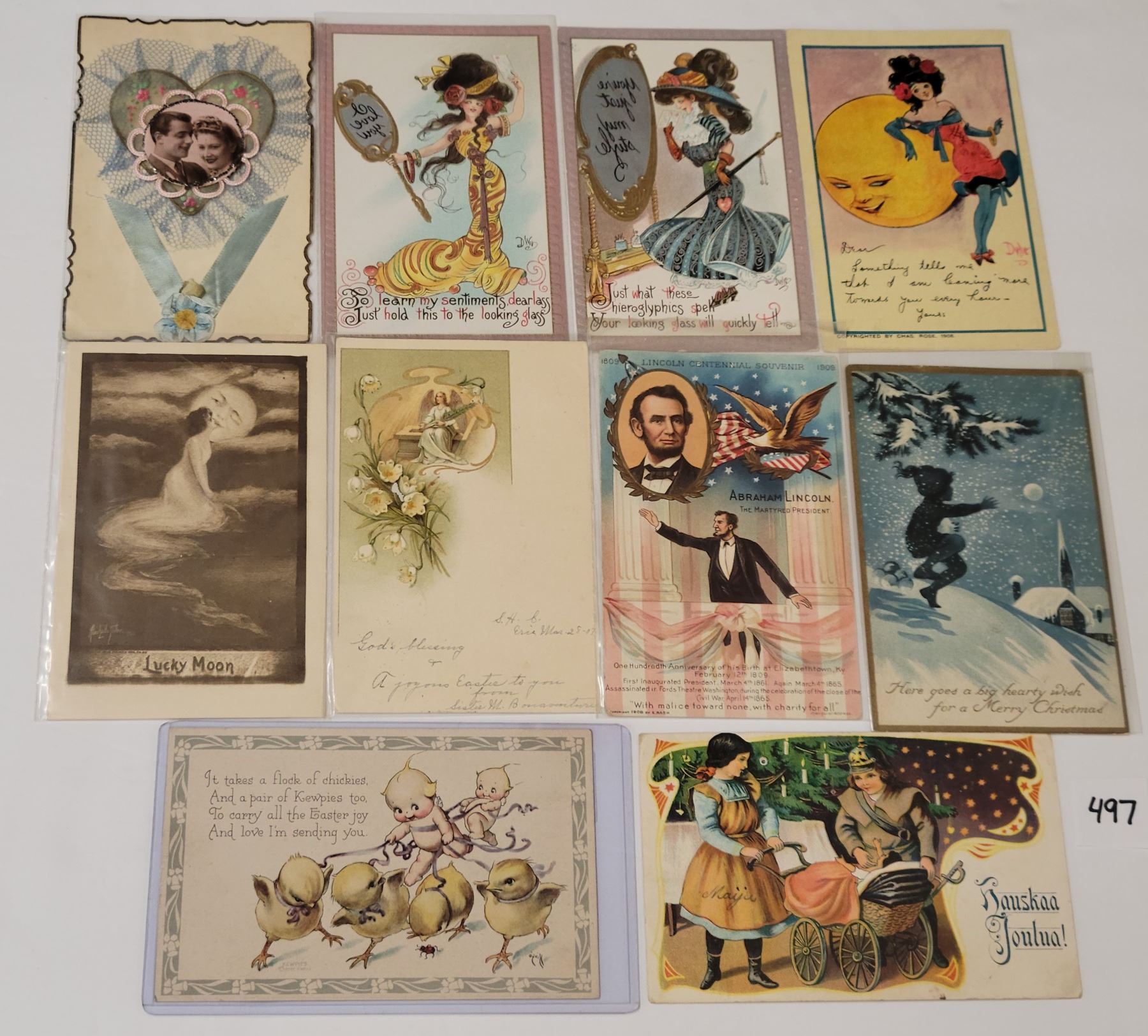 Over 20 holiday greeting postcards. Ladies, publishers, children, etc.