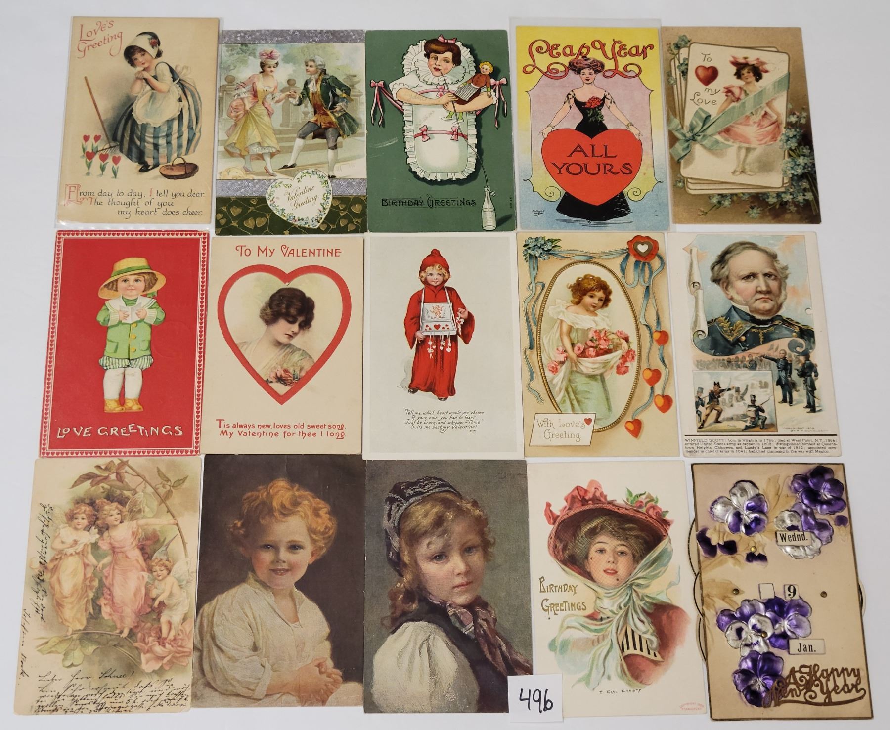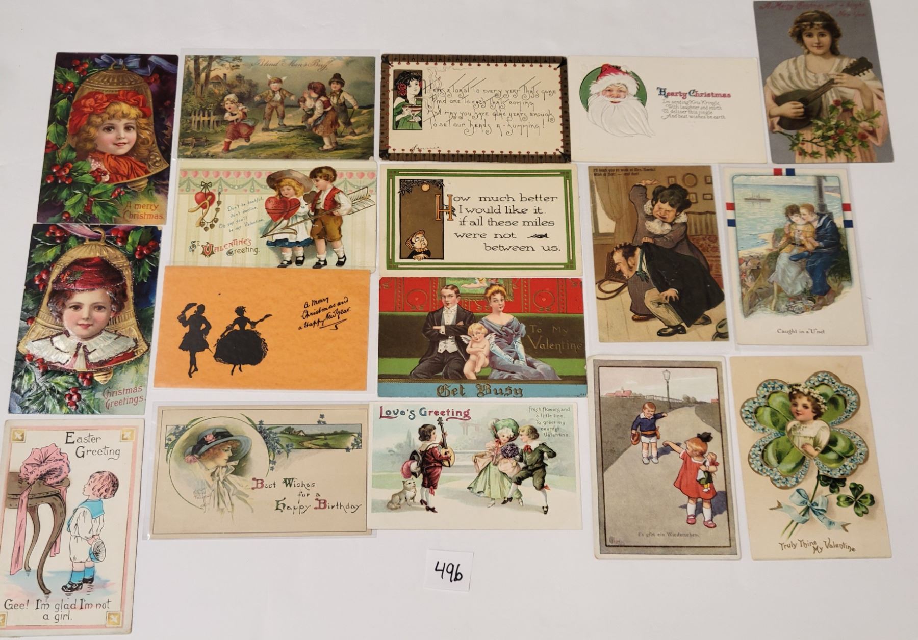 Over 30 holiday greeting postcards. Publishers, children, artists, novelty, angels, etc.