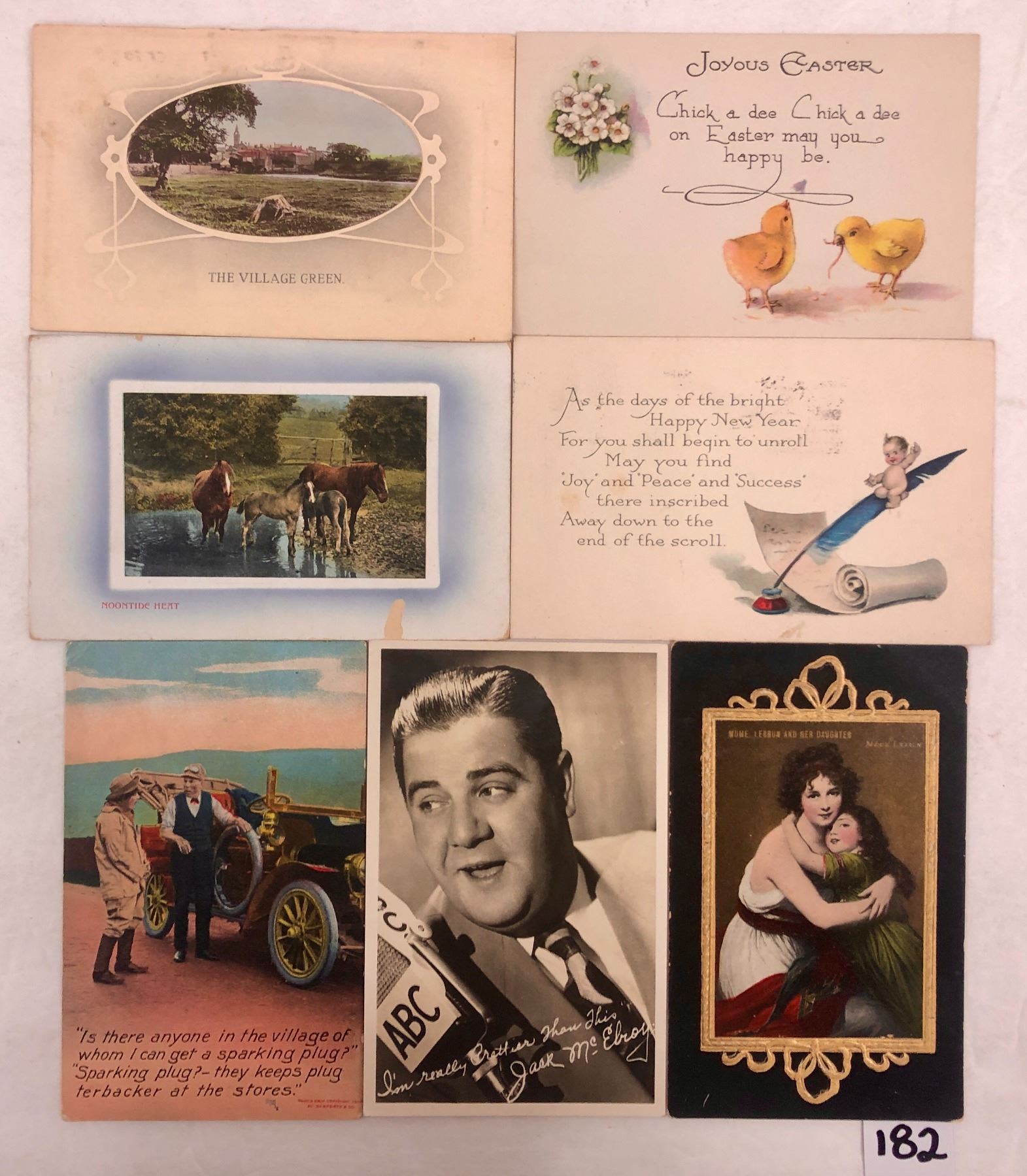 Misc. lot of approx. 240 postcards. Mostly early. Romance, views, greetings, animals, photos and more.
