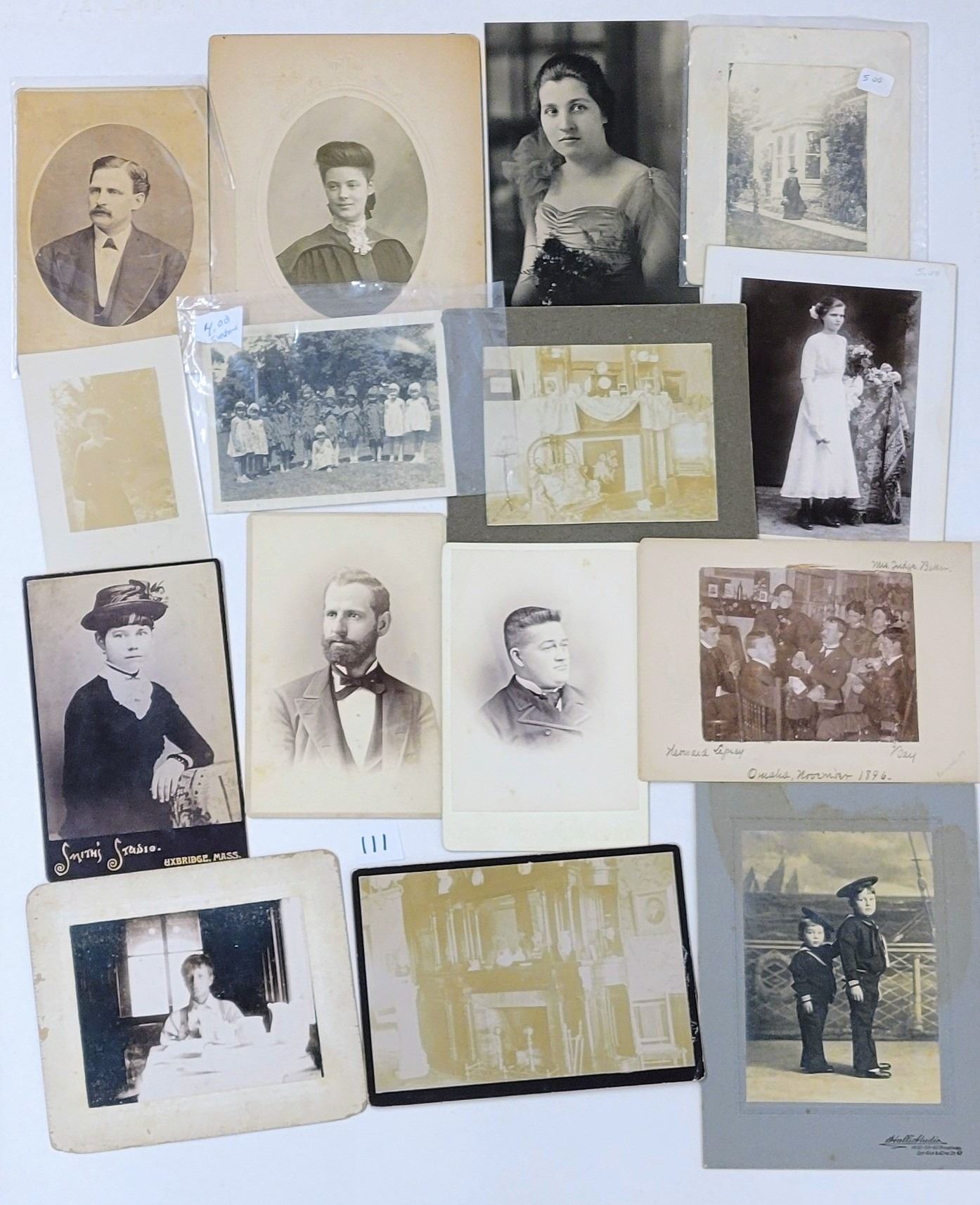 Approx. 60 photos of people. Non postcards. Different sizes. Snap shots, cabinet cards, etc.