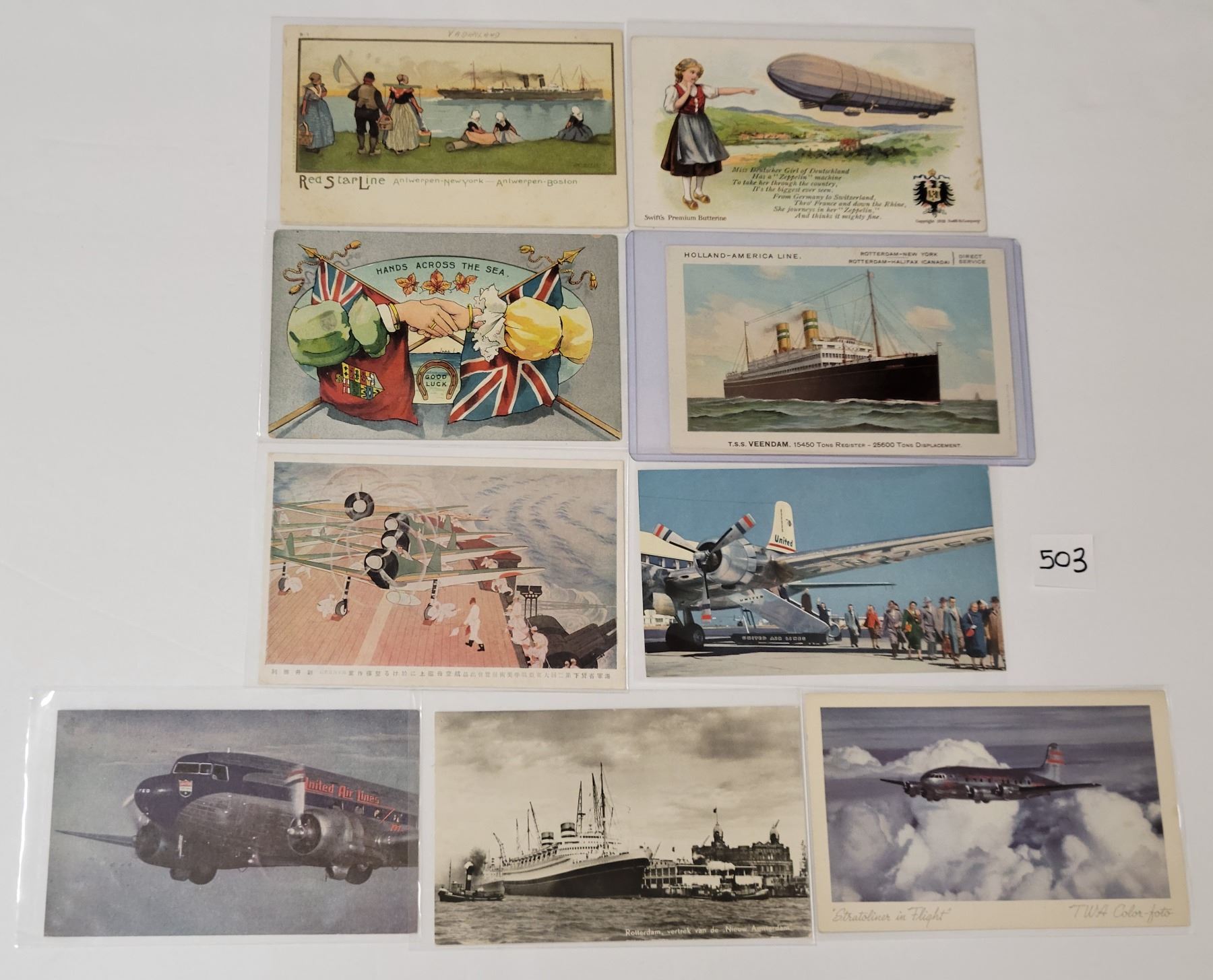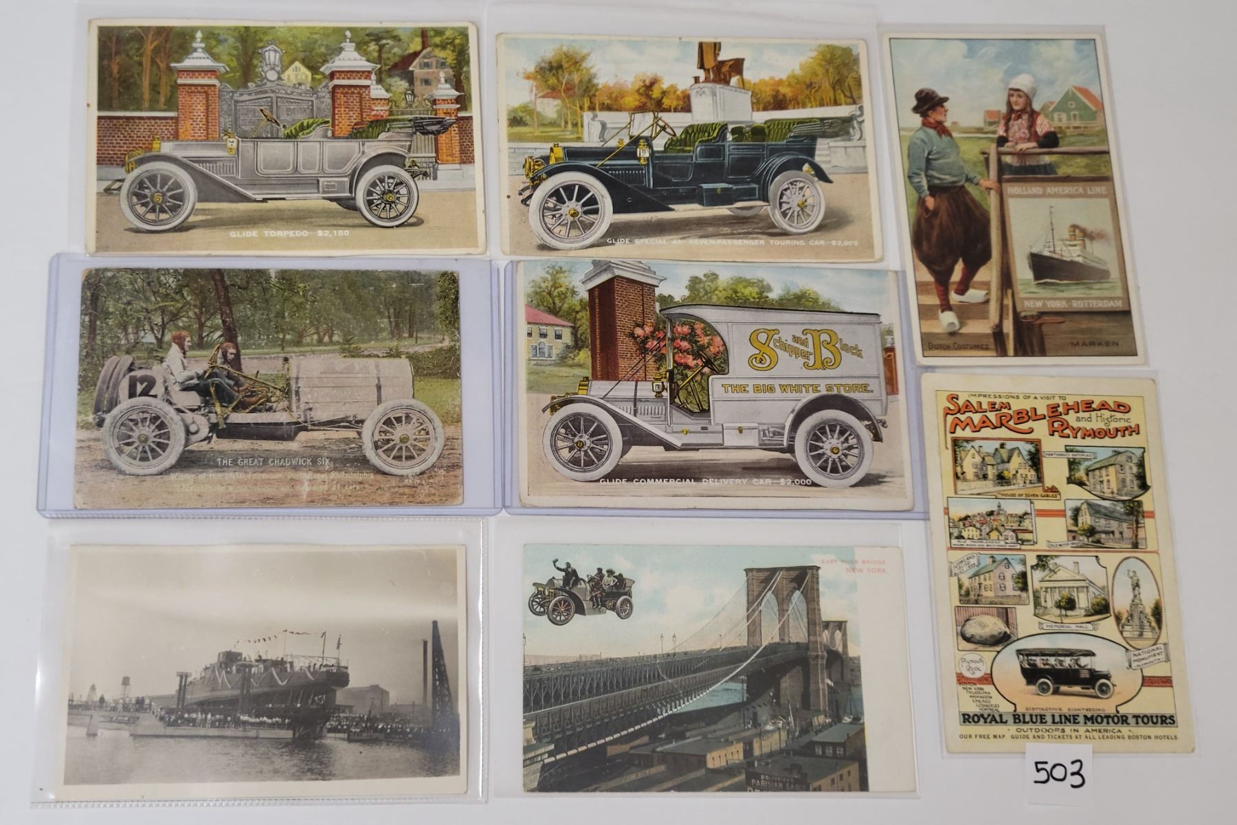 17 transportation postcards. Planes, automobiles, ships, etc. Early to standard size chrome.