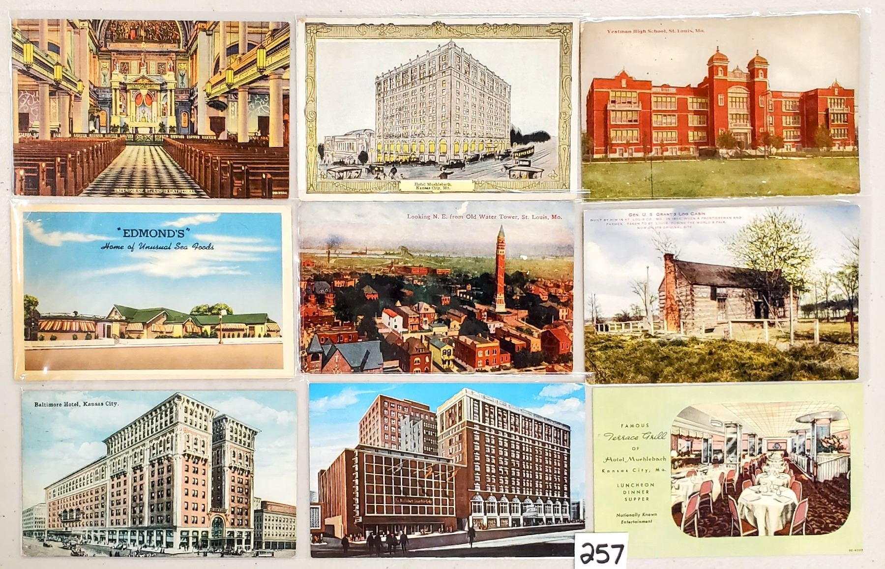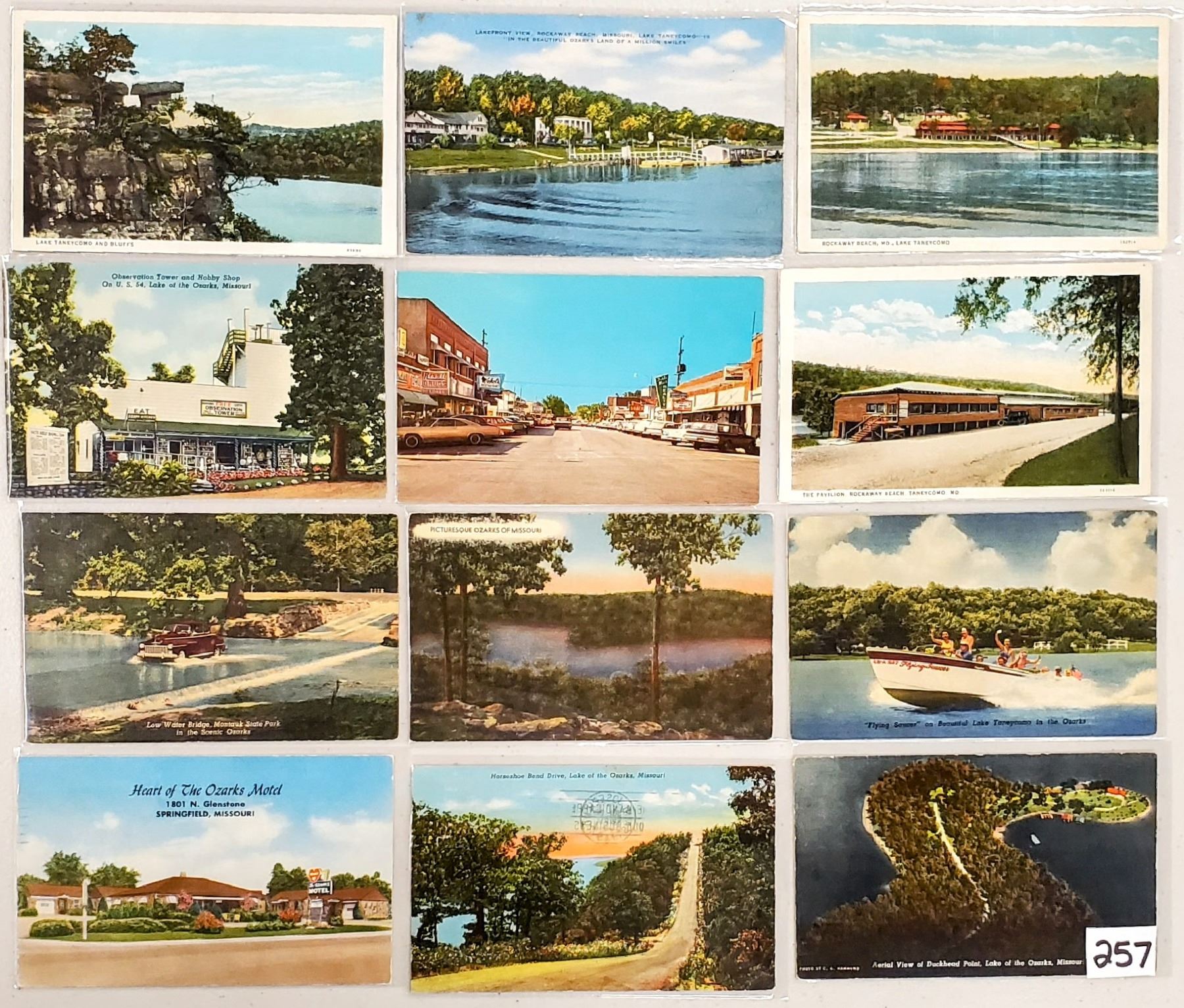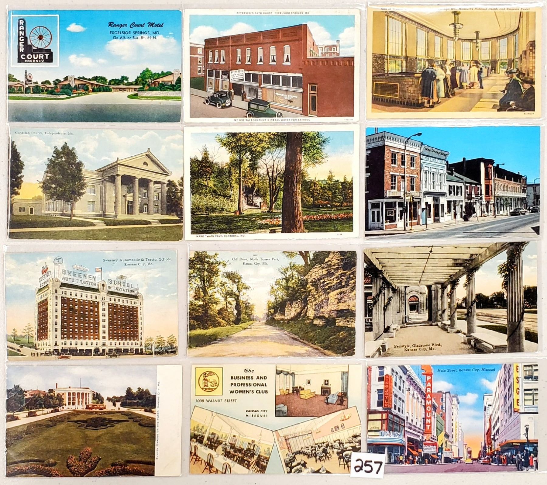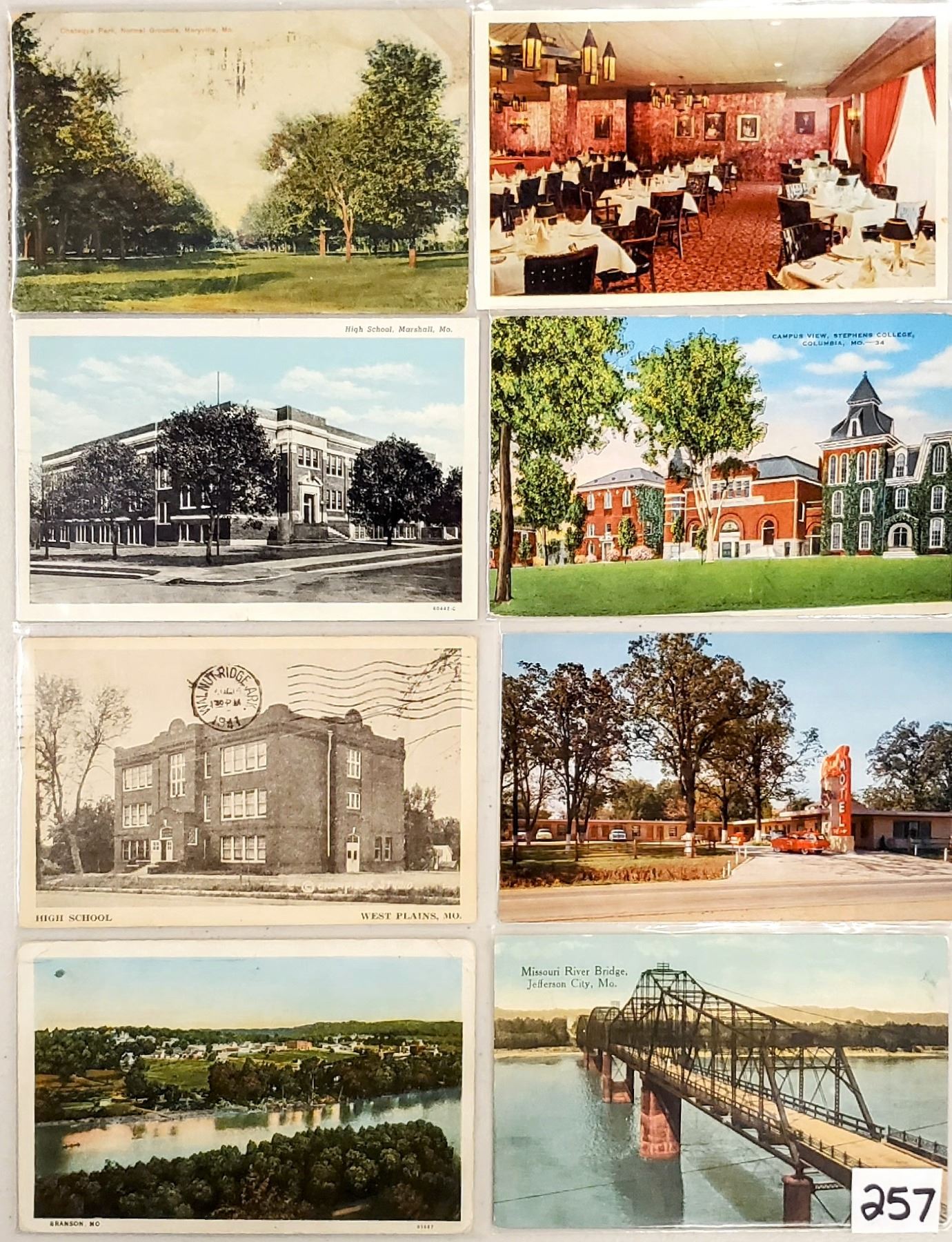 Over 215 MO postcards. Sorted into over 8 towns. Early to standard size chrome.