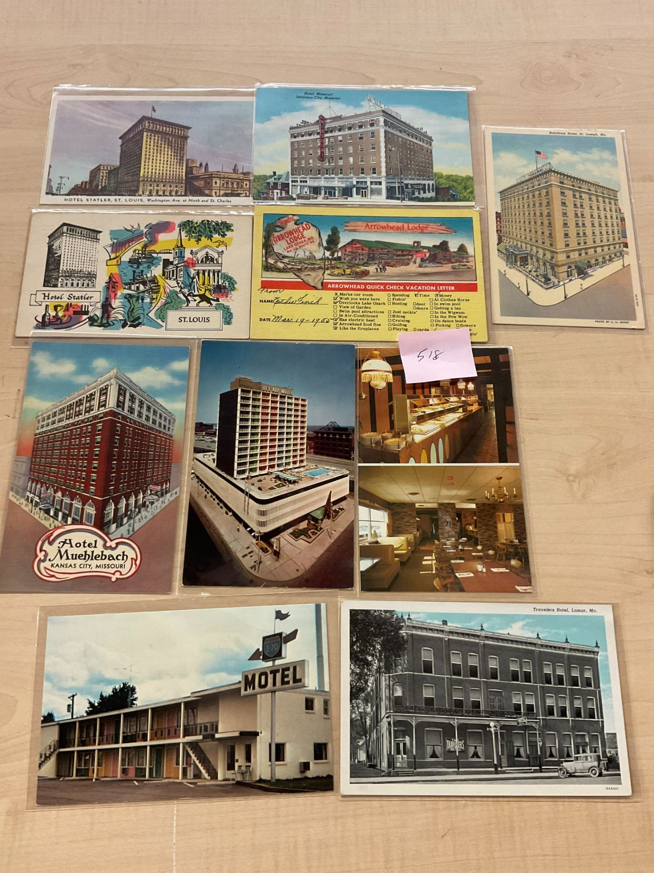 85 Missouri postcards. Many hotels, motels, roadside, etc. Linen to chrome.