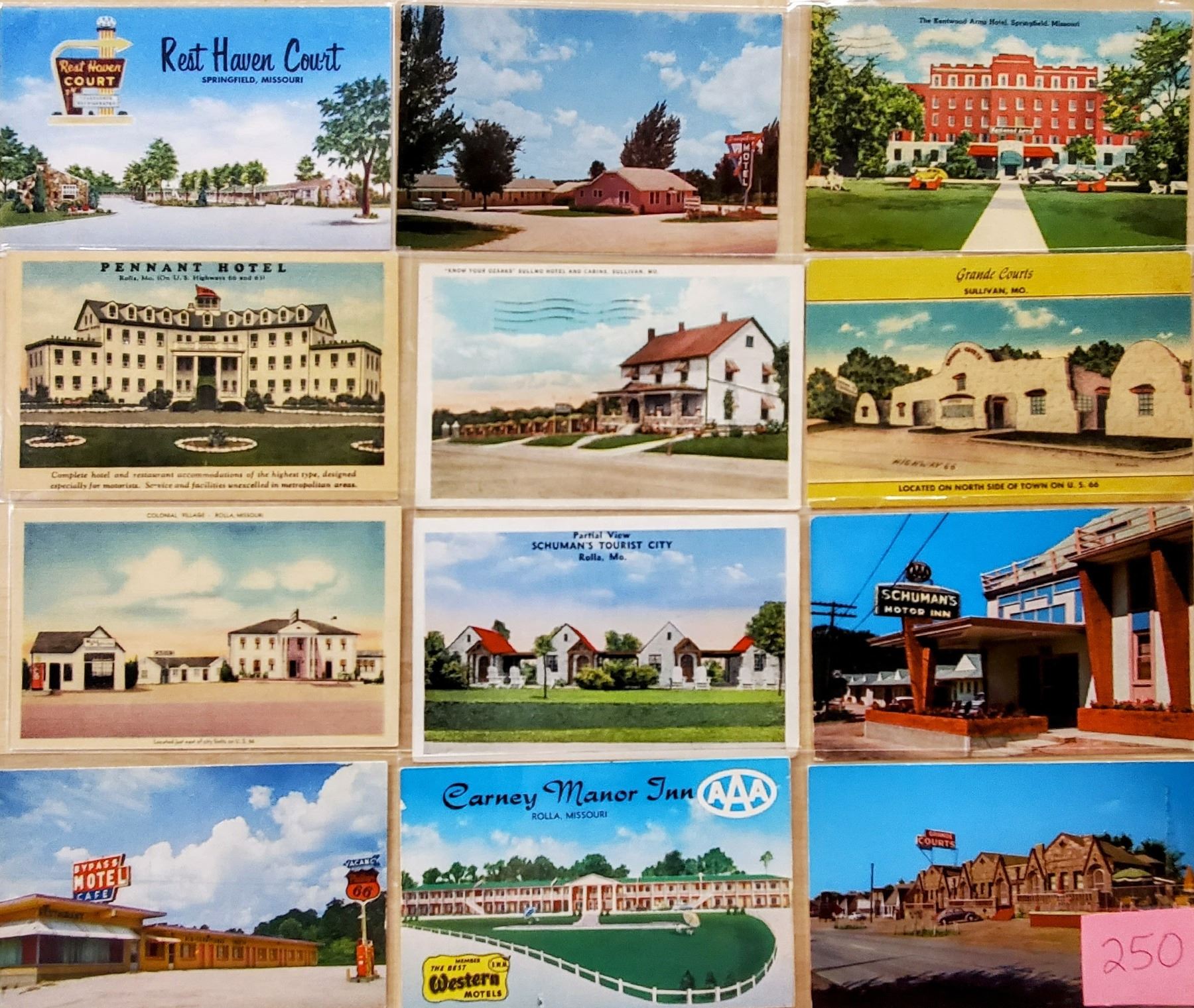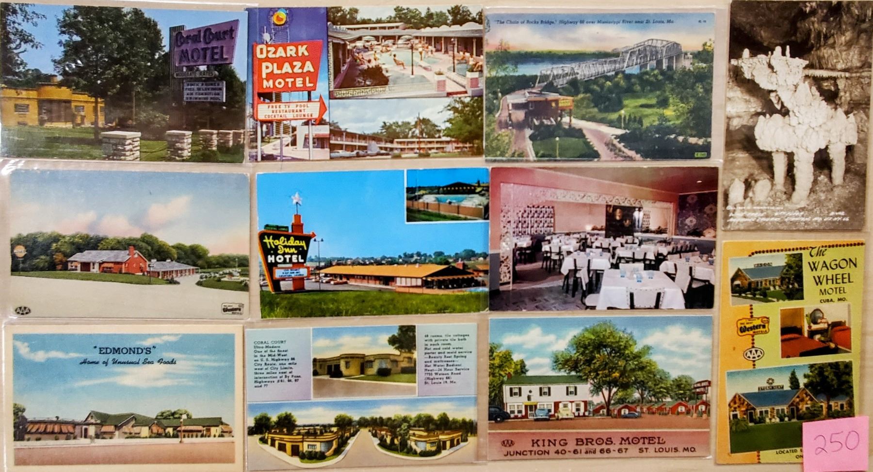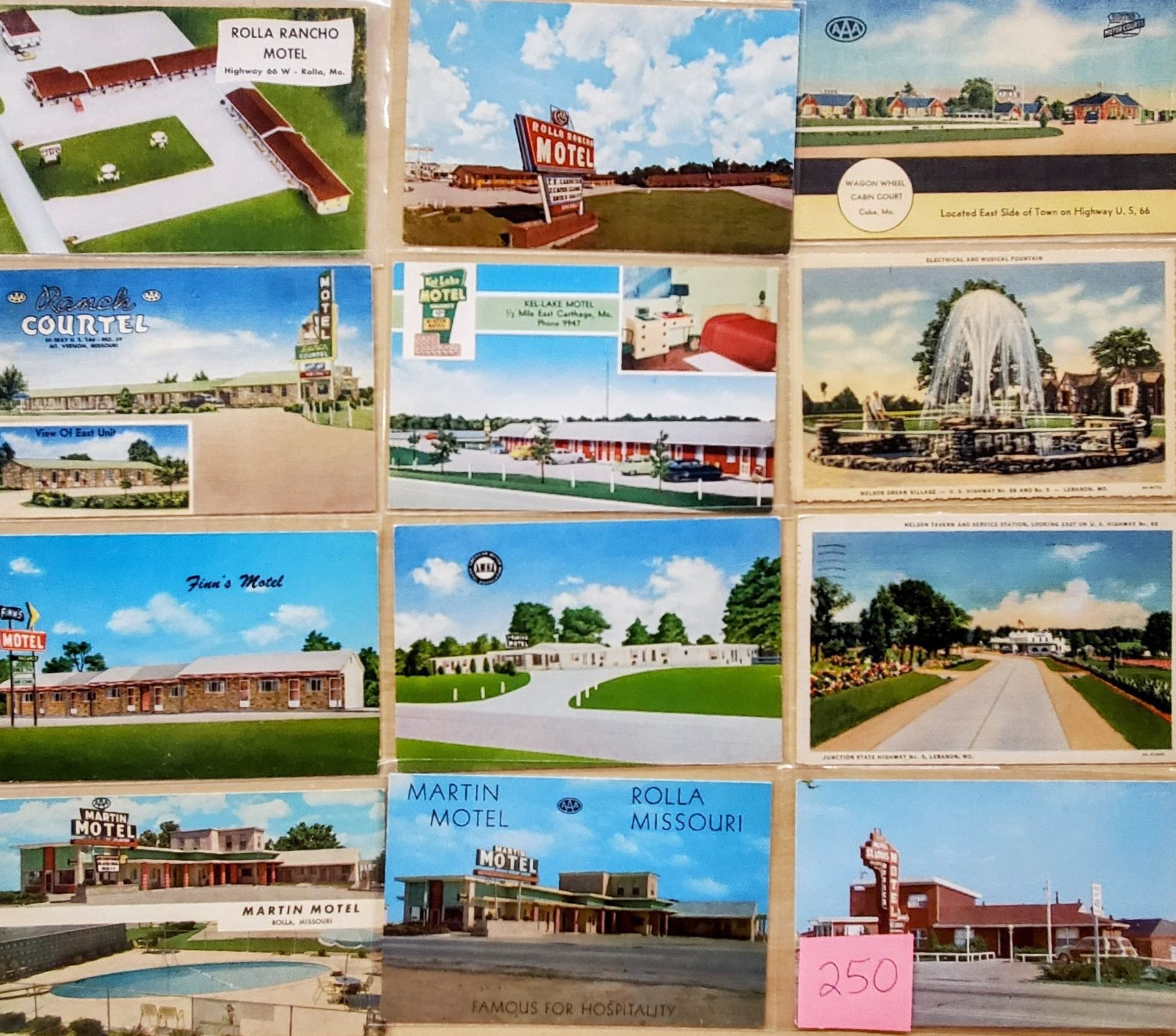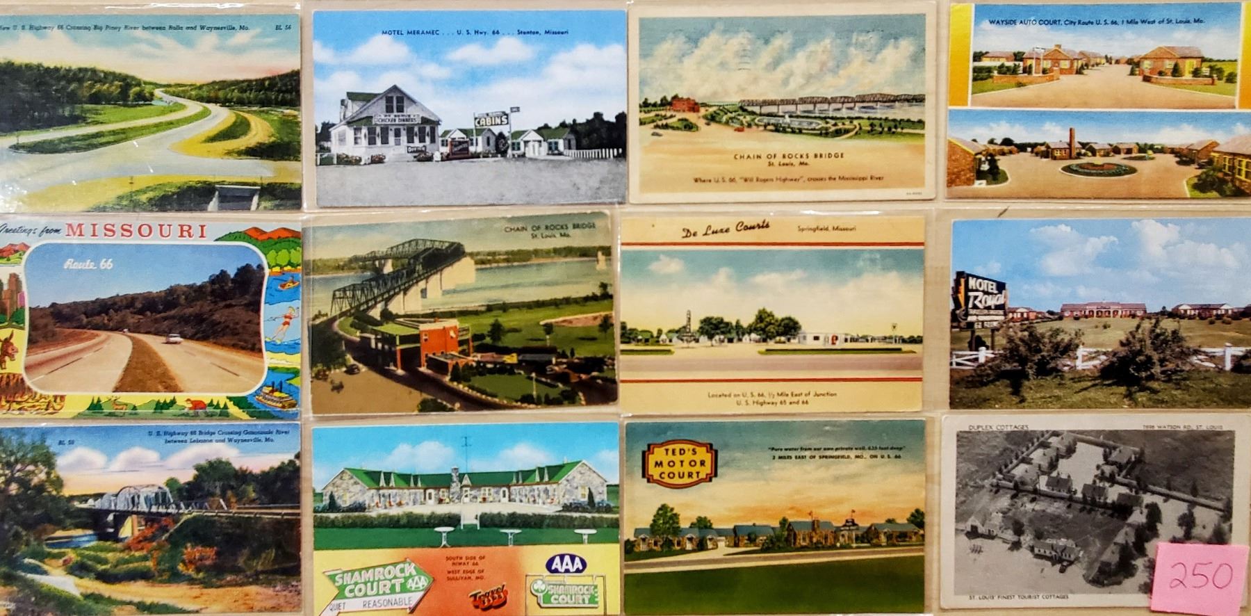 Over 60 cards of Route 66 in Missouri. Linen to standard size chrome.