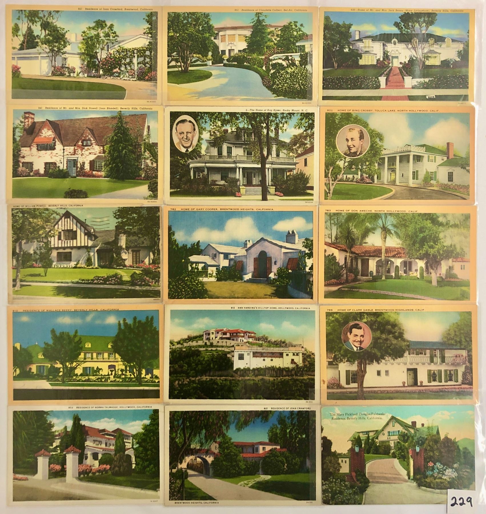 Over 35 movie star home postcards. Early to linen.