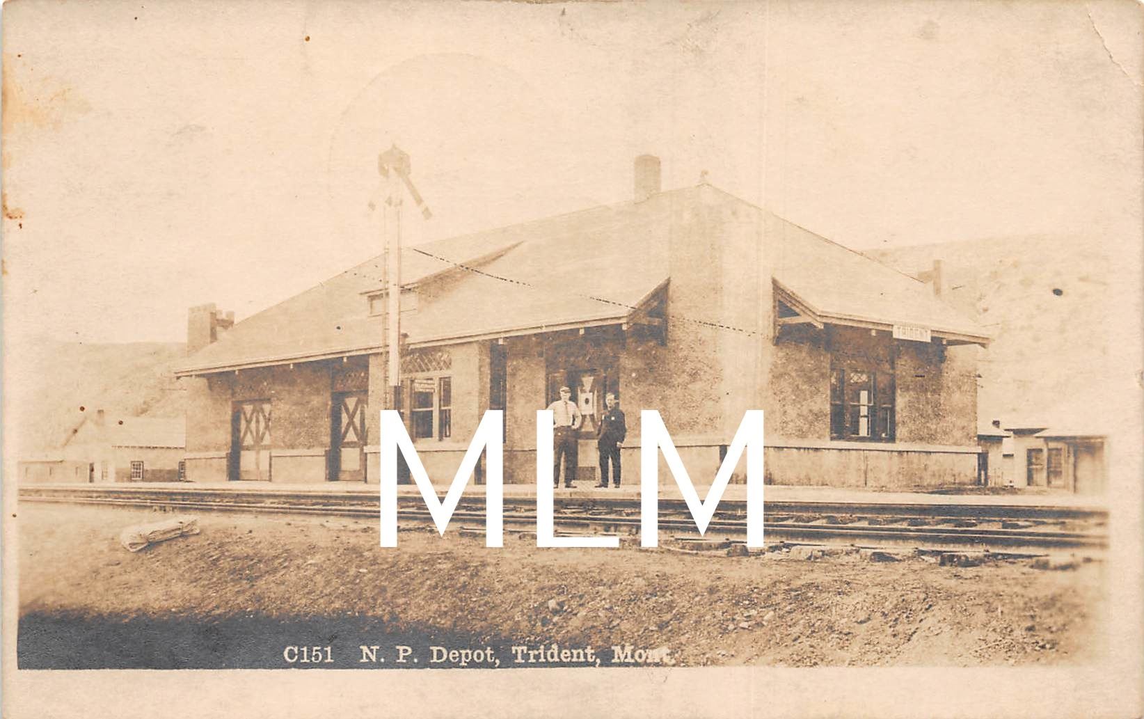 N.P. Train Depot Trident, Montana Real Photo Postcard