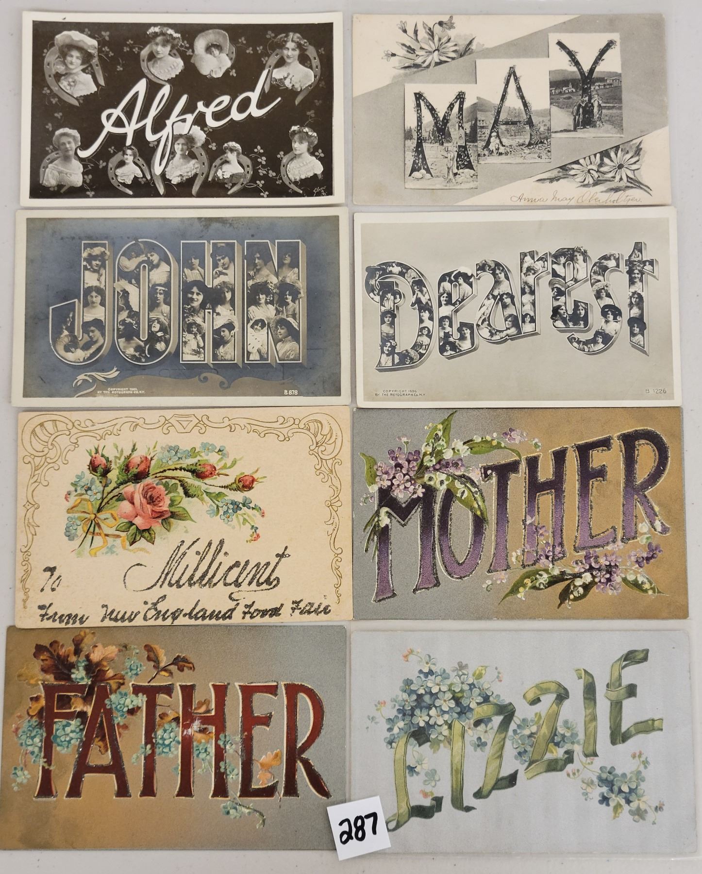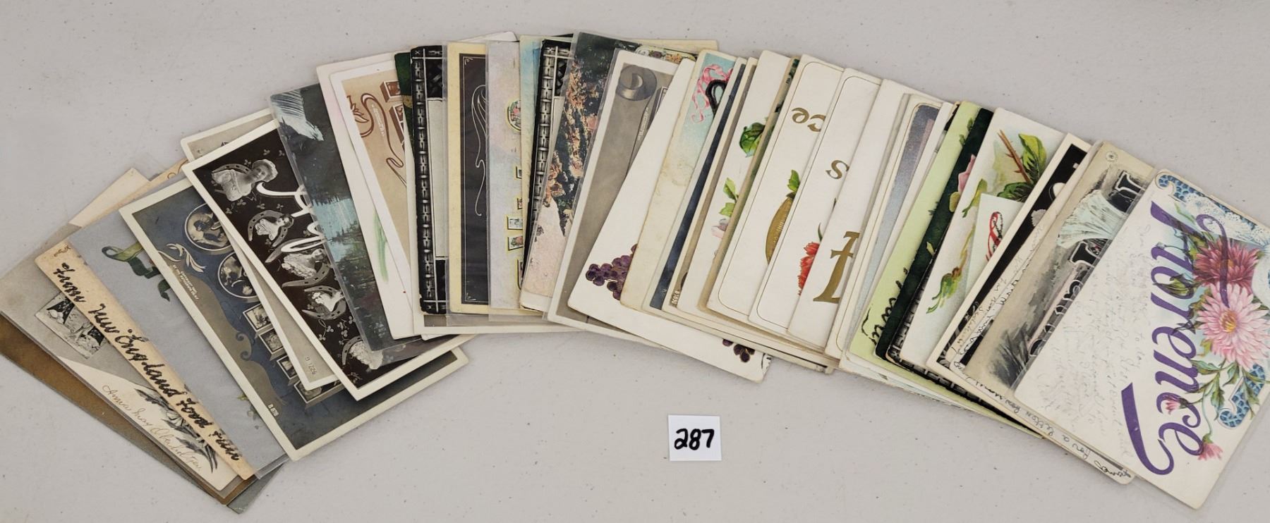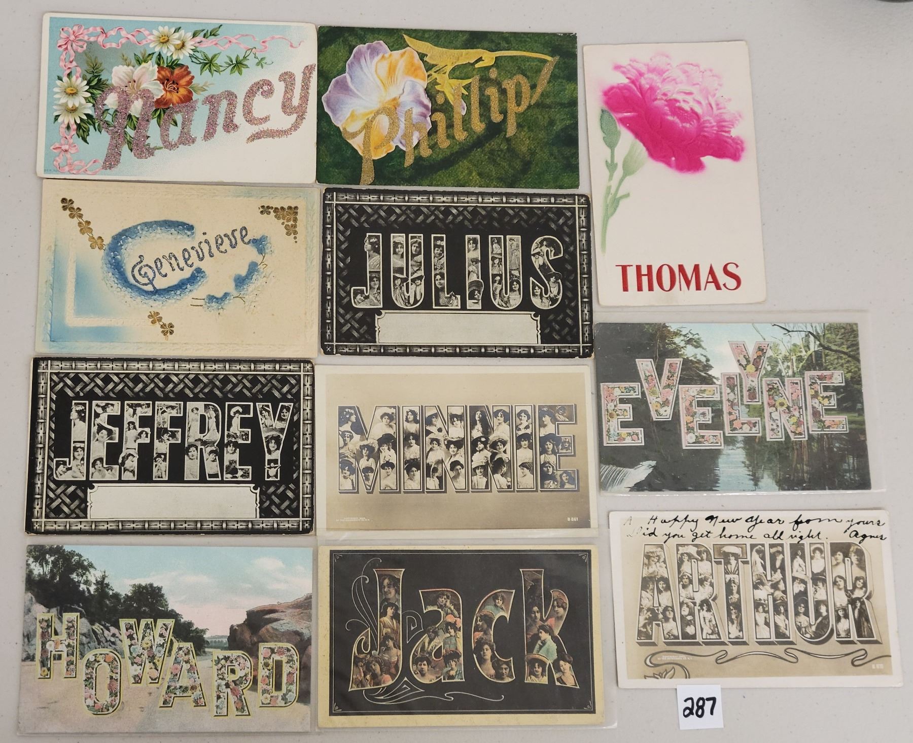 Over 40 postcards with names.