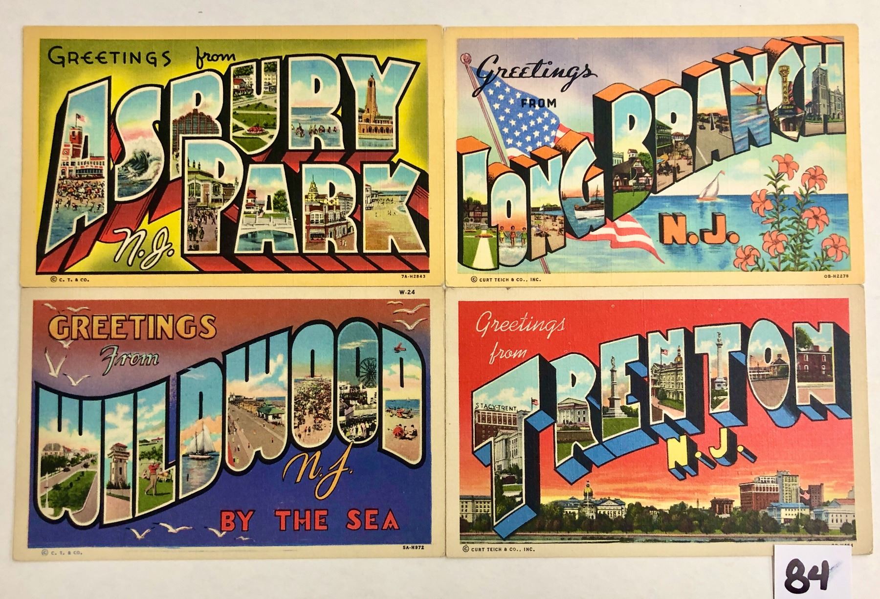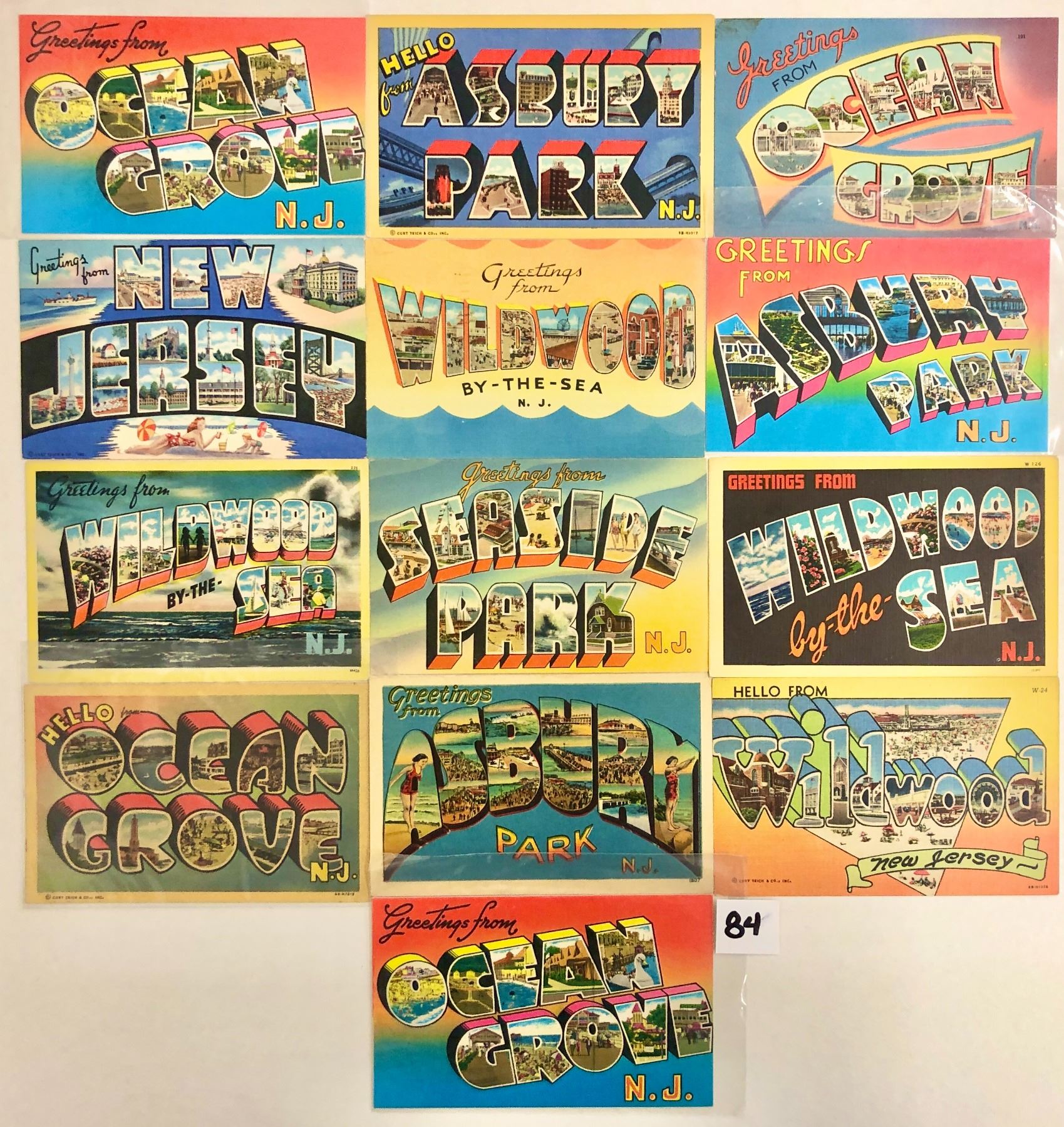 17 NJ Large letter linen postcards.