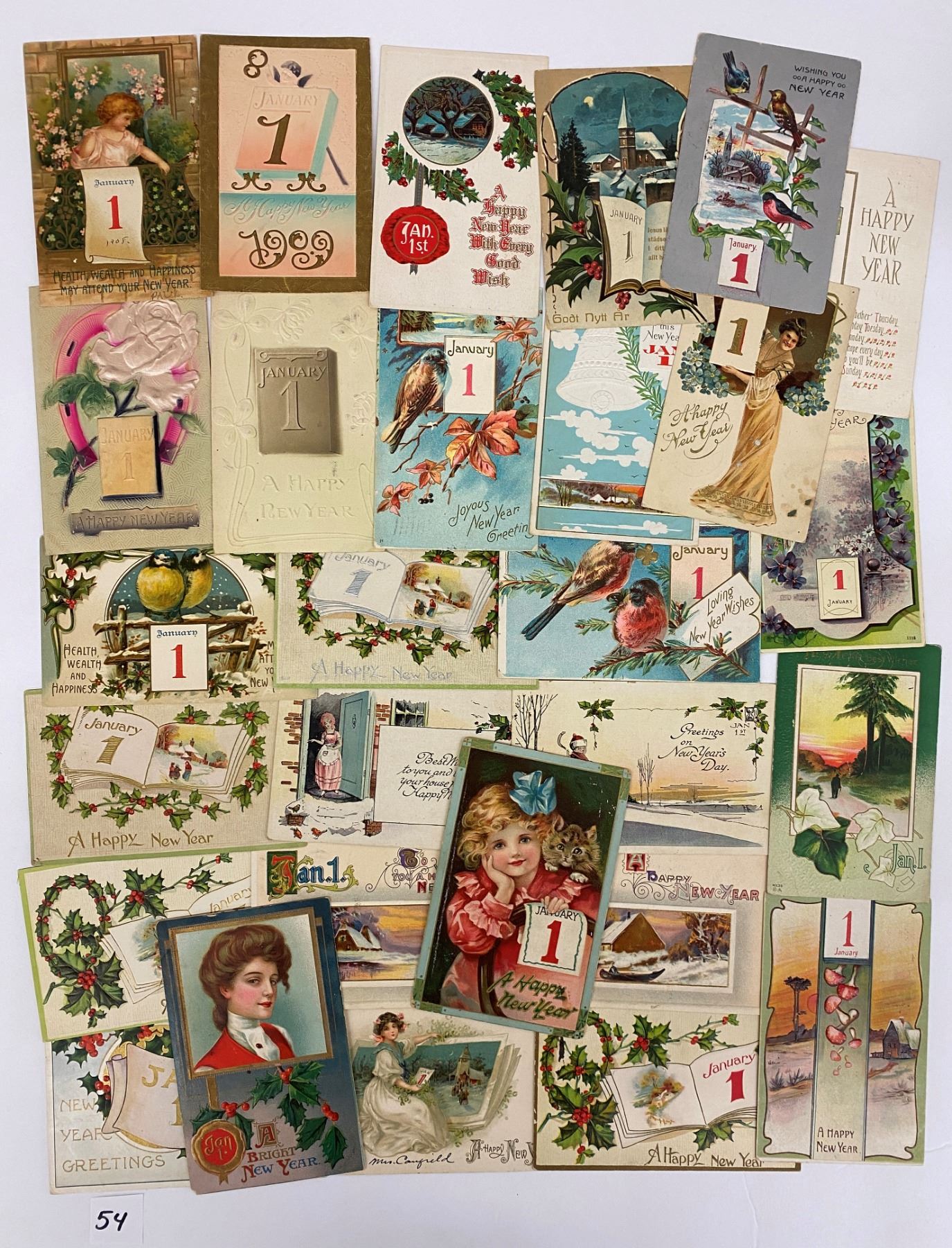 Over 200 early New Year holiday postcards.