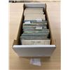 A box of standard size chrome New York cards. Some cards are grouped in small groups of duplicates. A few sections broken down, Albany, New York City, Grossingers, Rhineback and a section from all over NY.