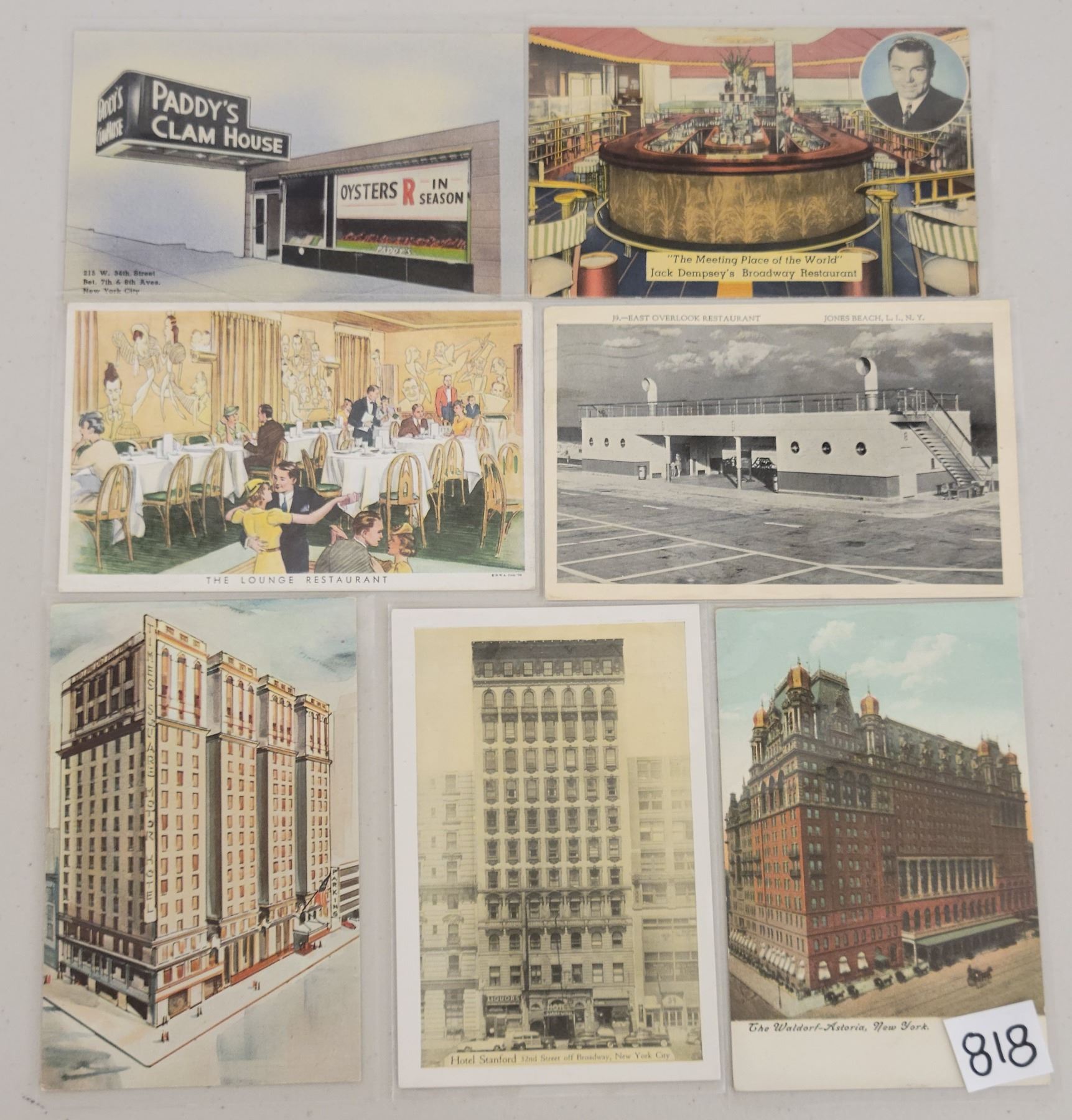 Approx. 140 NYC postcards. Churches, restaurants, hotels. Early to standard size chrome.