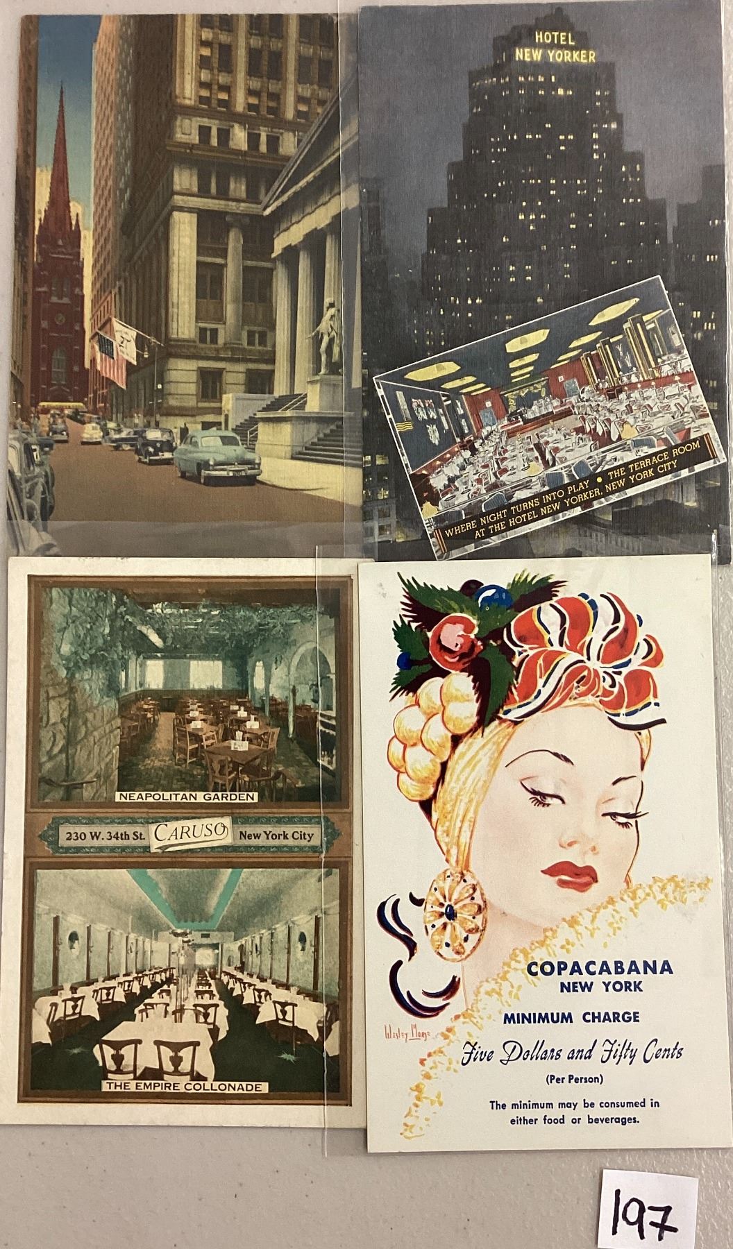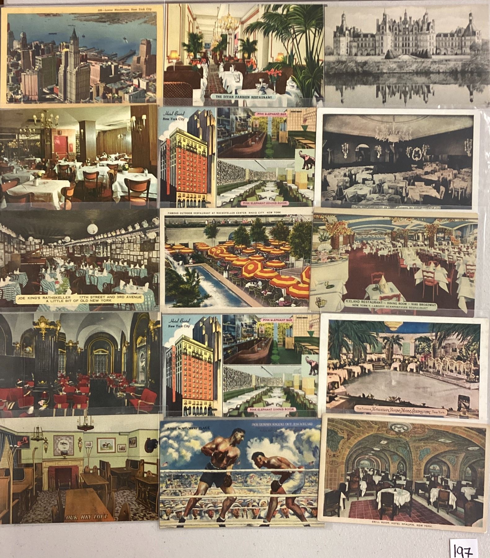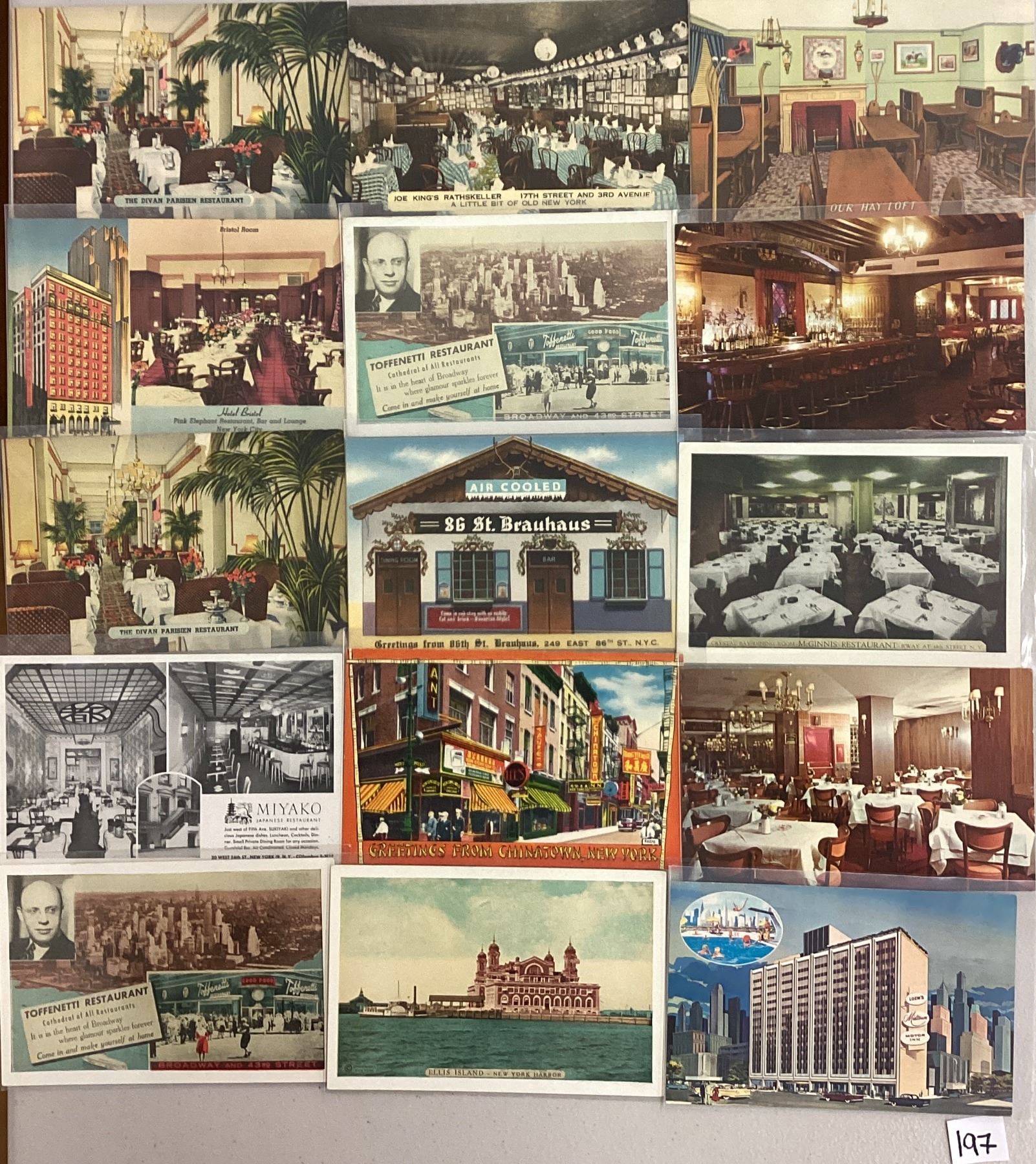 Approx. 90 NYC postcards. Mostly restauarants. Early to standard size chrome.