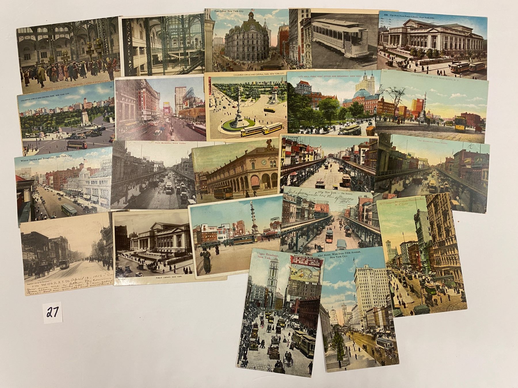 Approx. 60 NYC trolley & railroad postcards. Early to linen.
