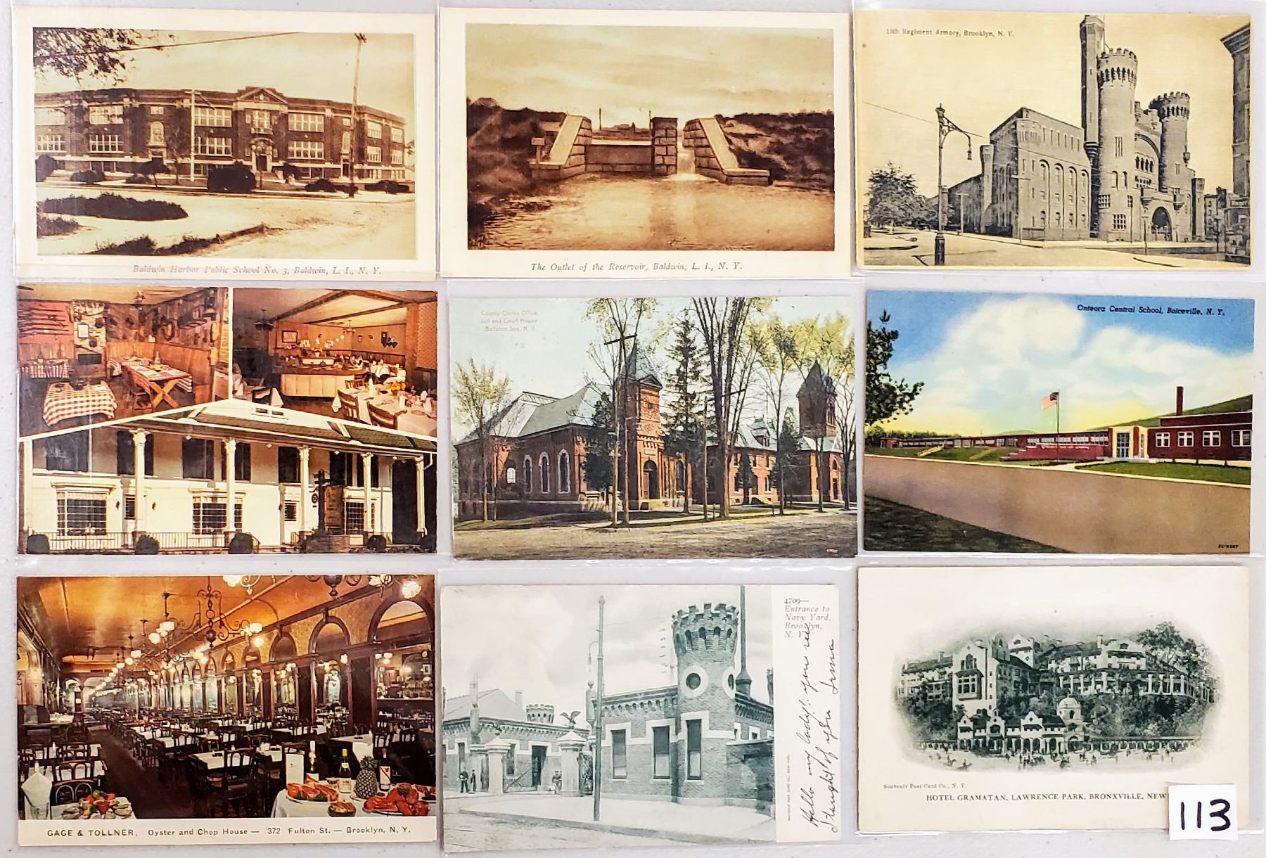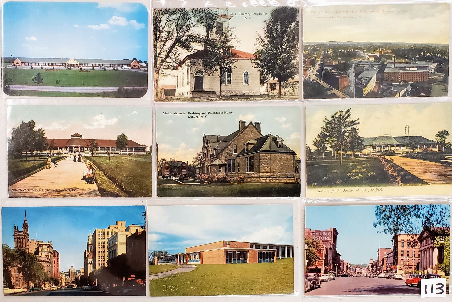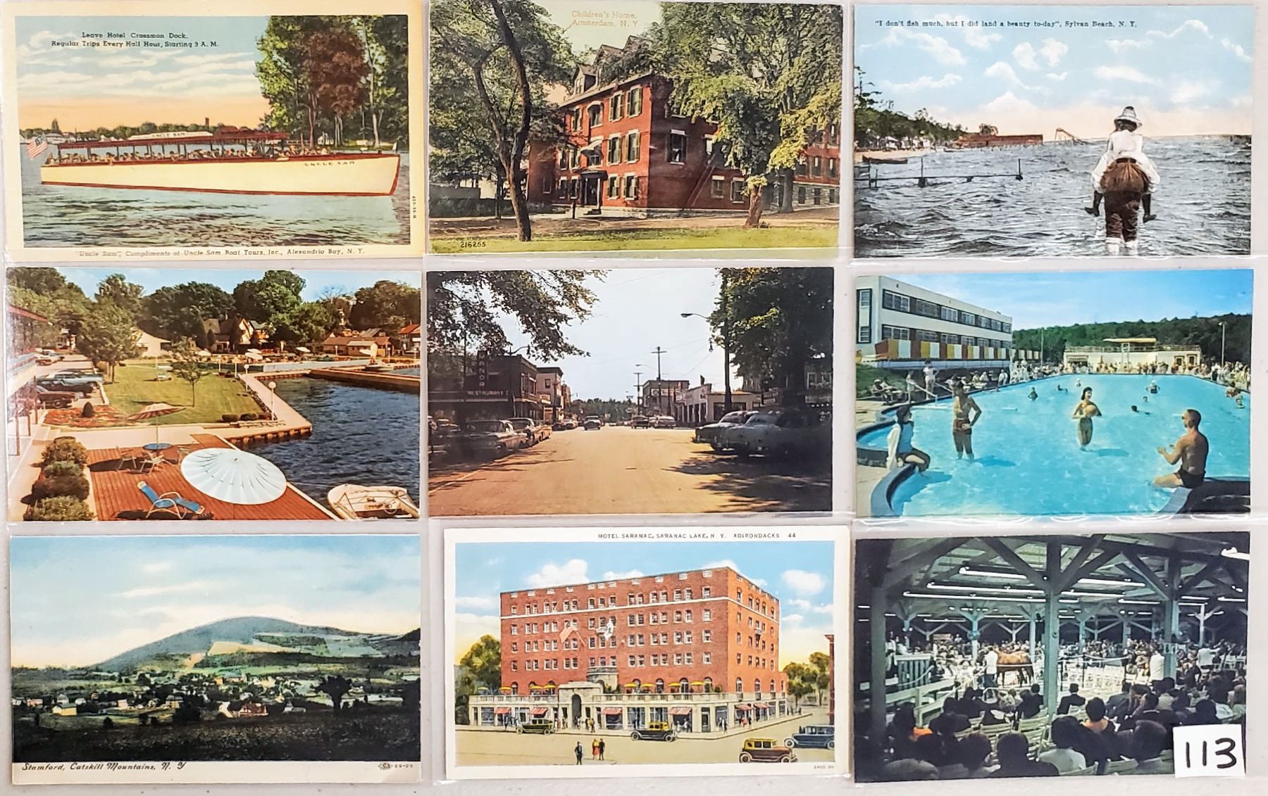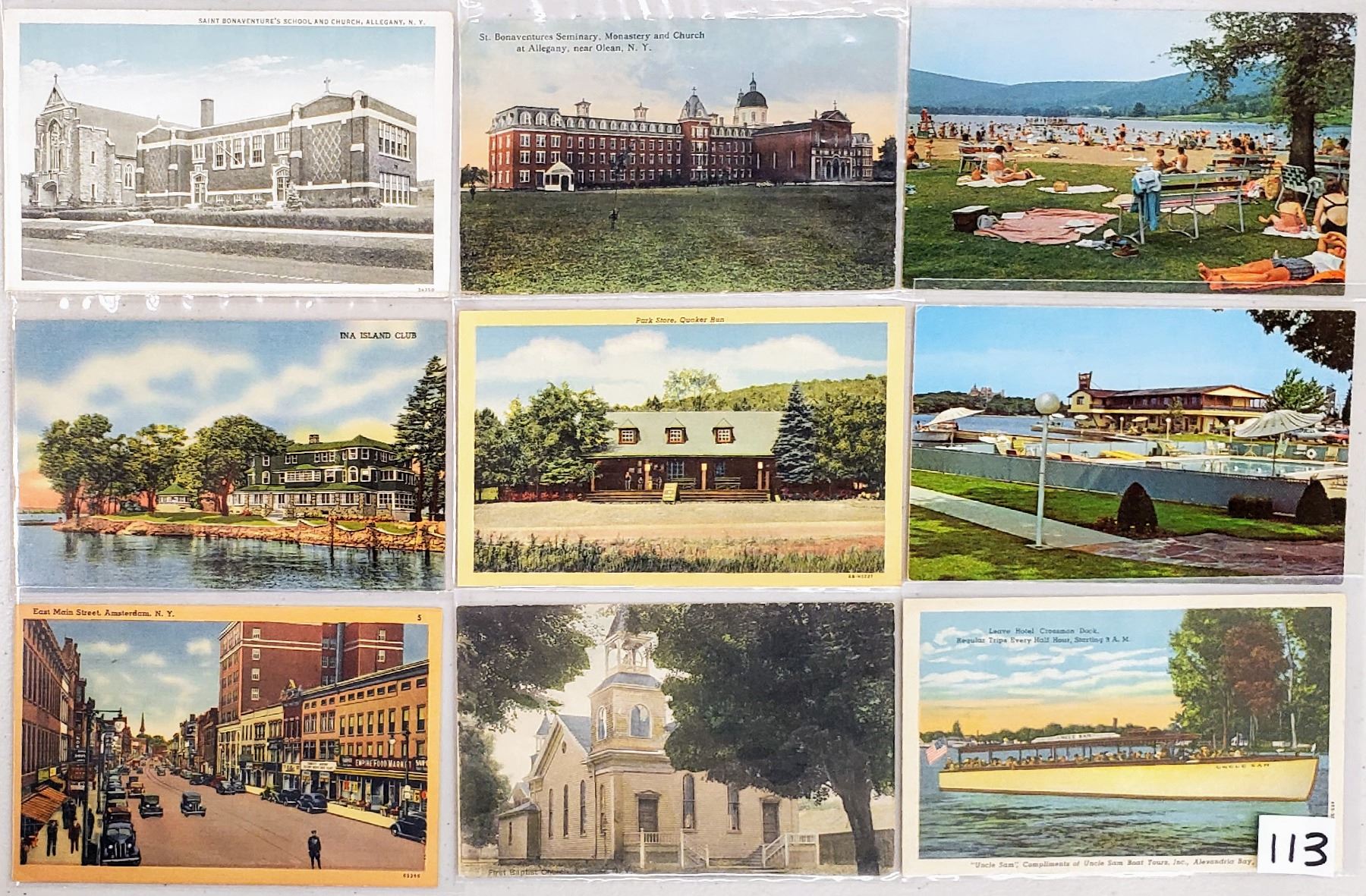 Approx. 300 NY postcards sorted A-B. Over 12 towns. Early to standard size chrome.