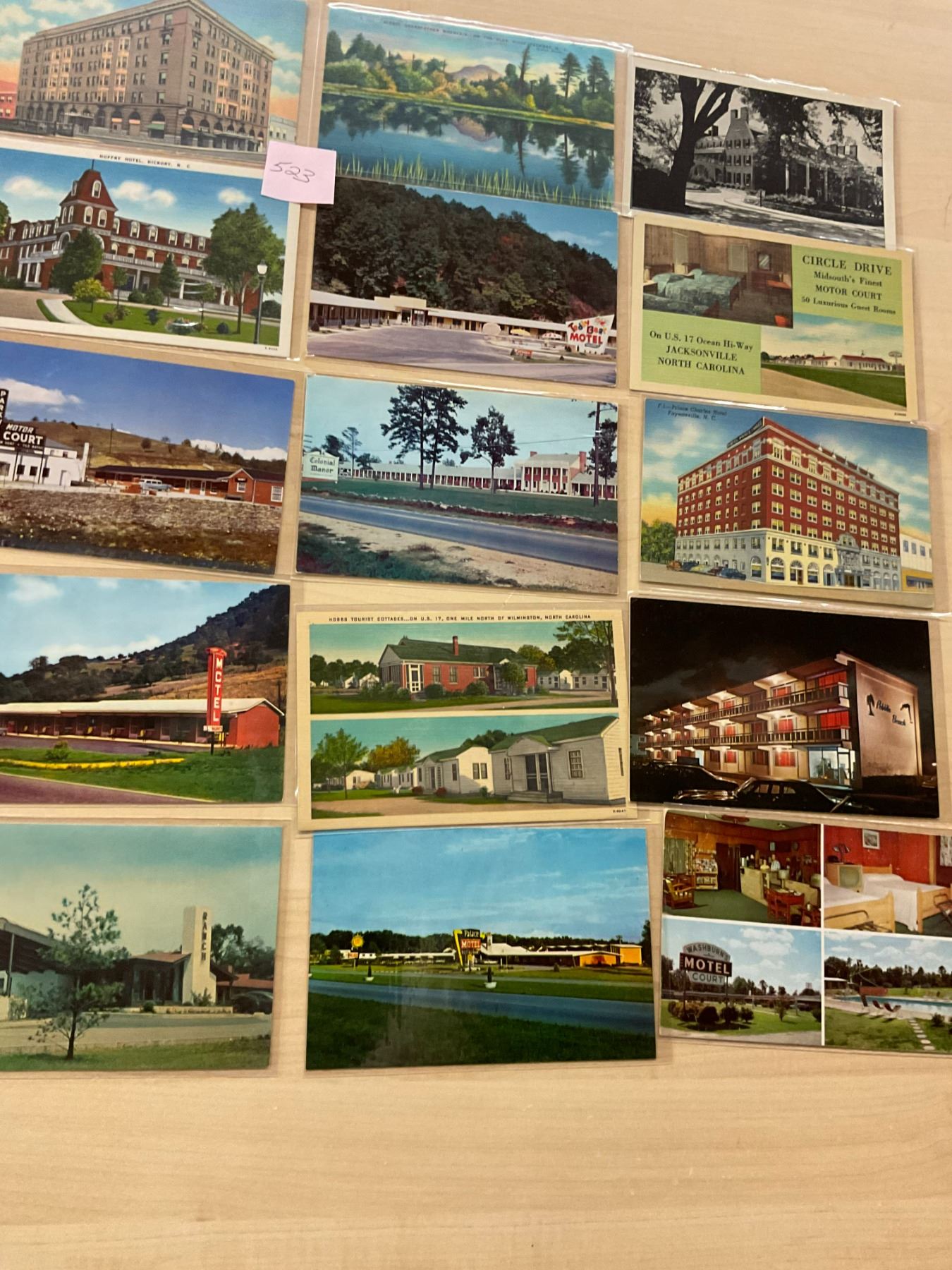 Over 100 NC postcards. Many hotels, motels, roadside, etc. Linen to chrome.