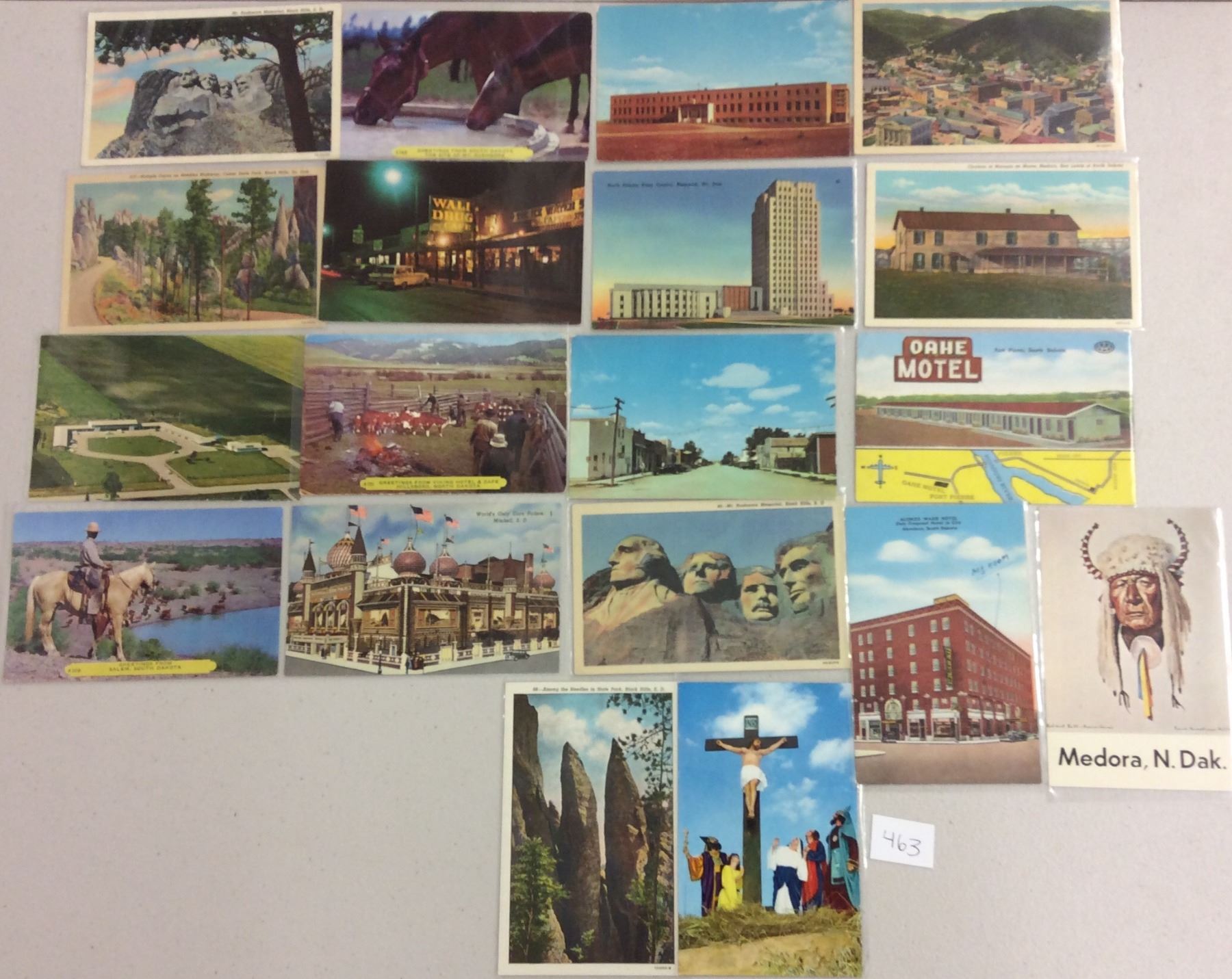 Approx. 400 postcards of North & South Dakota. Early to standard size chrome.