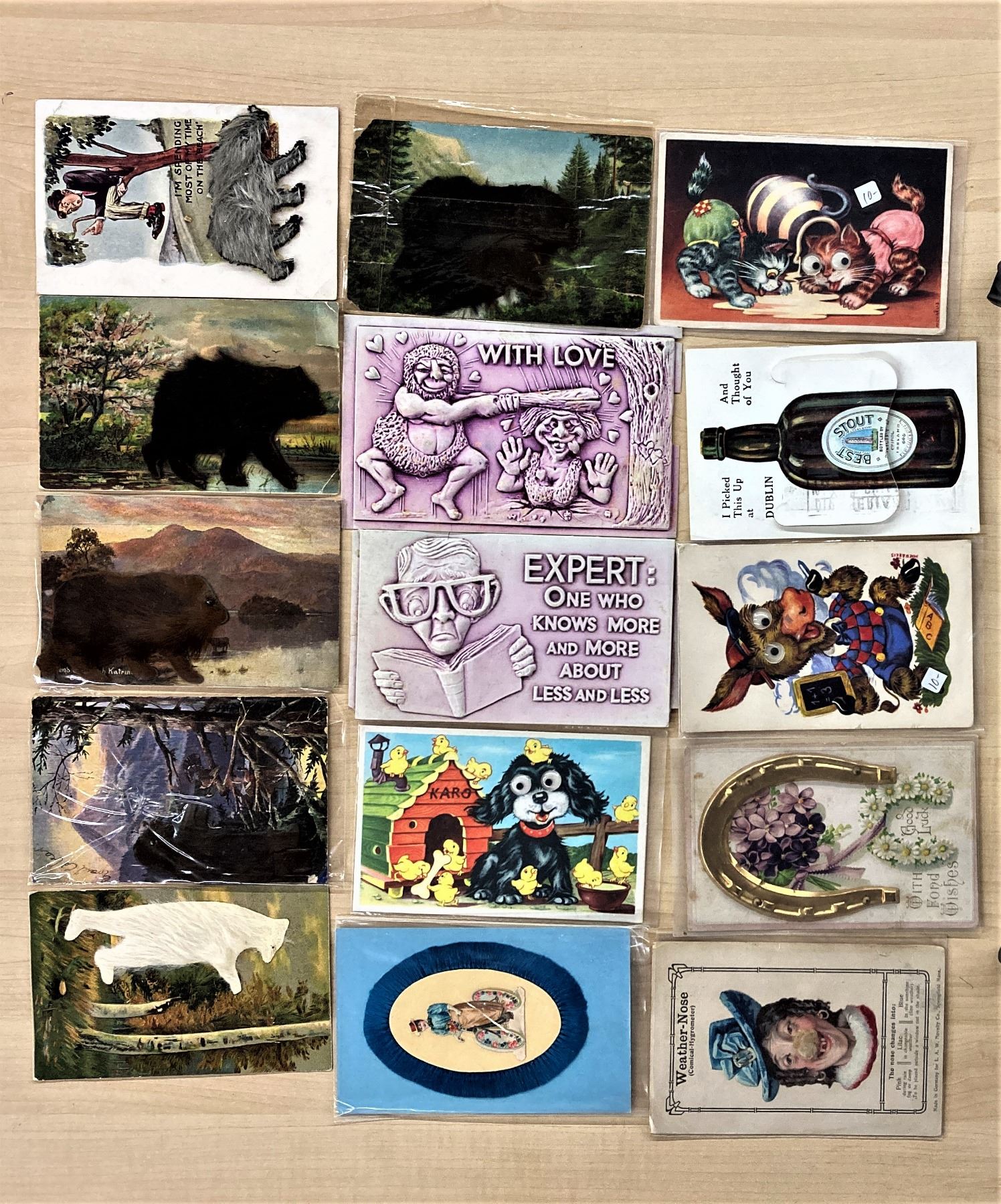 Airbrushed, embossed, silk, add ons, trap doors, pin cushions, wood, metal attachments and more. A few oversized. Approx. 200 cards. Pictures shown are just a portion of the lot.