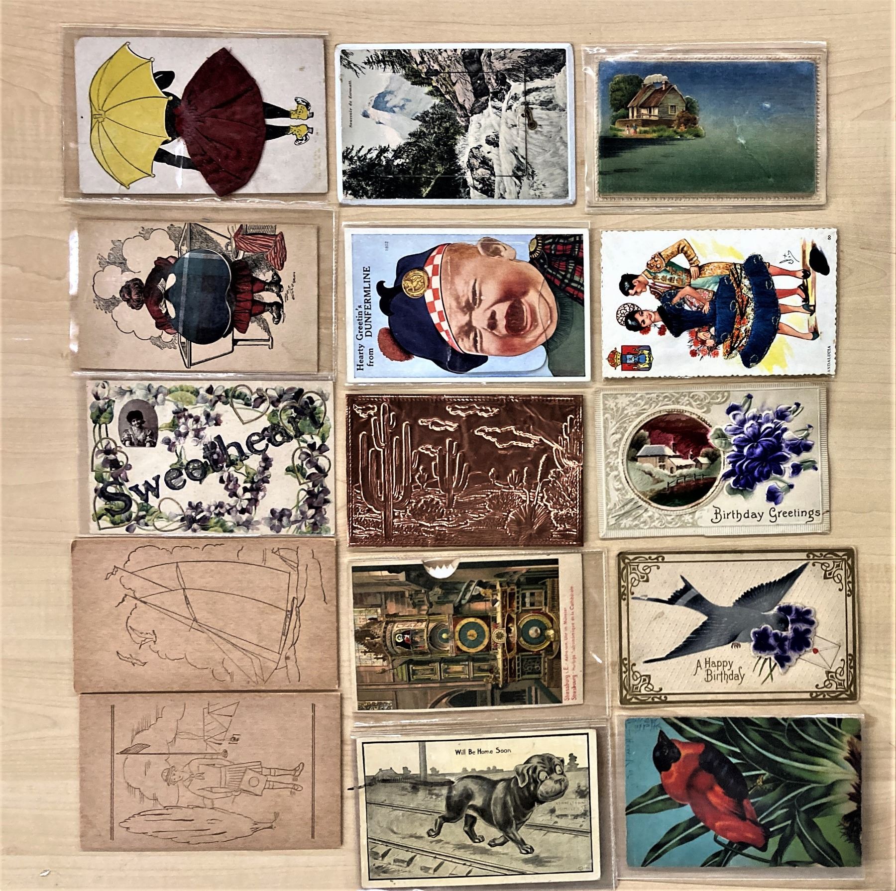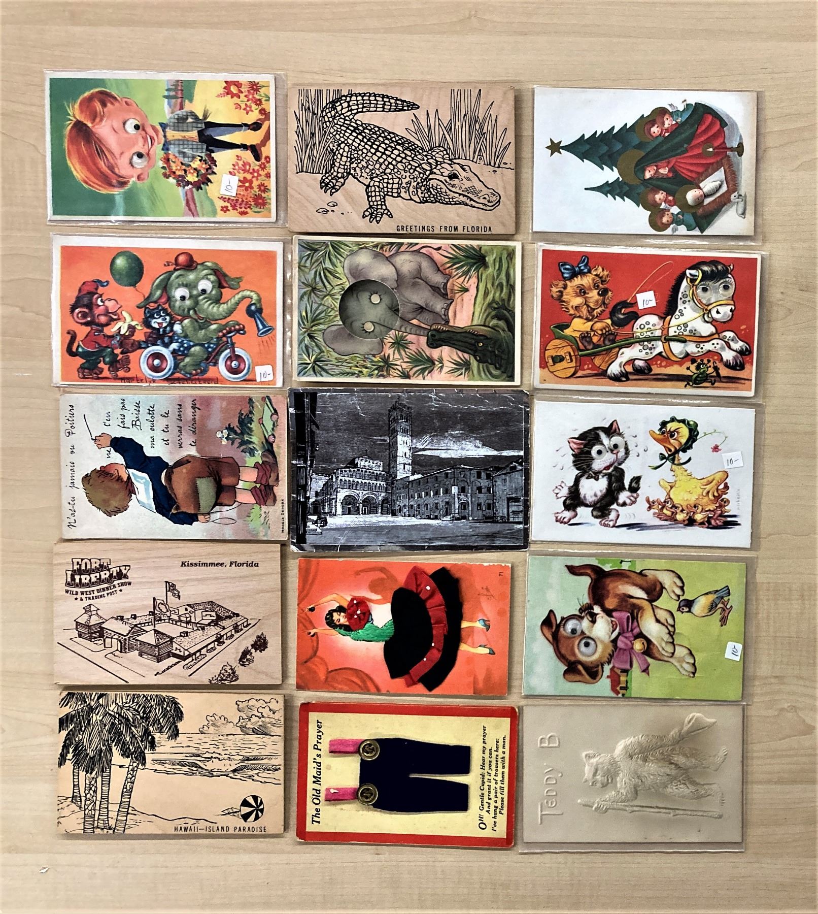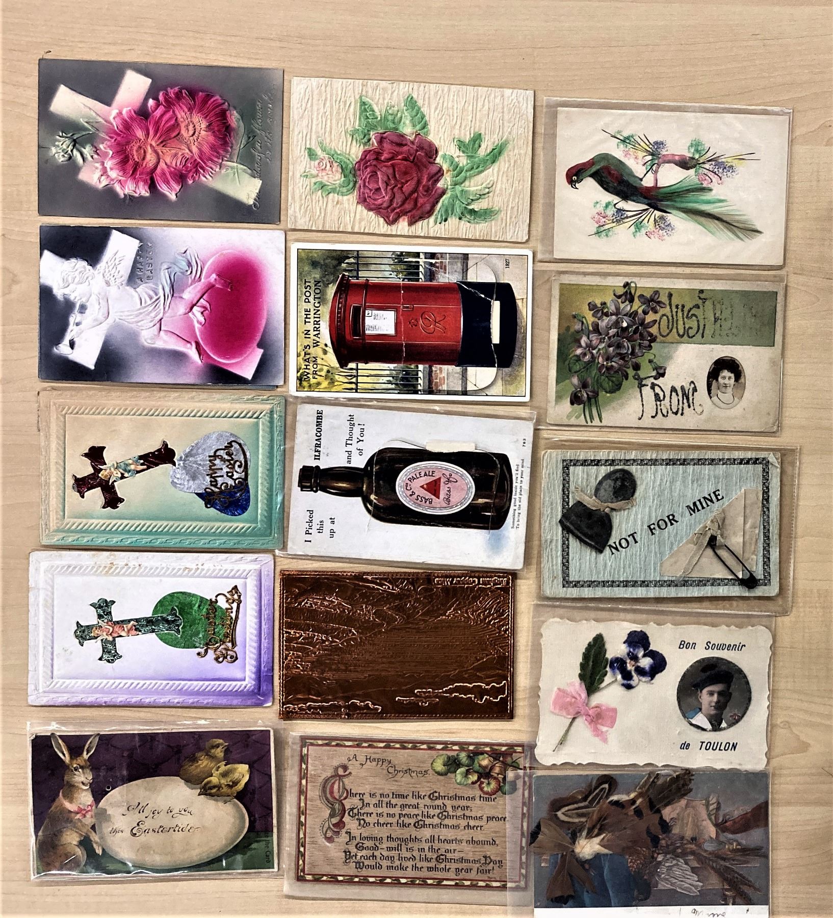 Add ons, airbrushed, silk, pin cushions, glass eyes, trap doors, metal attachments and more. Approx. 200 cards. Pictures shown are just a portion of the lot.