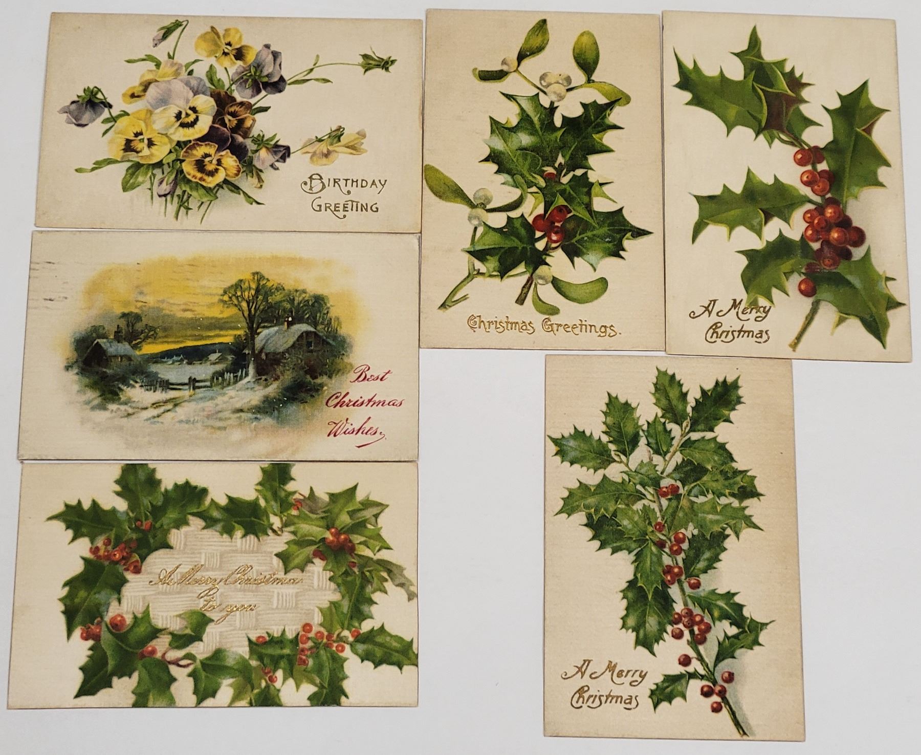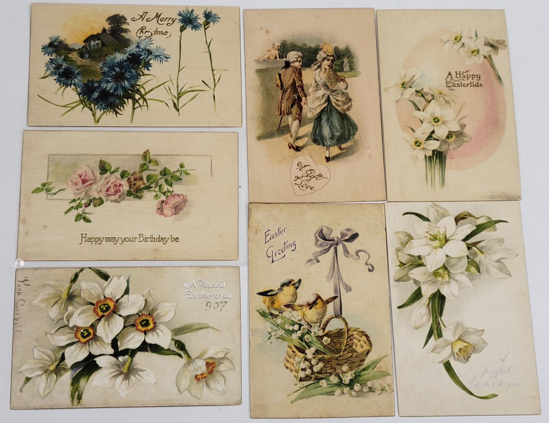 13 greeting silk postcards. Early.