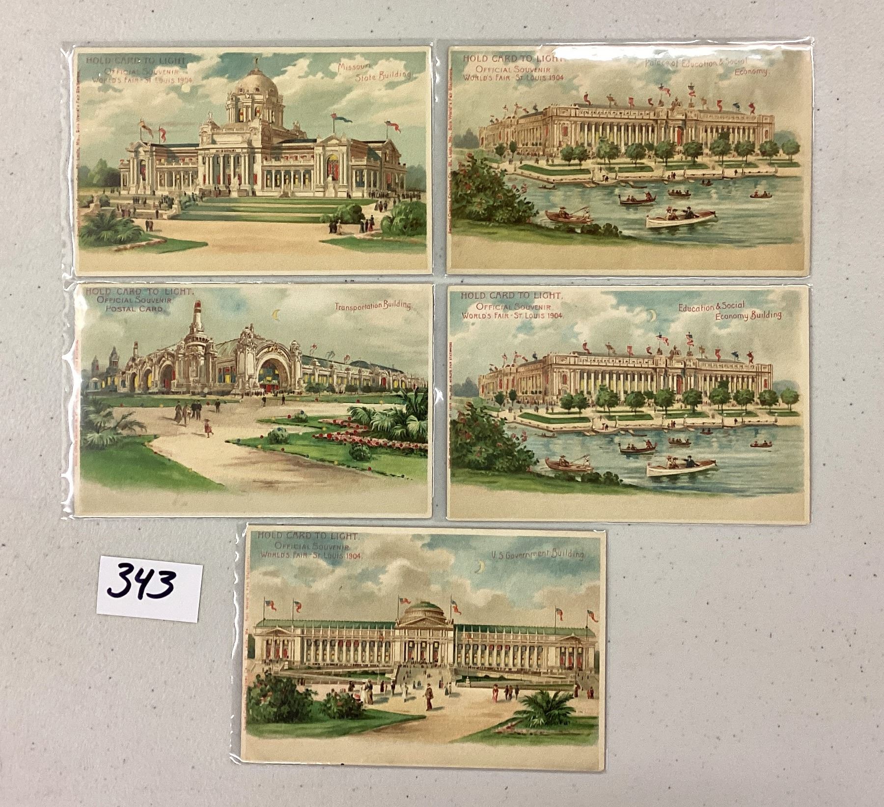 Novelty - Hold to Light 1904 St. Louis World's Fair Postcards 5 Cards