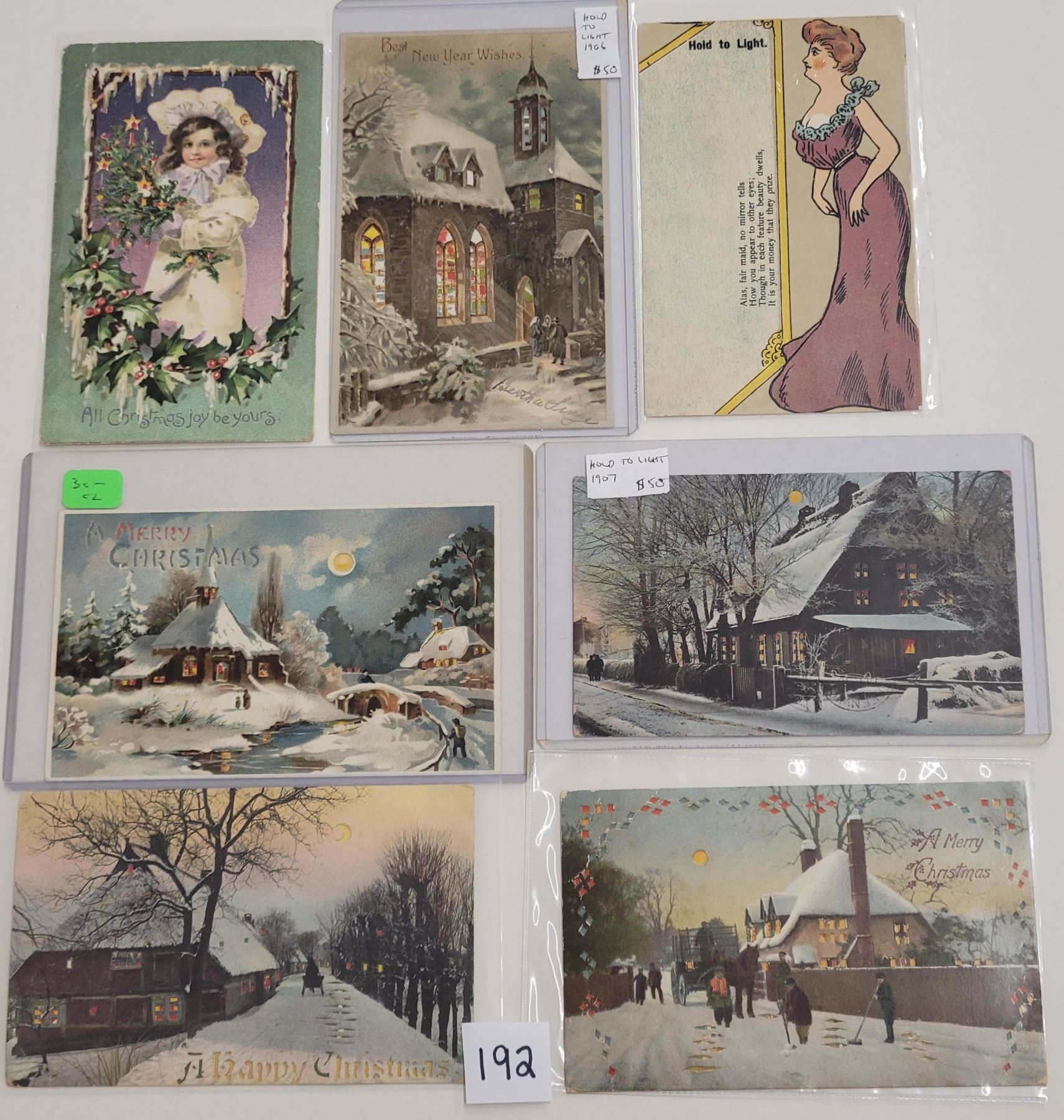 16 greeting hold to light postcards. Early.