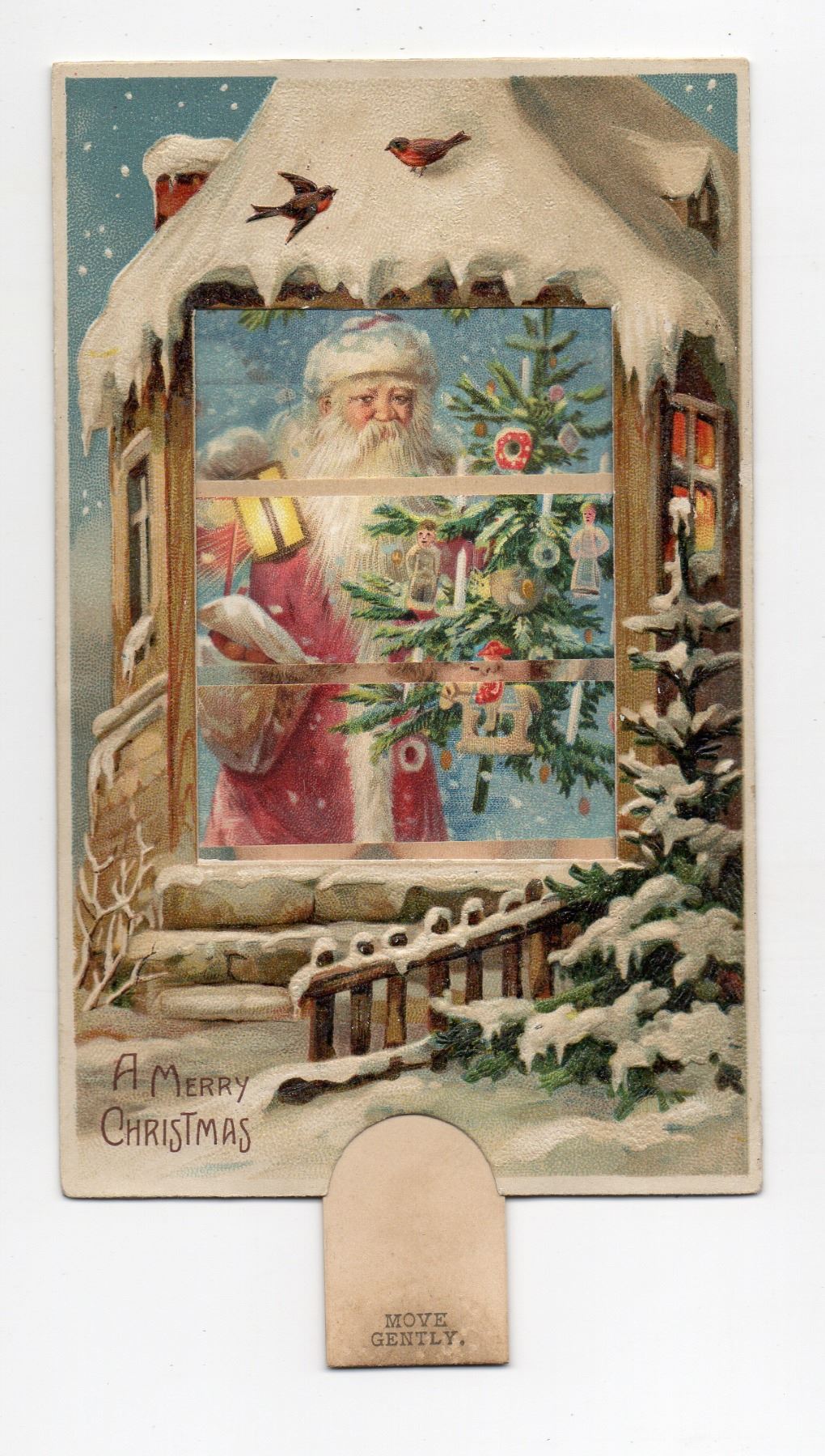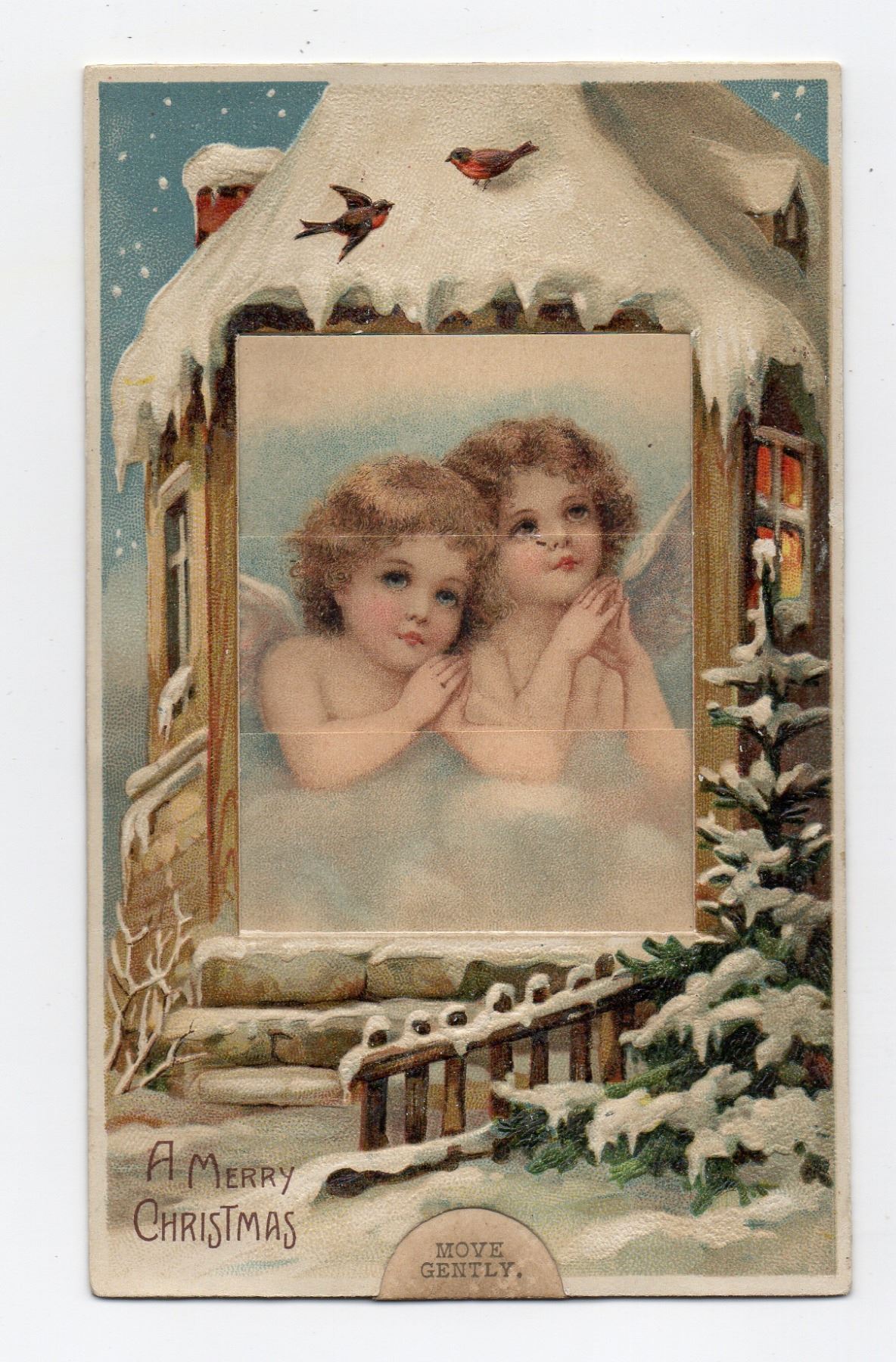 Novelty - Mechanical Window Angels & Santa Clause Christmas Holiday Postcard
