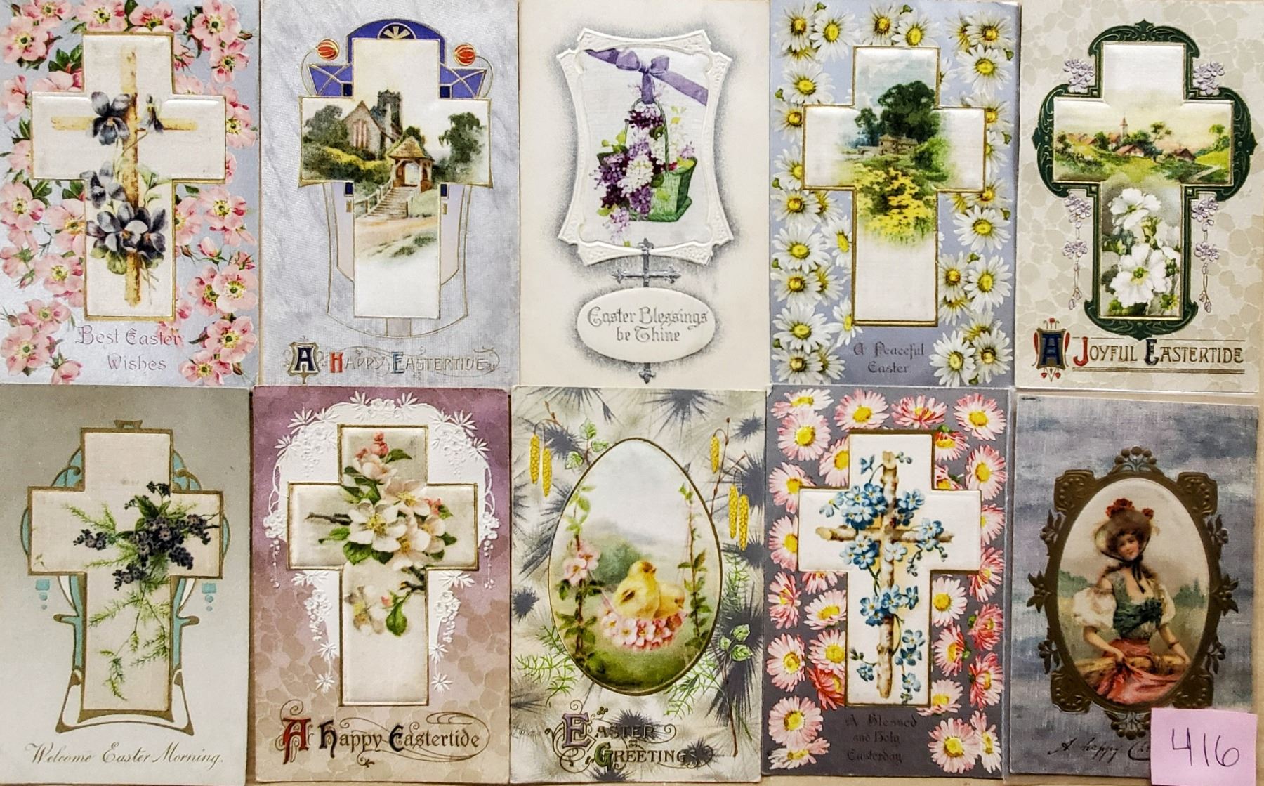 Over 40 postcards by Winsch with silk. Easter, Christmas, etc.