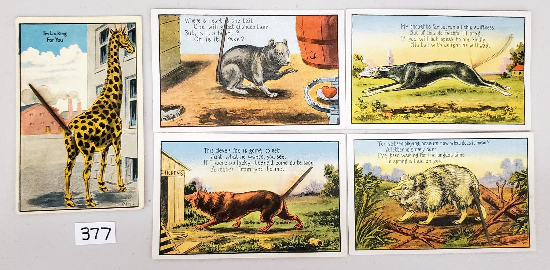 8 early wire tail animal postcards.