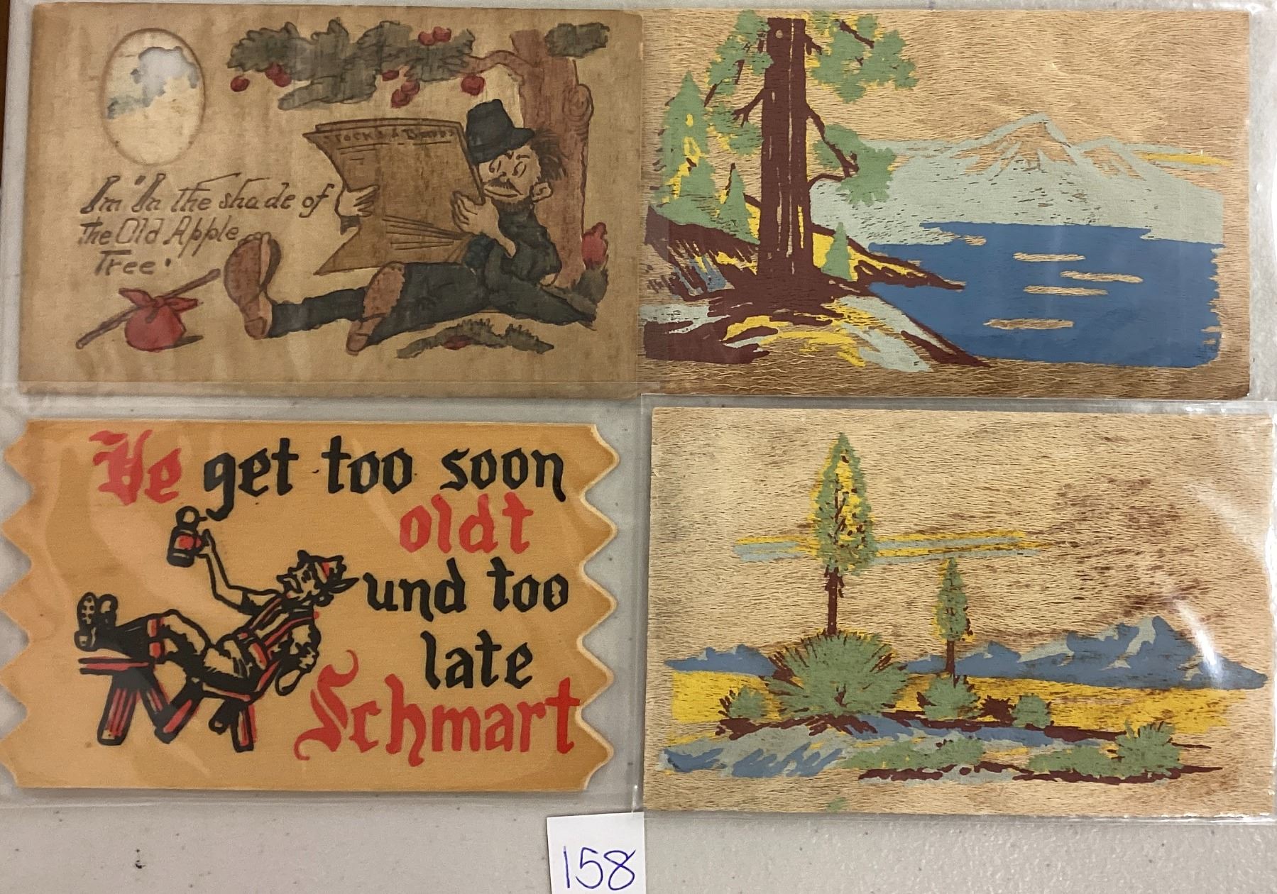 15 vintage wooden postcards.