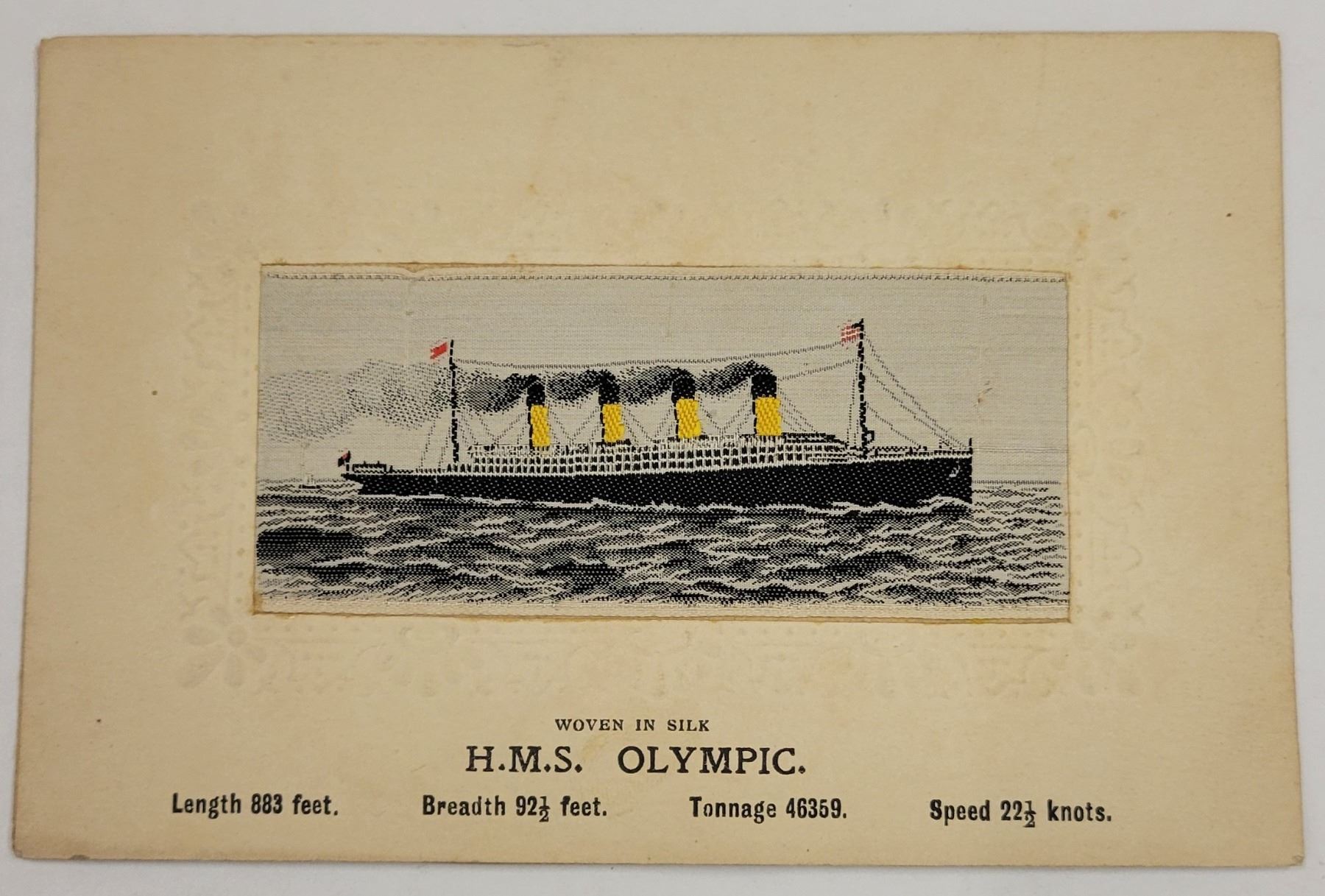 Novelty - Woven In Silk HMS Olympic Ocean Liner Ship Postcard