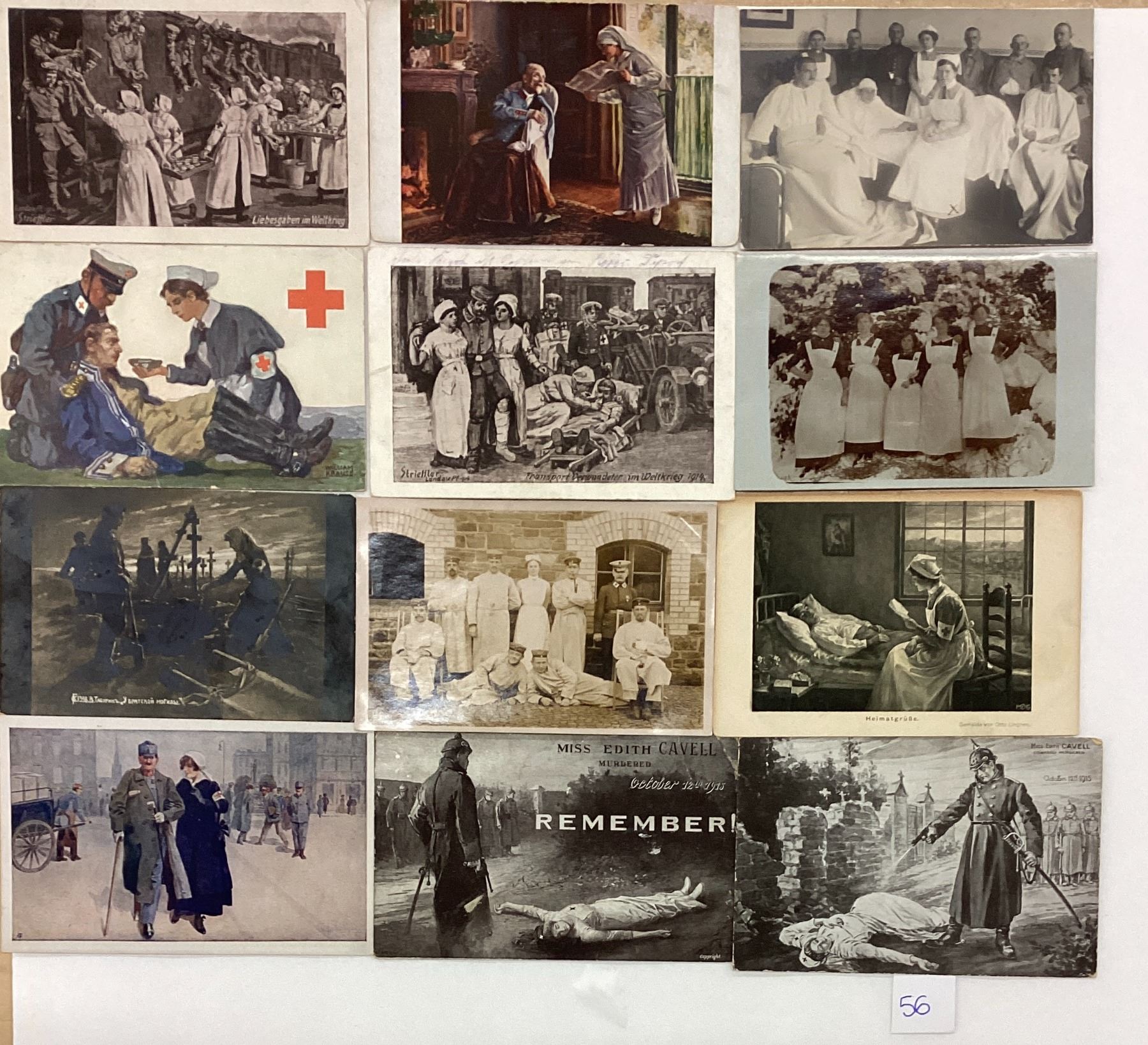 Over 35 postcards of nurses & Red Cross. Early, some real photo.