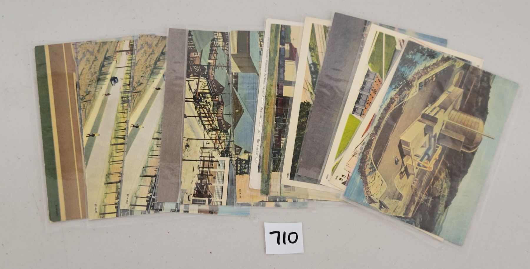 13 Oak Ridge postcards. Linen, 1 standard size chrome.