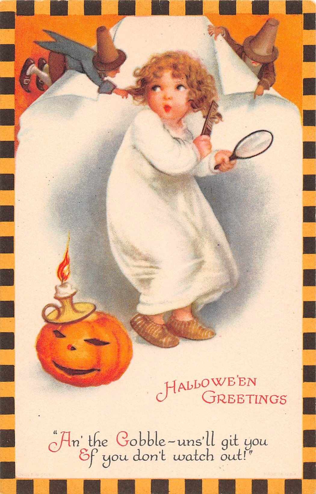Orange & Black Checkered Border Wolf Clapsaddle Child Postcard