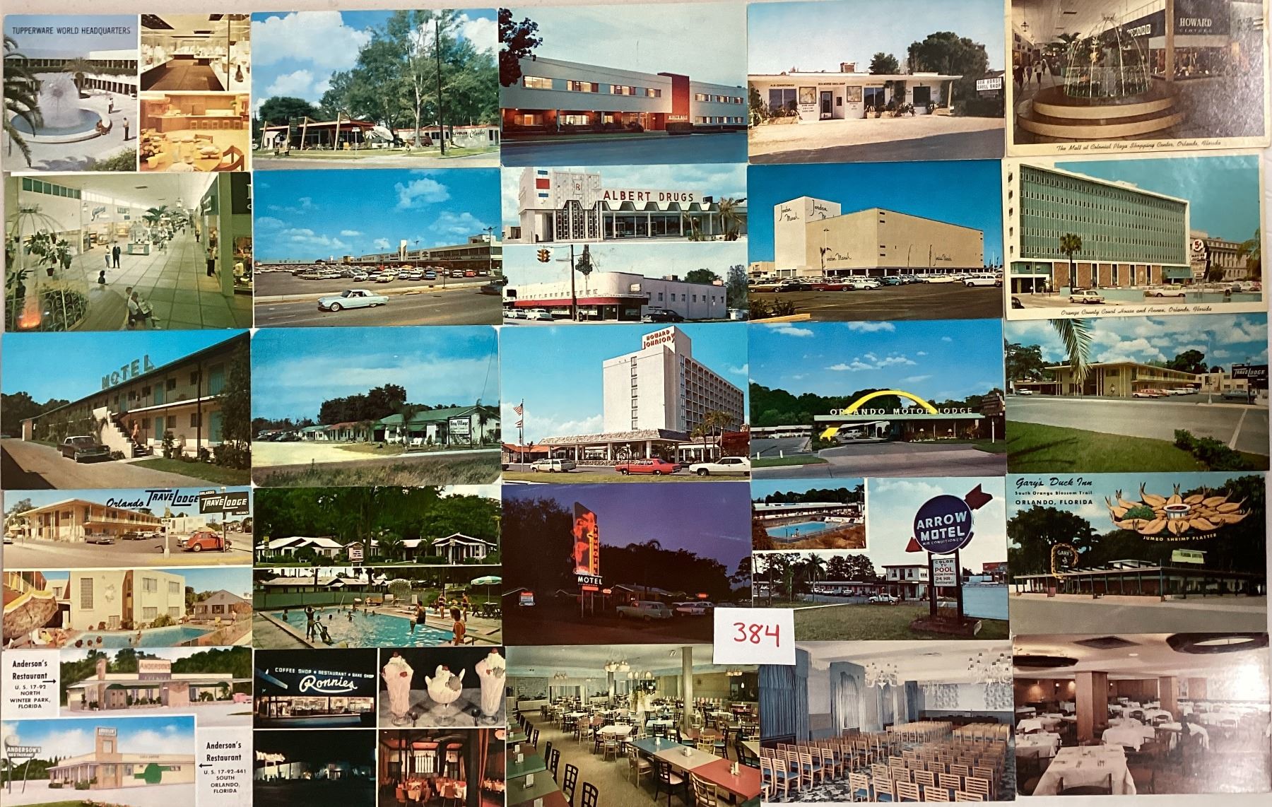 Over 140 Orlando postcards. Stores, malls, motels, streets, etc. Standard size chrome.