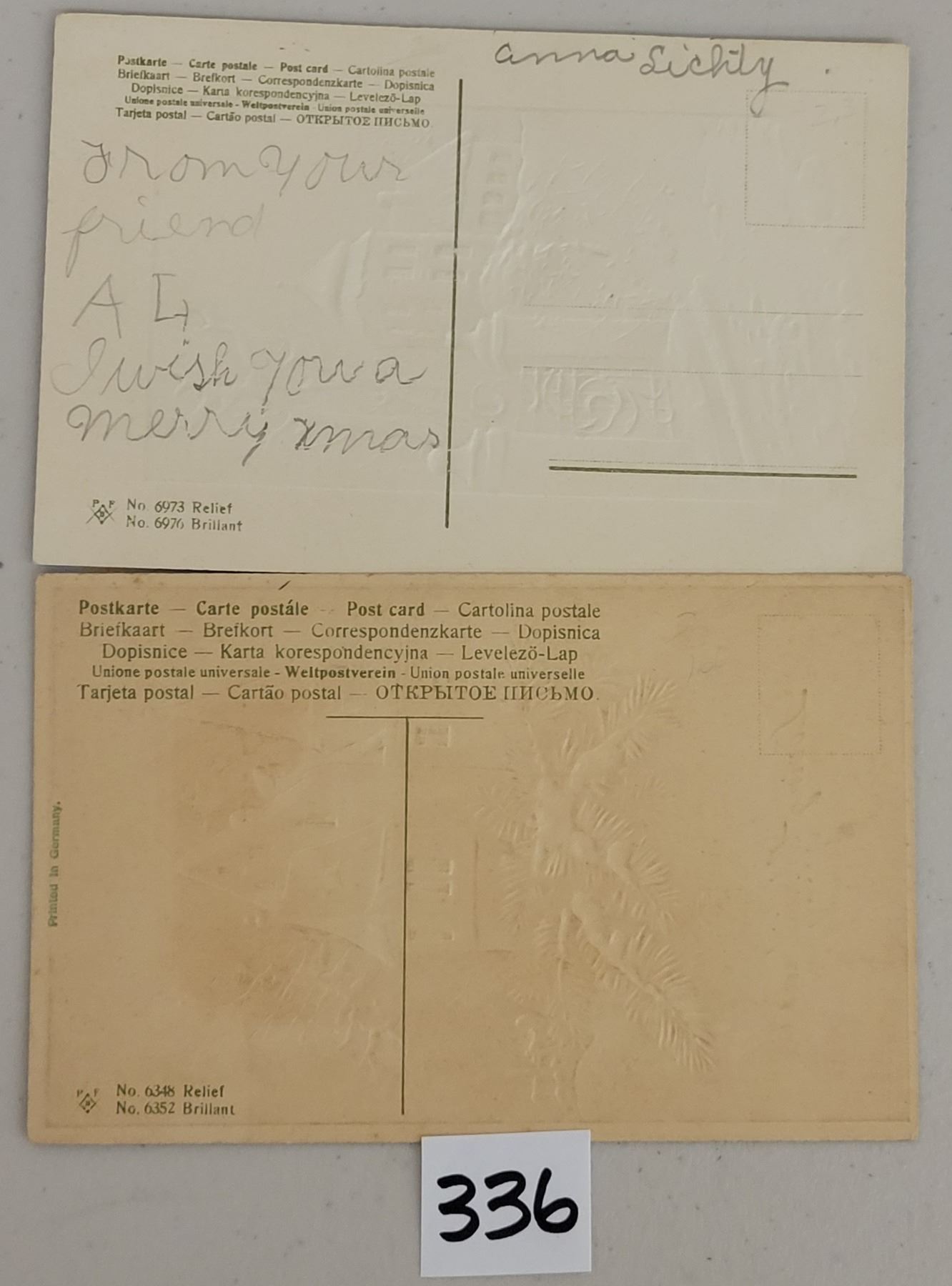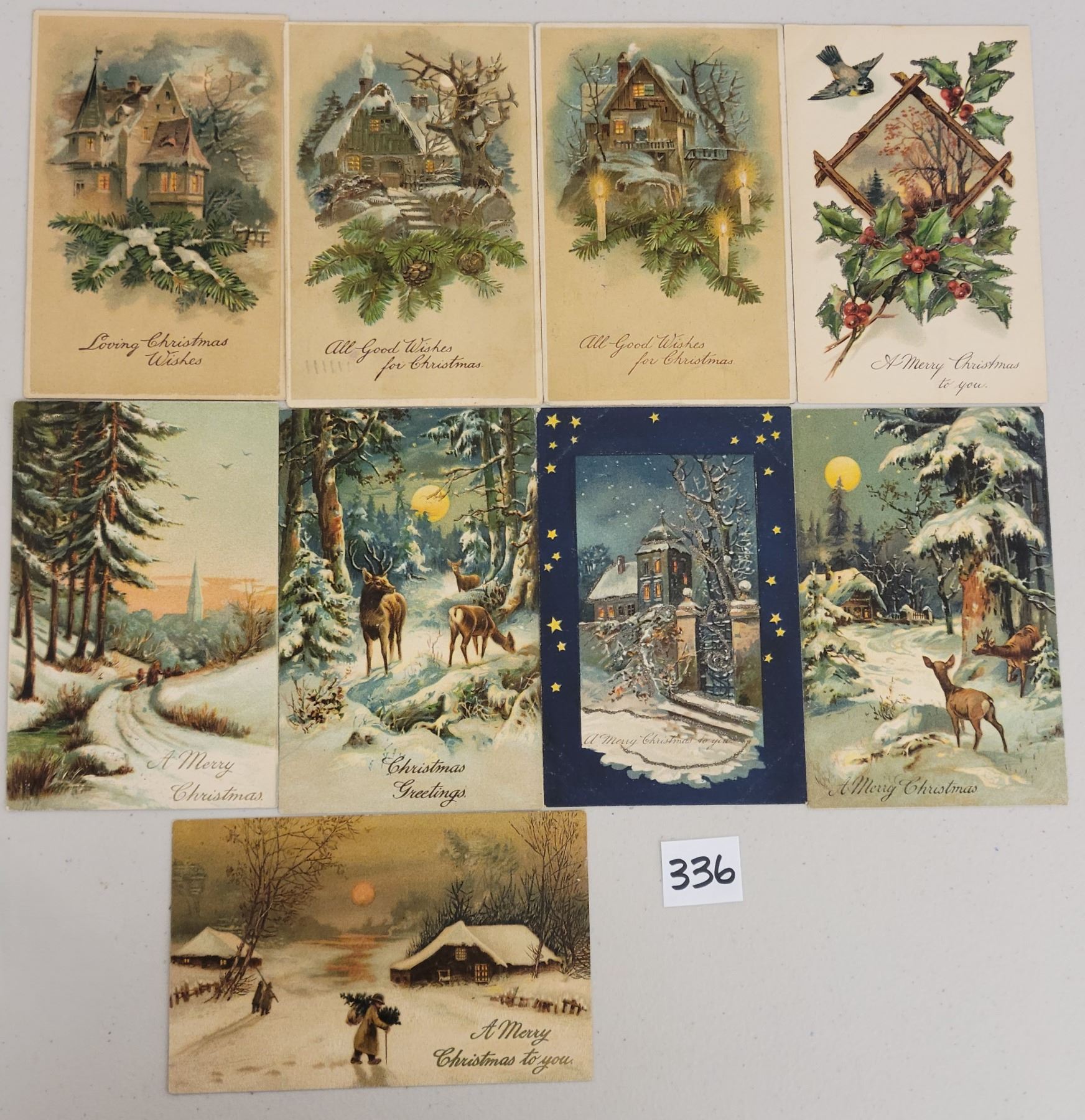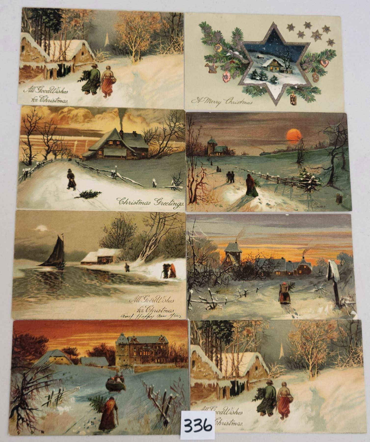 17 PFB postcards with snow, many Christmas. Early.