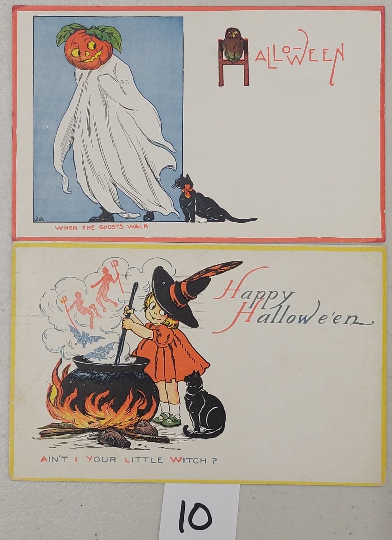 One red bordered with Cat & Ghost, One yellow border with little girl witch & black cat.
