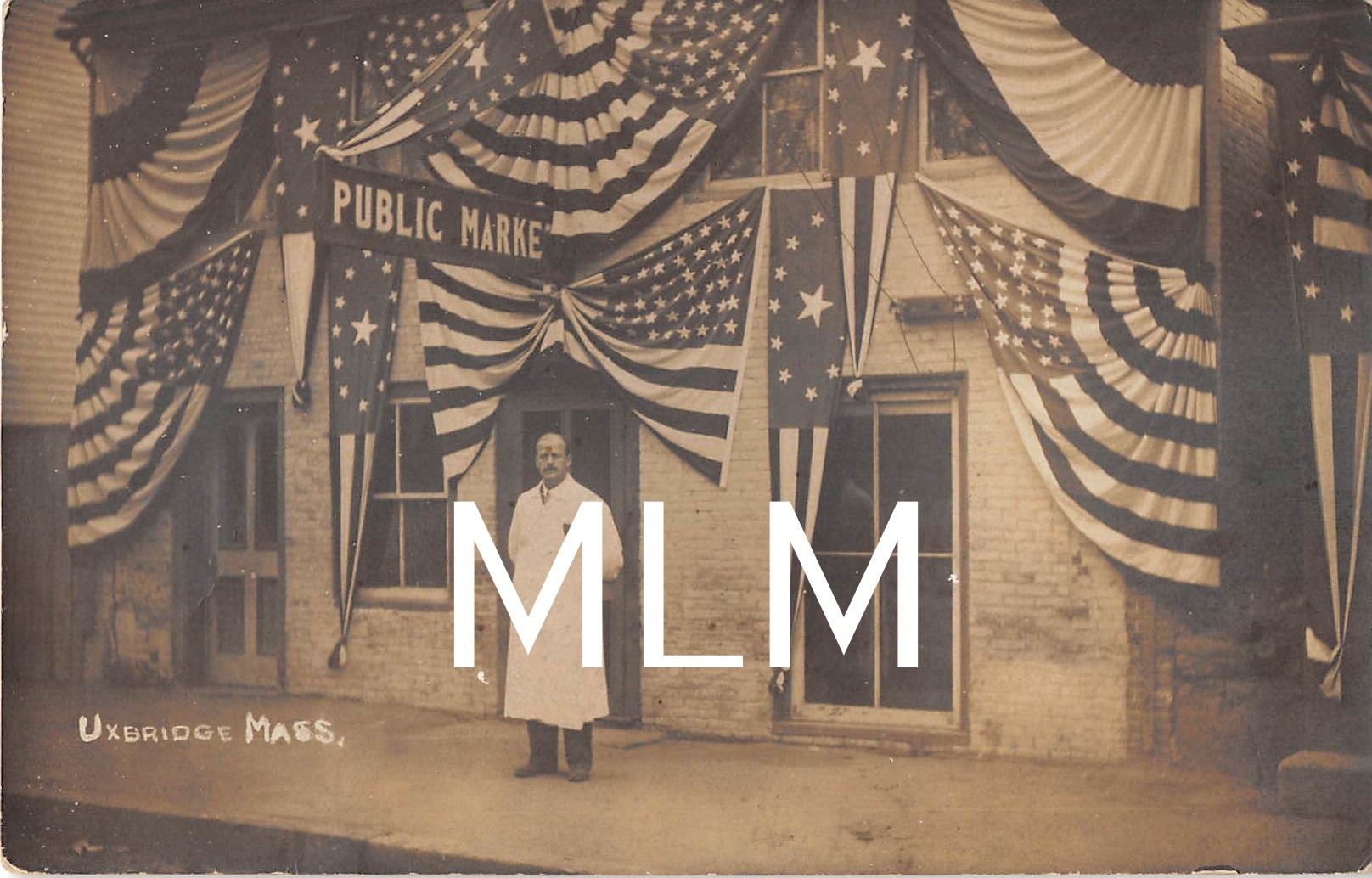 Patriotic American Flags at Public Market Uxbridge, Massachusetts Photo Postcard
